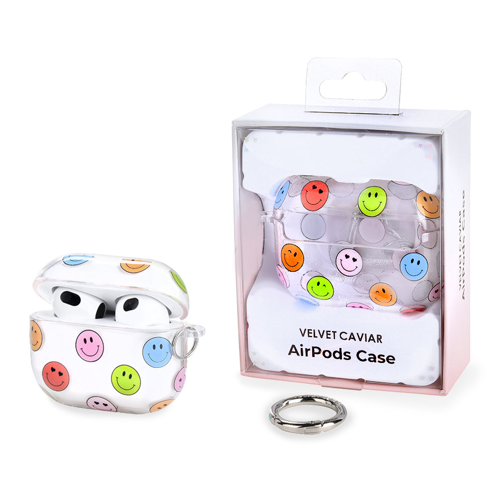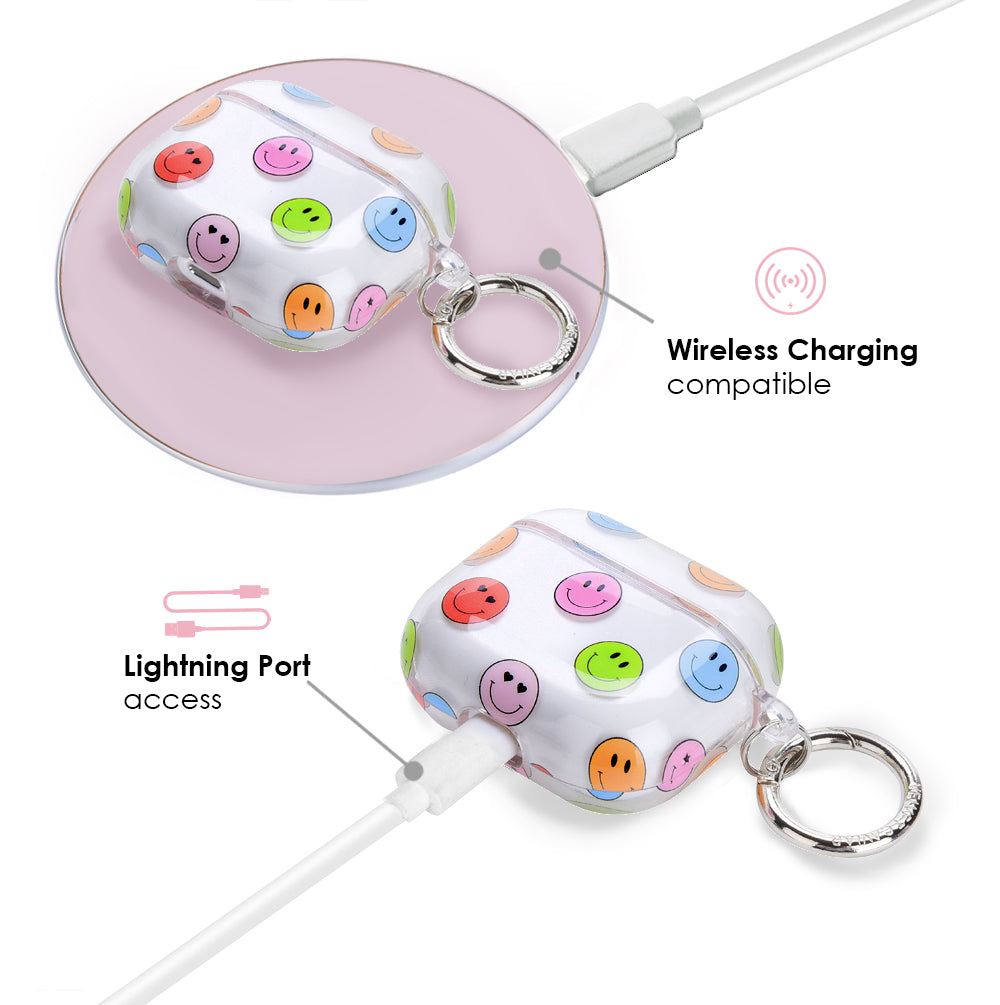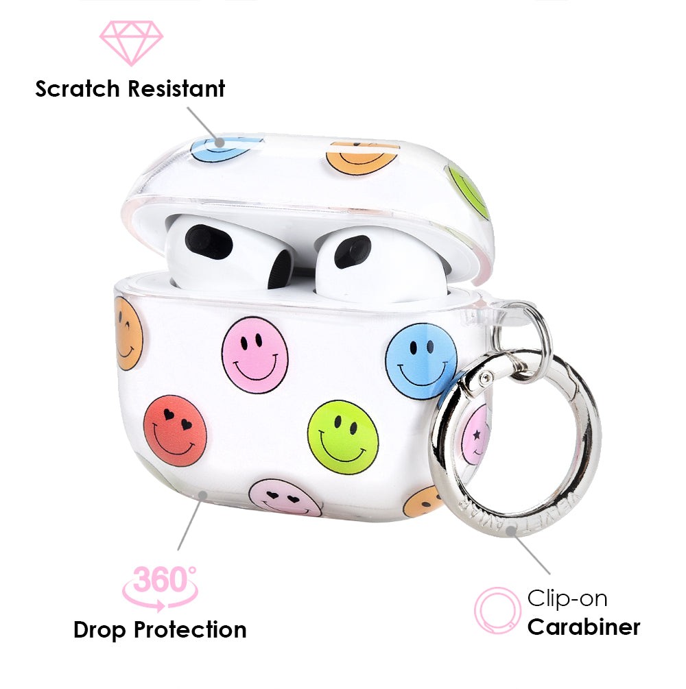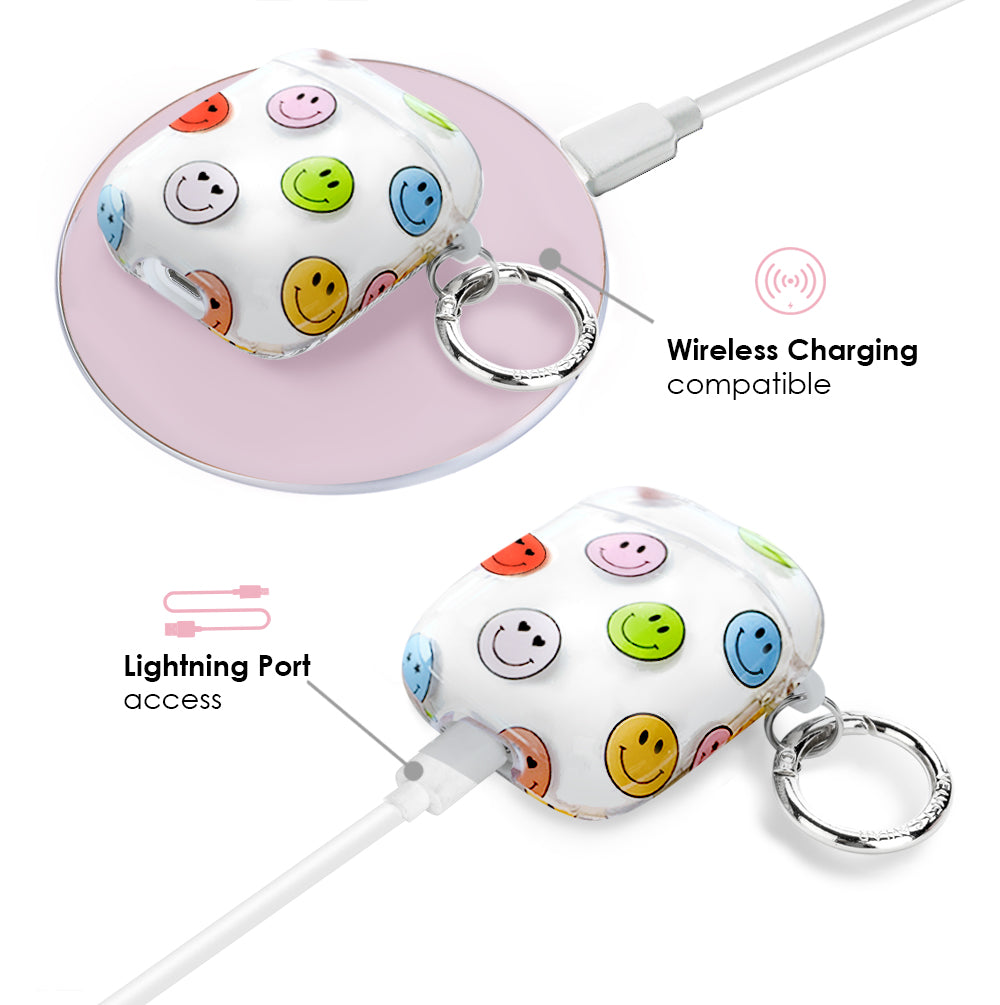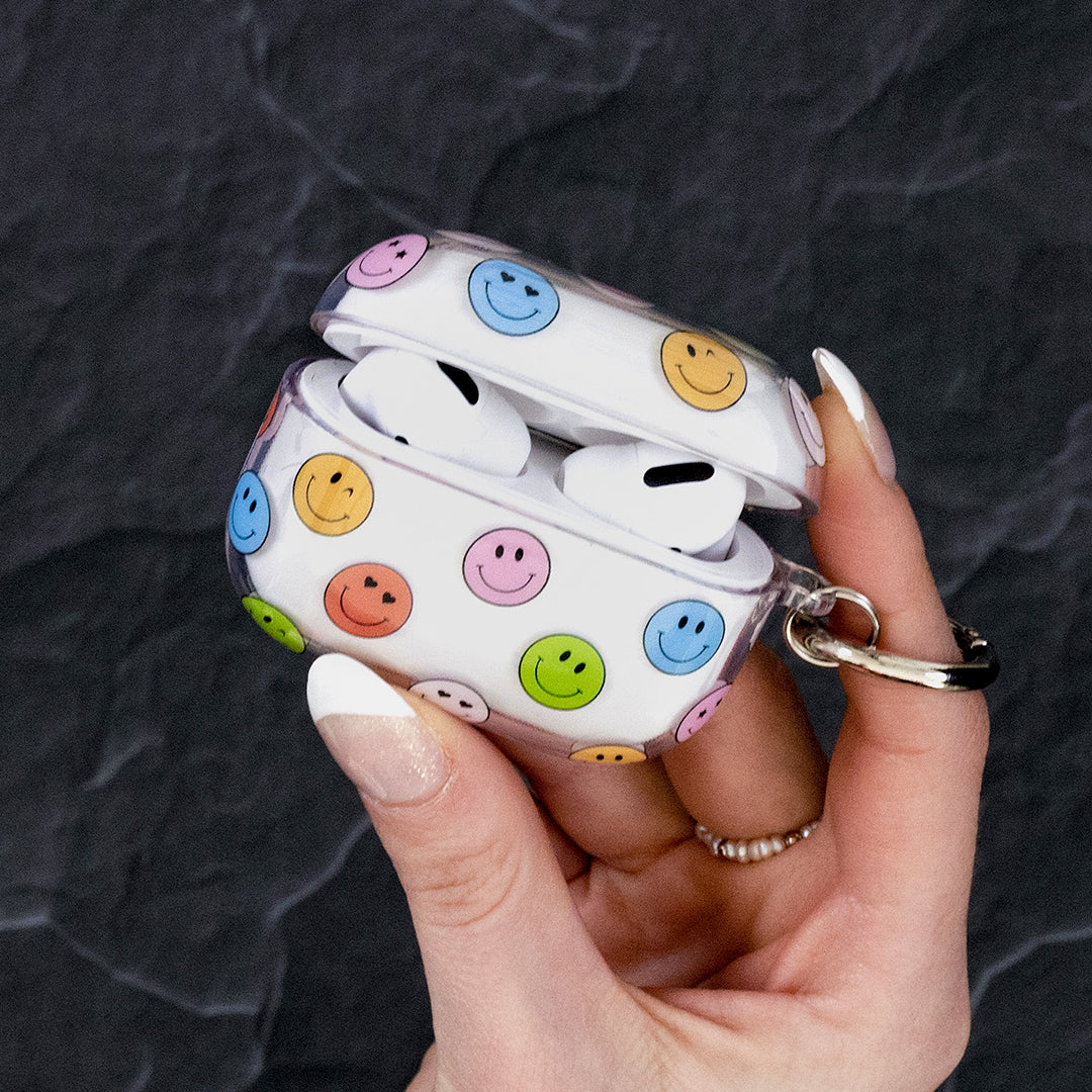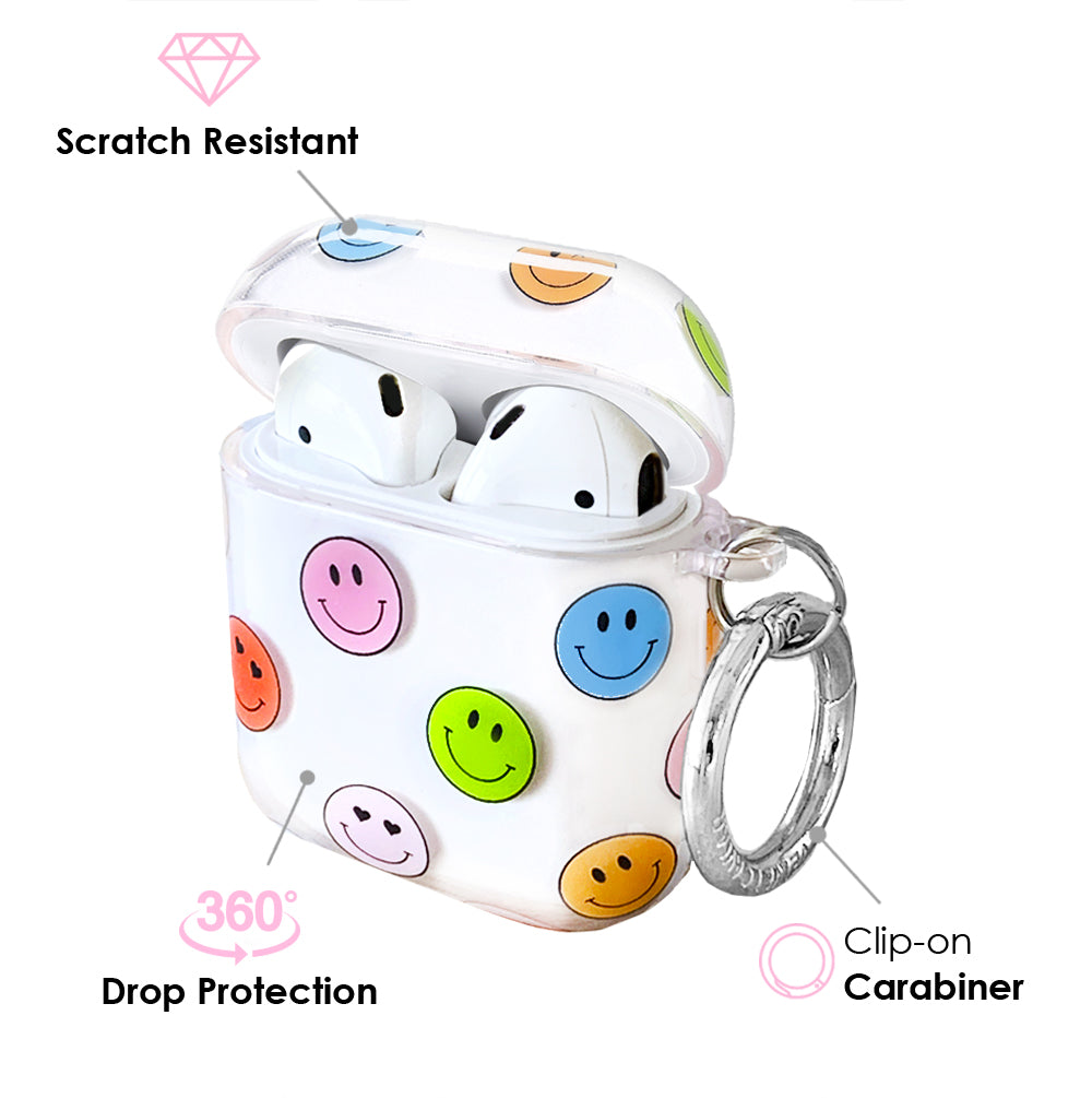 Make your AirPods stand out with a smiley, protective case! Paired with a metal carabiner which you can clip it to your keys, bag, or pants for easier access and less misplacing!