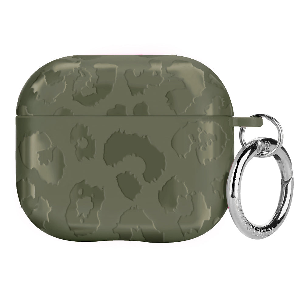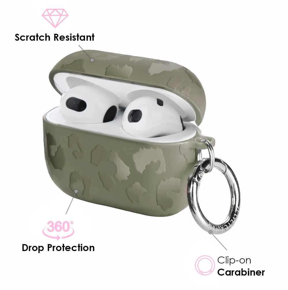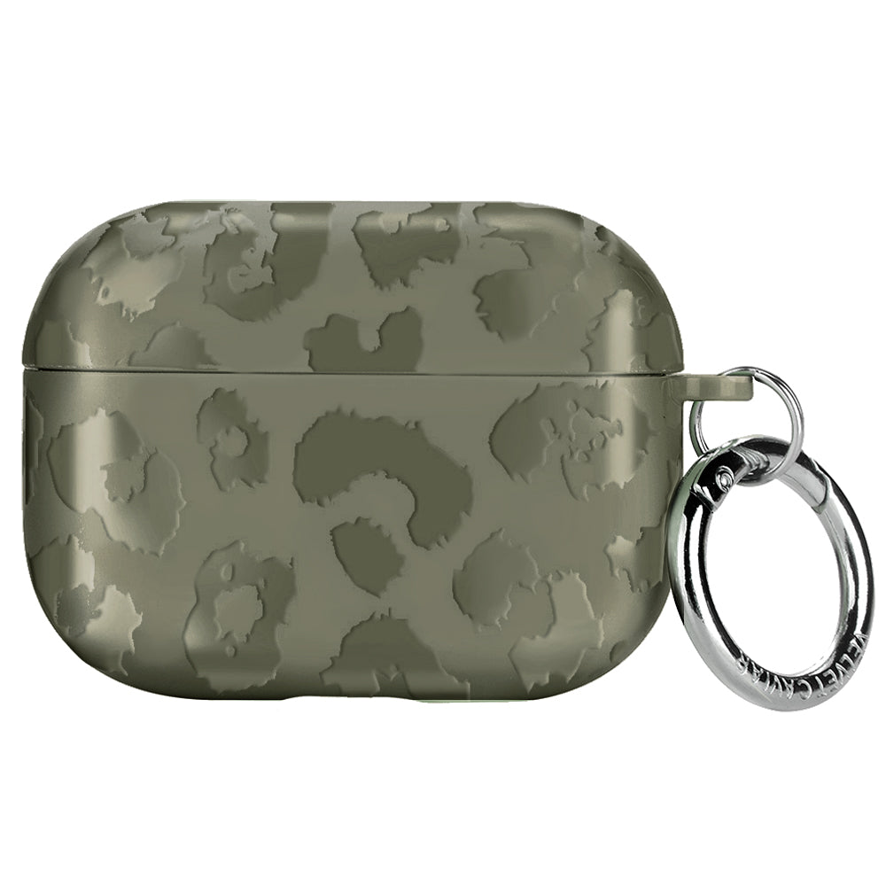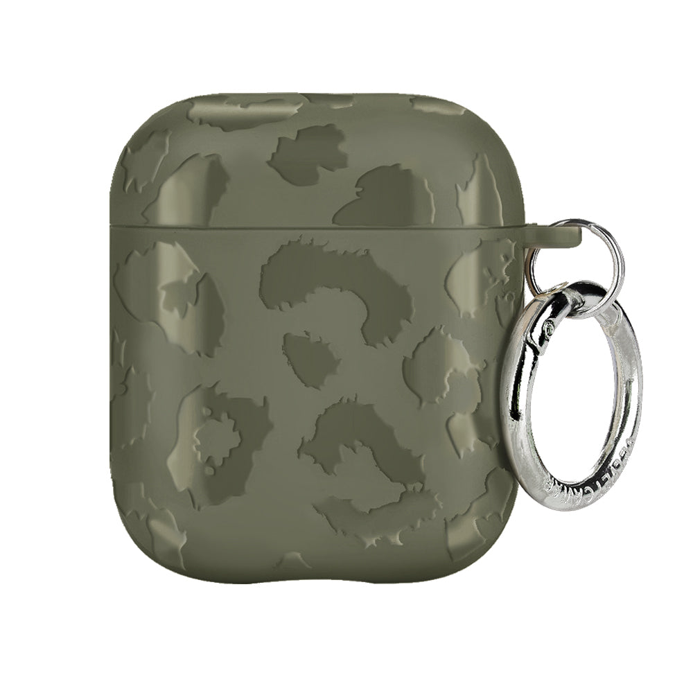 One word. FIERCE! This protective case features glossy olive leopard spots on a monochromatic matte base paired with a metal carabiner which you can clip to your keys, bag, or pants for easier access and less misplacing!