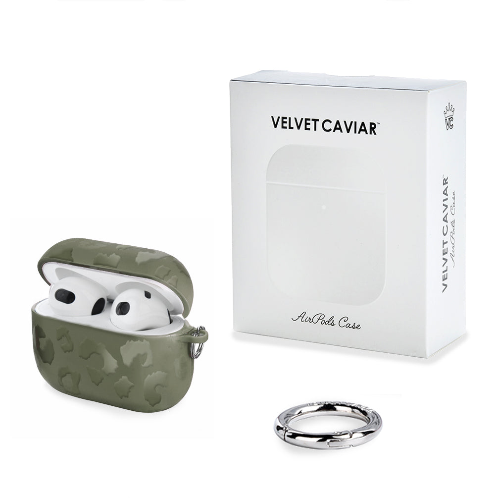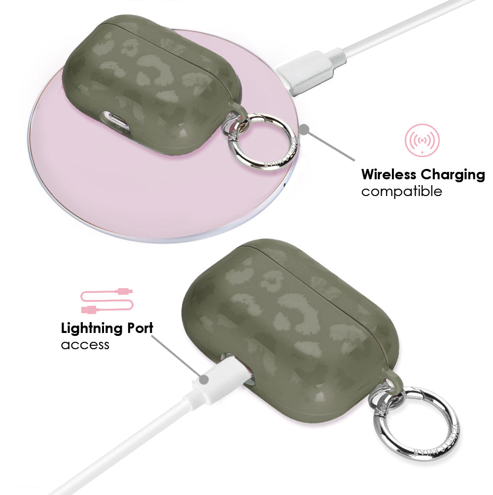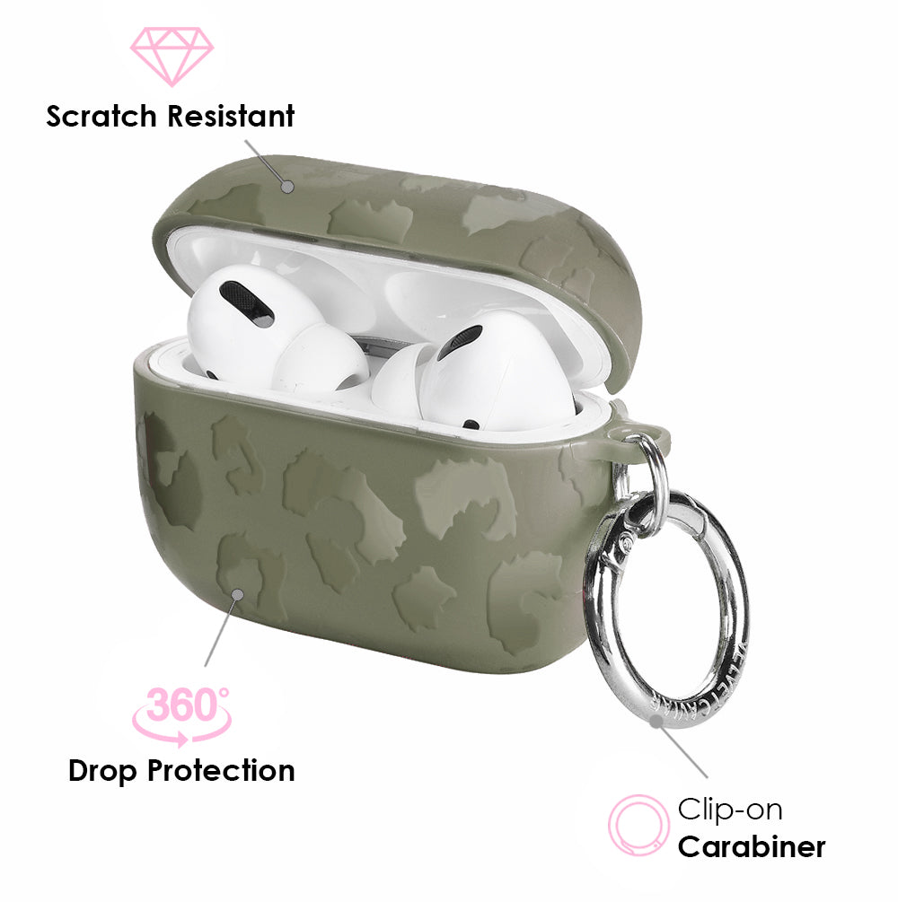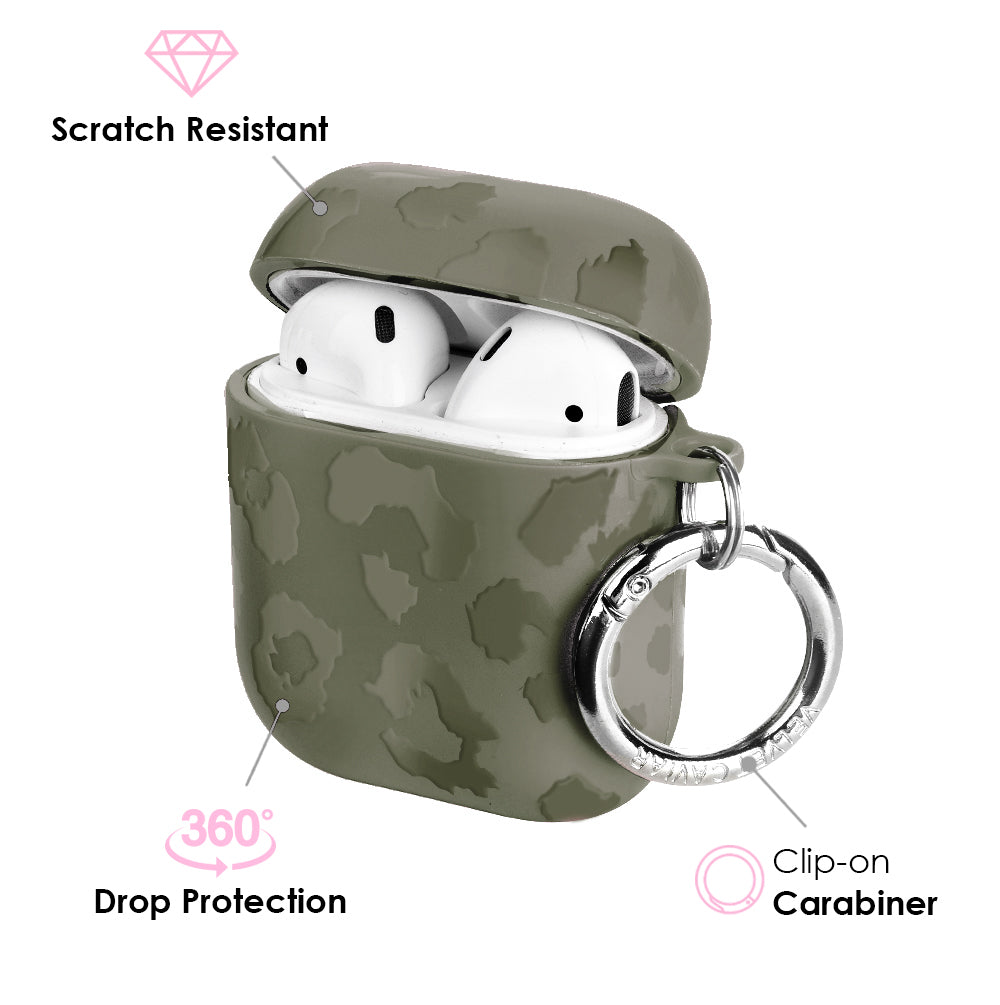 One word. FIERCE! This protective case features glossy olive leopard spots on a monochromatic matte base paired with a metal carabiner which you can clip to your keys, bag, or pants for easier access and less misplacing!