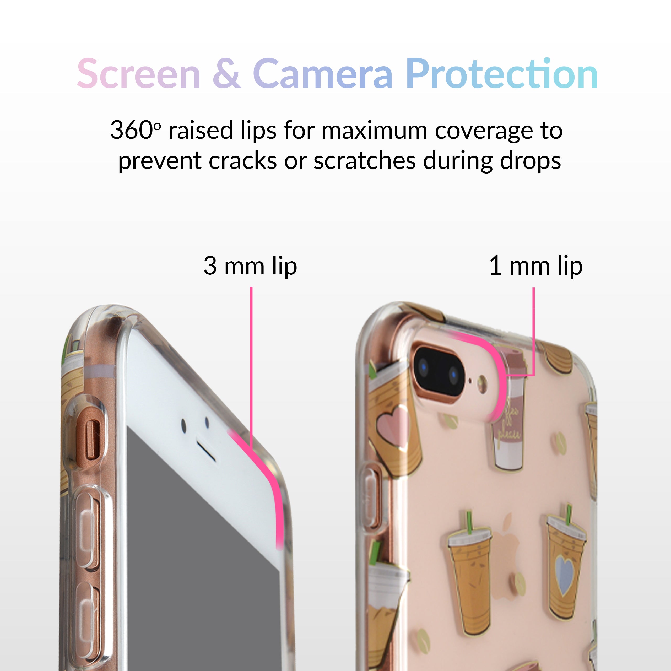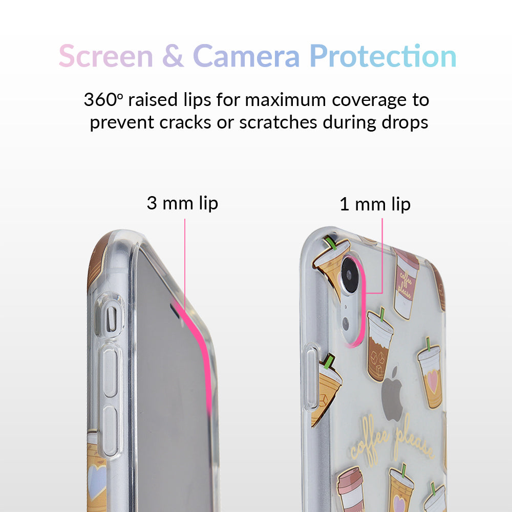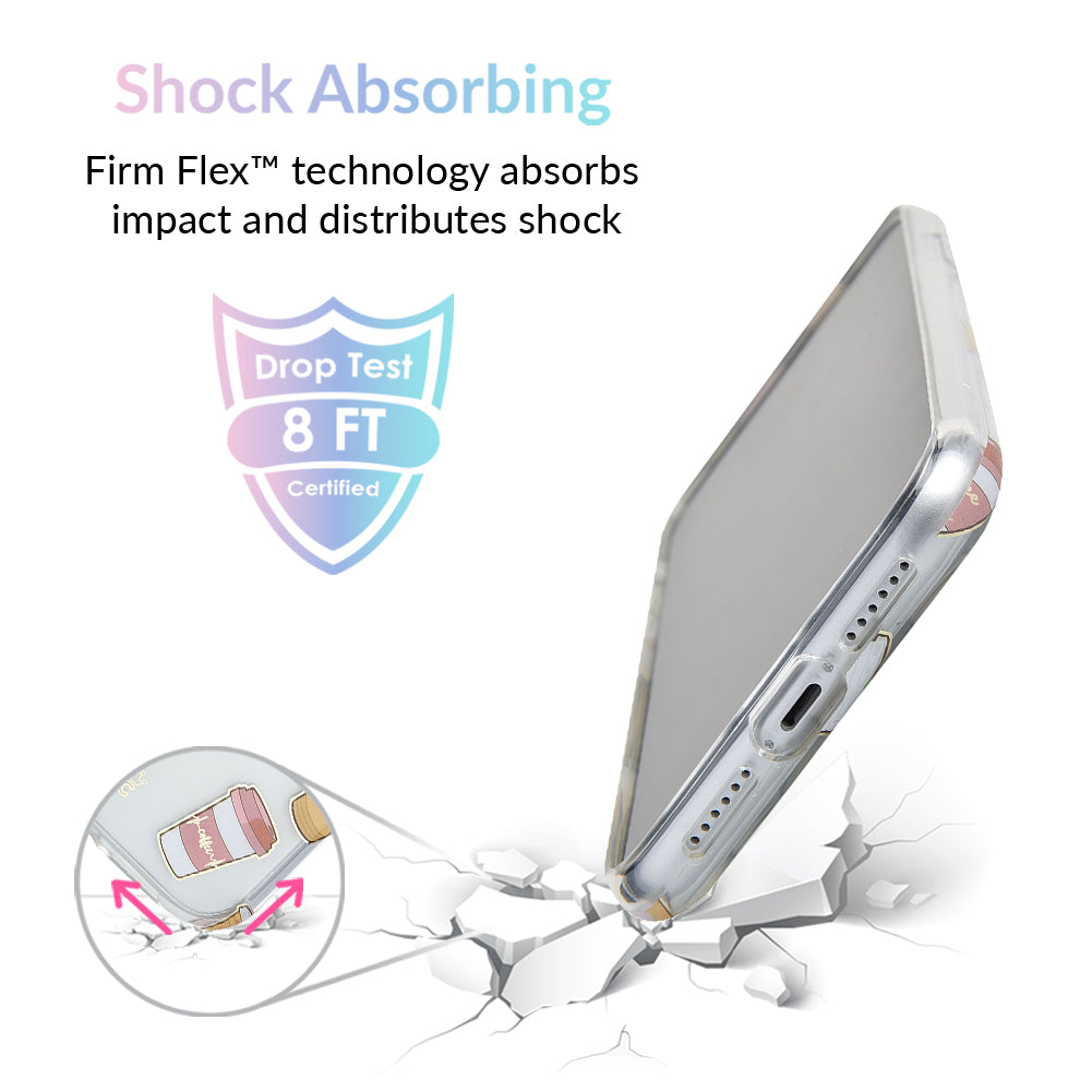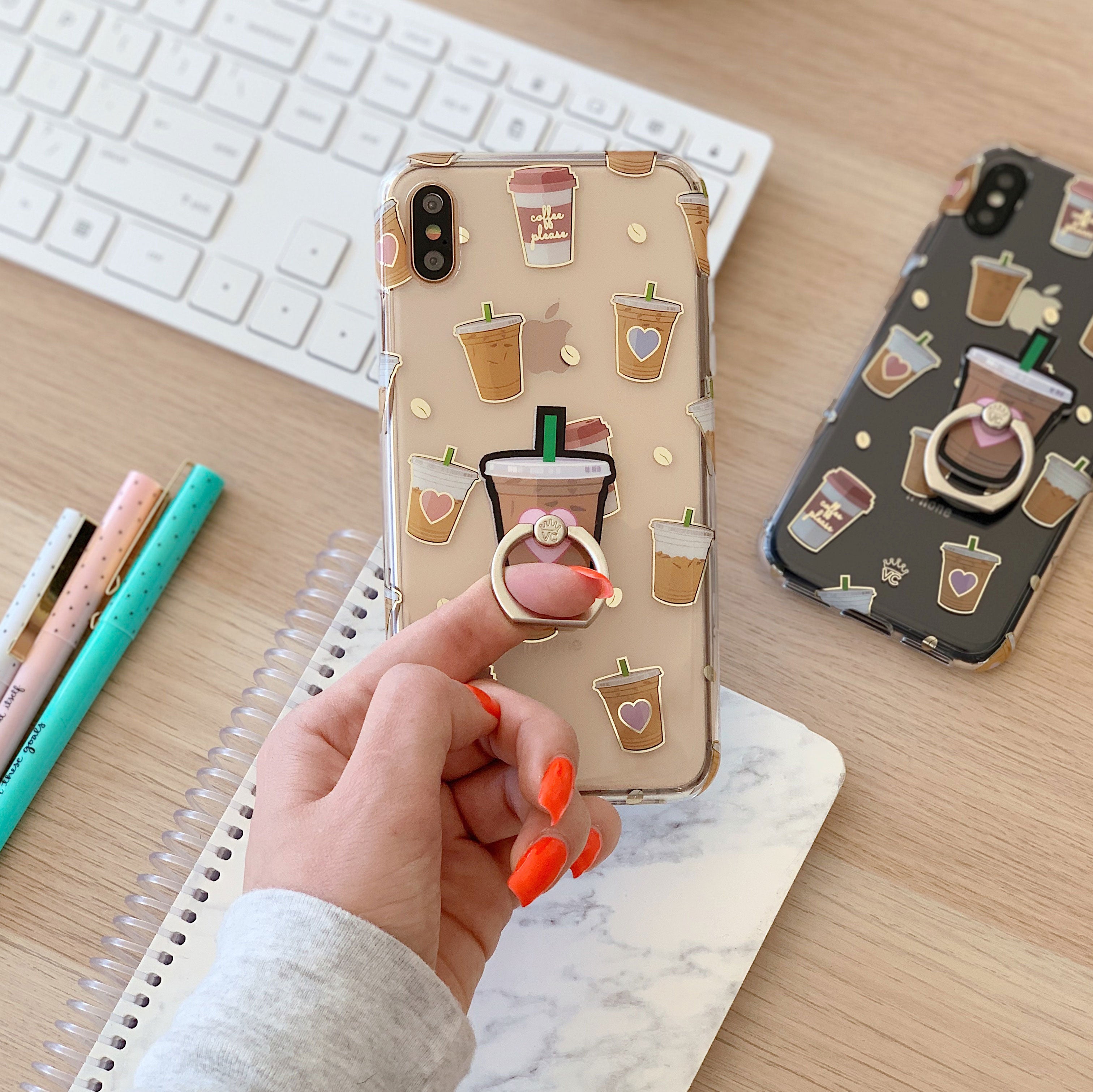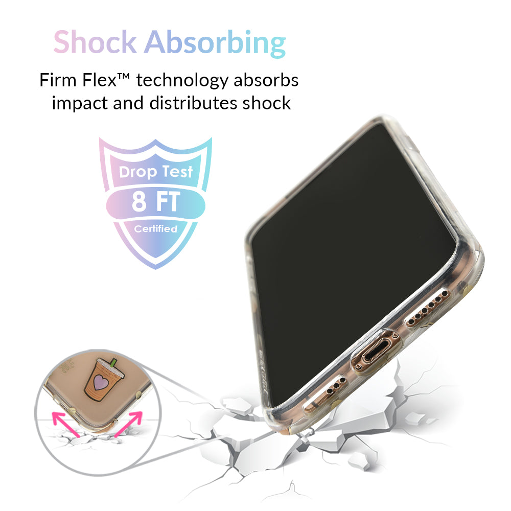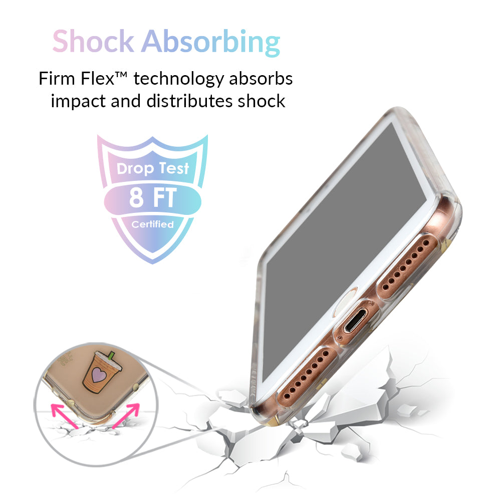 Mondays can’t bring you down when you’ve got cups of coffee! This protective, clear case has a super cute coffee pattern featuring iced coffee, to-go cups, and coffee beans! It comes in a gloss finish, gold chrome outlines, and a matching clear bumper for added protection against drops.