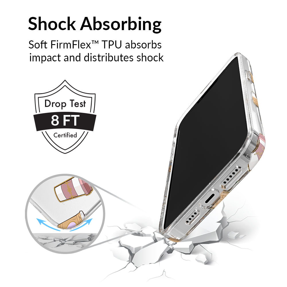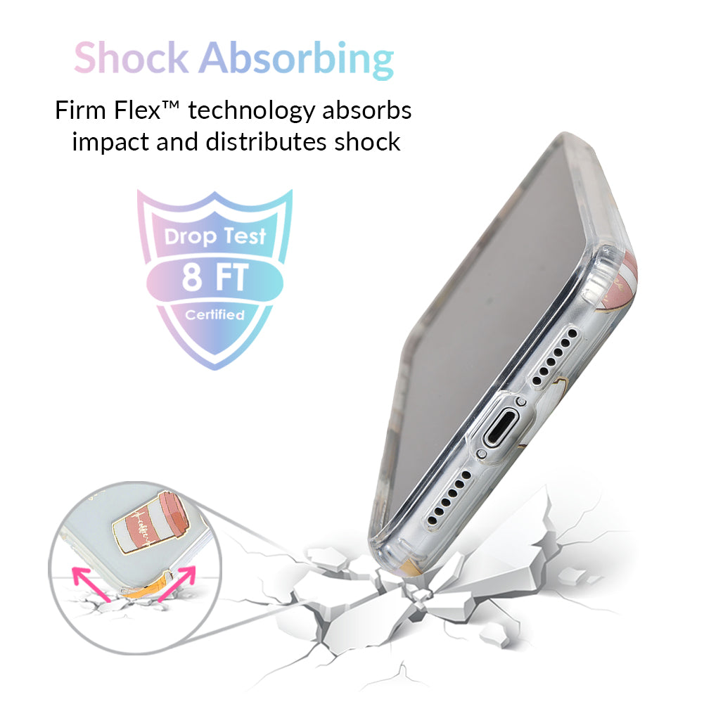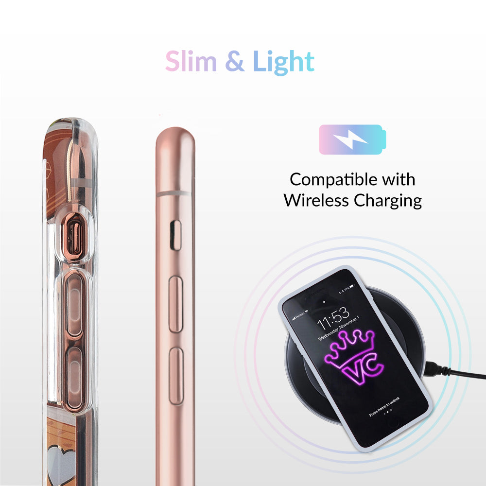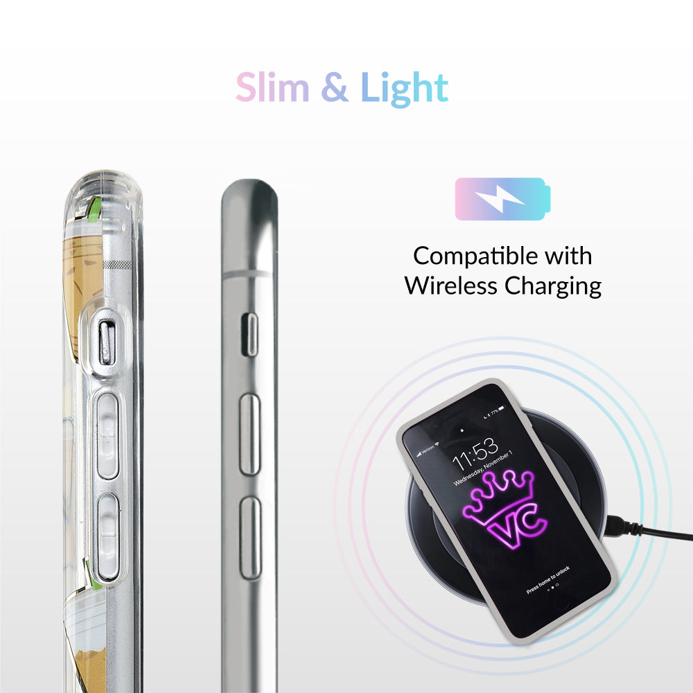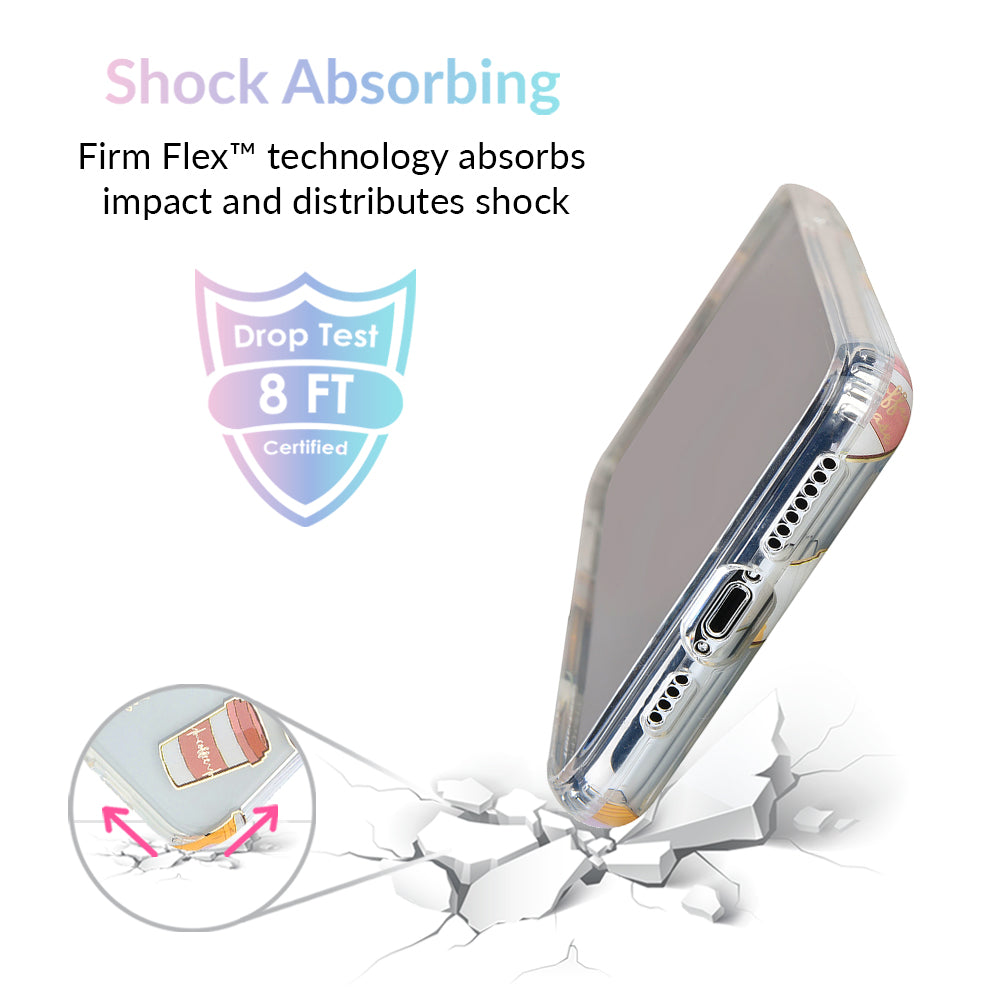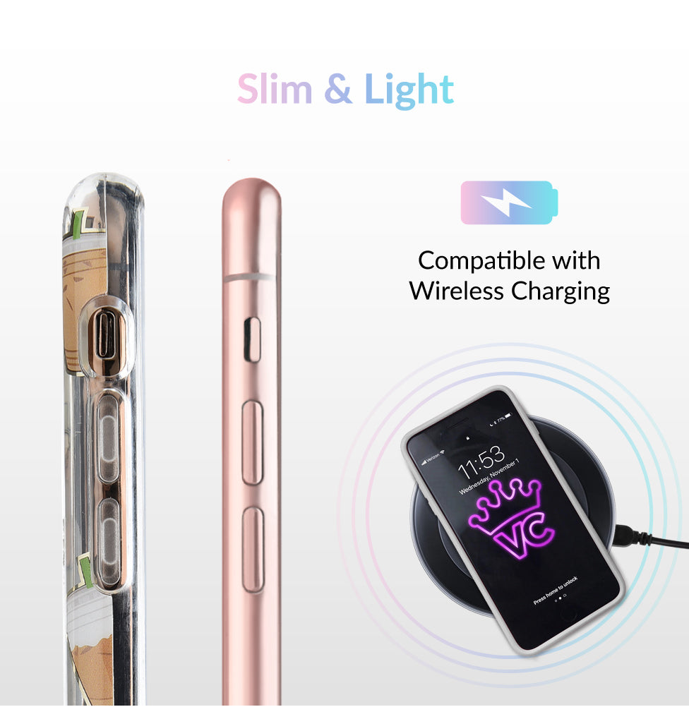 Mondays can’t bring you down when you’ve got cups of coffee! This protective, clear case has a super cute coffee pattern featuring iced coffee, to-go cups, and coffee beans! It comes in a gloss finish, gold chrome outlines, and a matching clear bumper for added protection against drops.