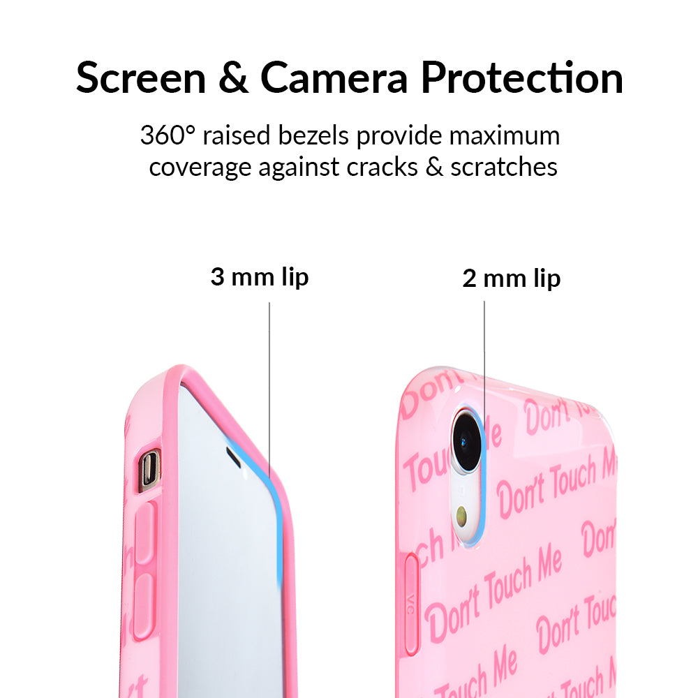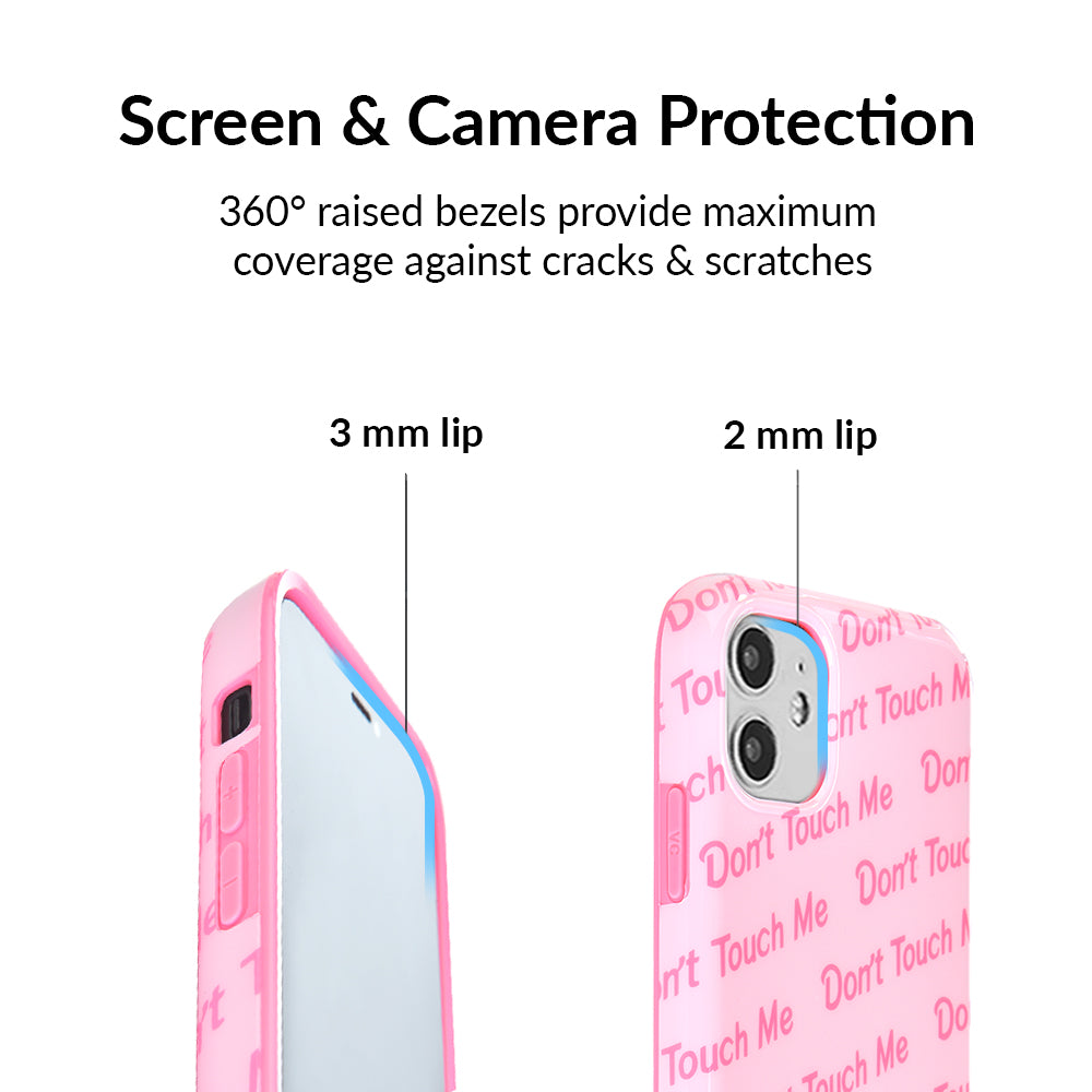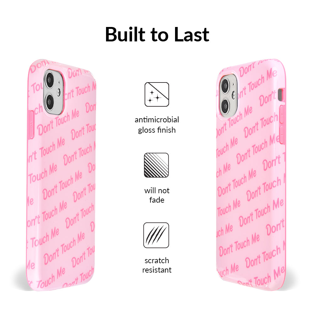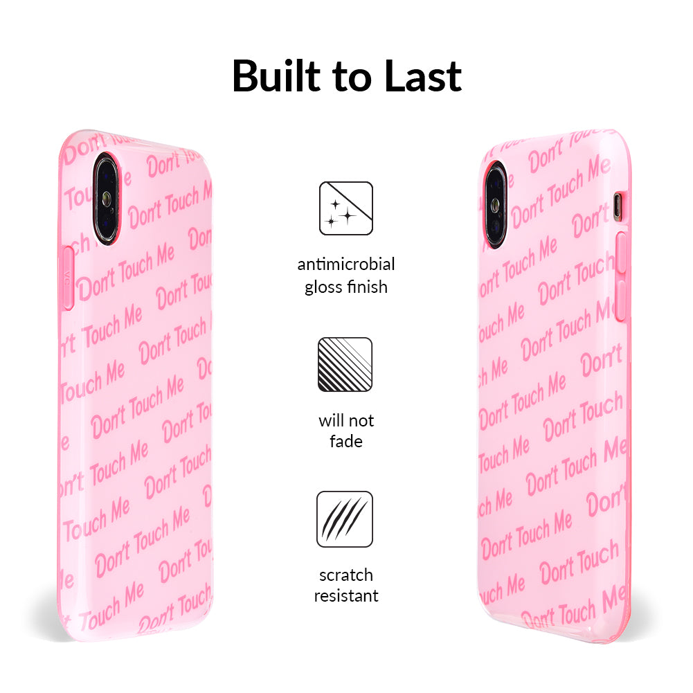For every time your mood was "Don't Touch Me." This sassy and protective case features a pink background with a complimentary pink text. We launched the original "Don't F**king Touch Me" case back in 2015. Due to popular demand, we have launched this case as a more "delicate" alternative! It comes in a gloss finish with matching pink bumper to maximize protection against drops!