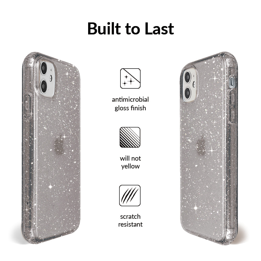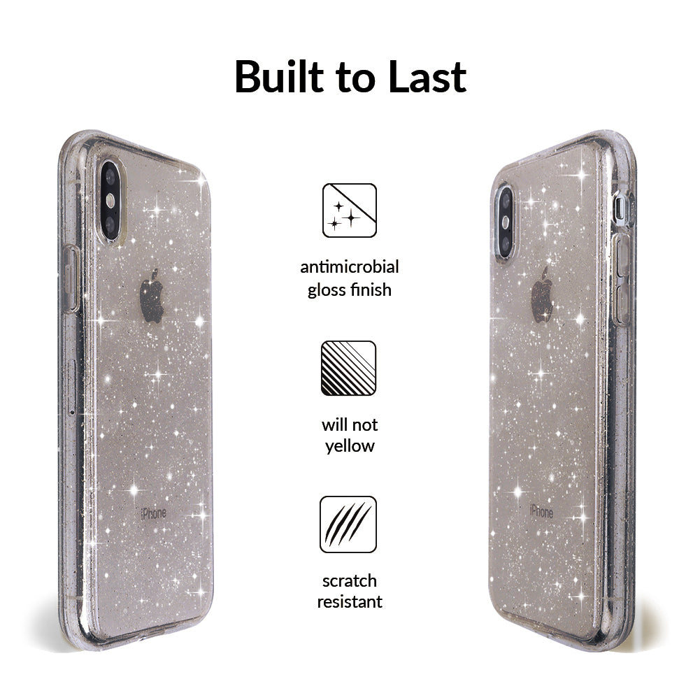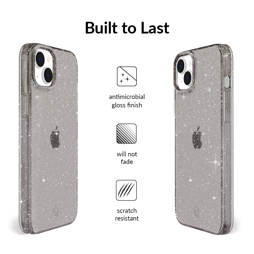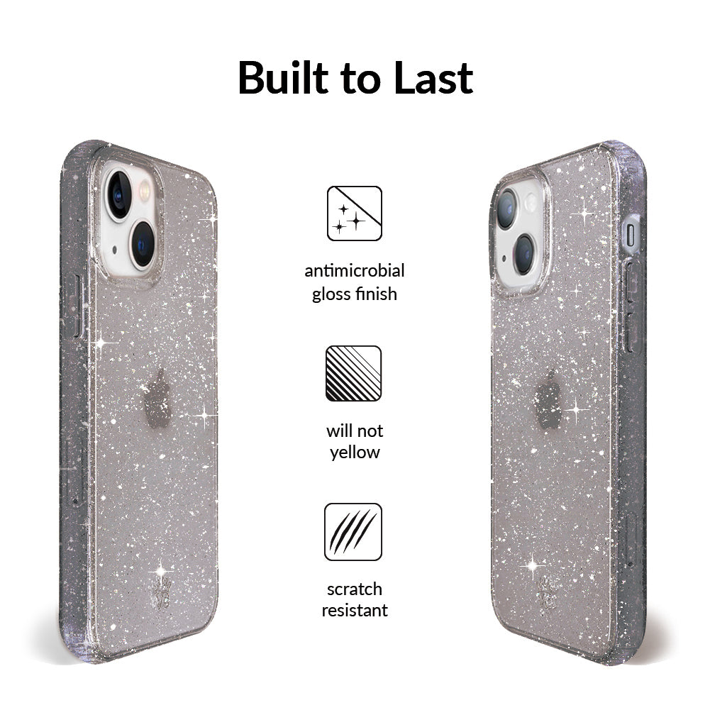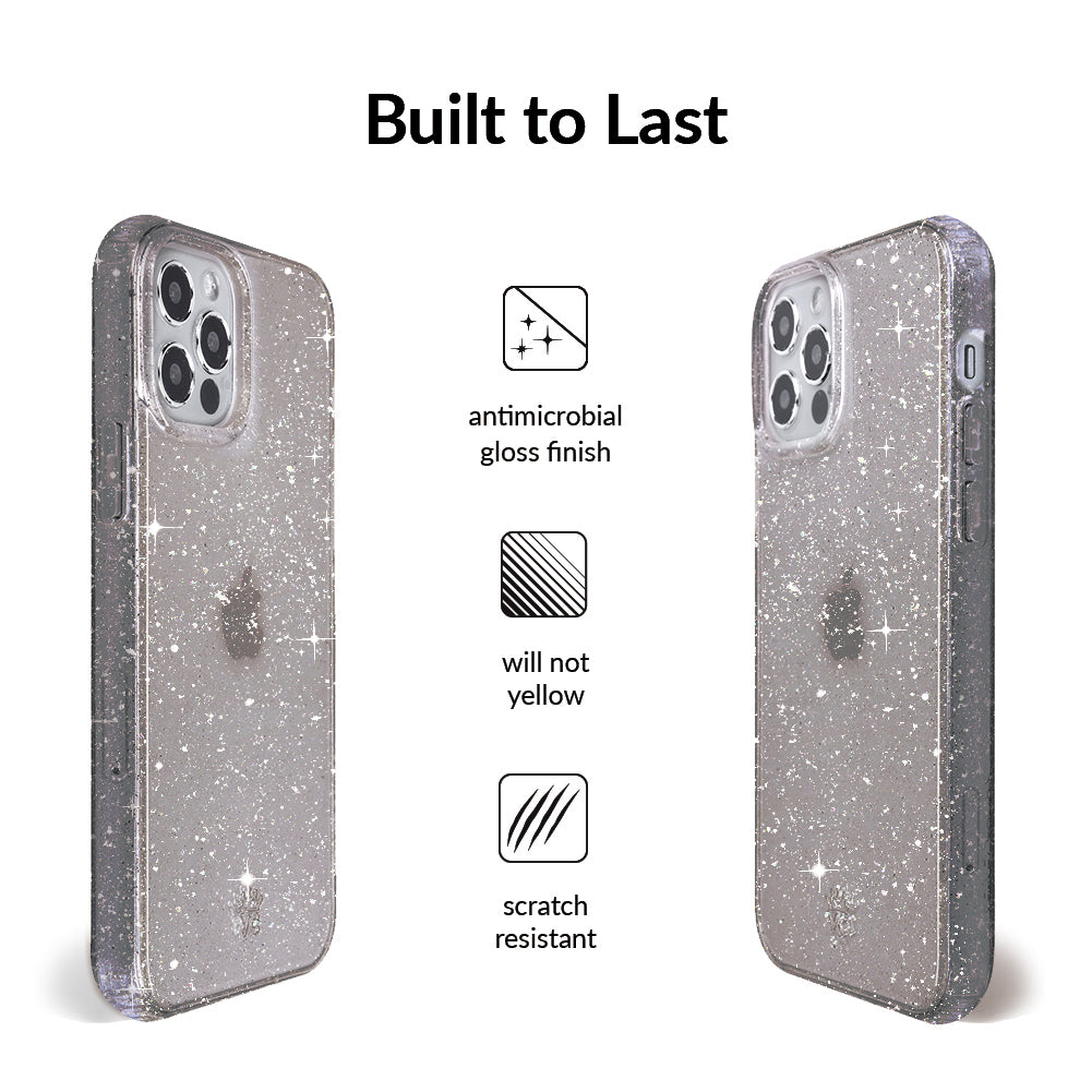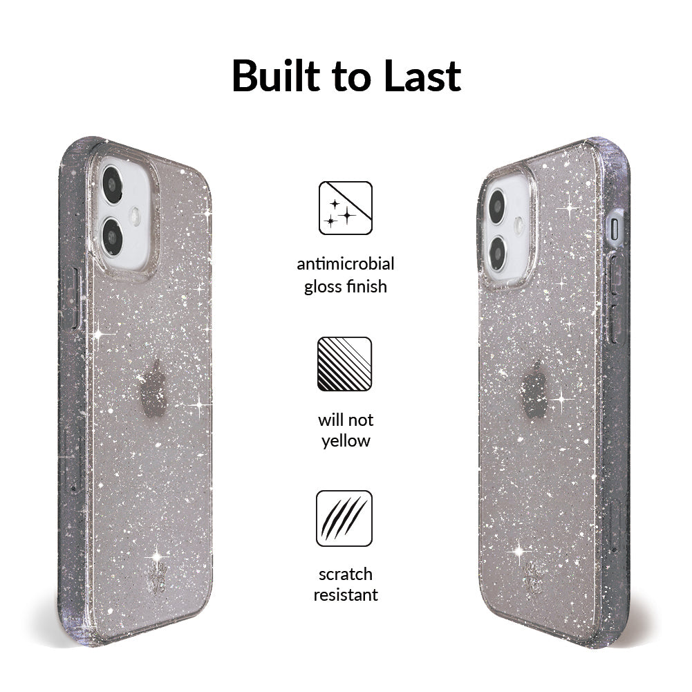 Baby you're a star! Featuring silver glitter sprinkled in a light grey clear case with a gloss finish. Completed with a clear bumper for added protection against drops. Also, matching grip ring available!
