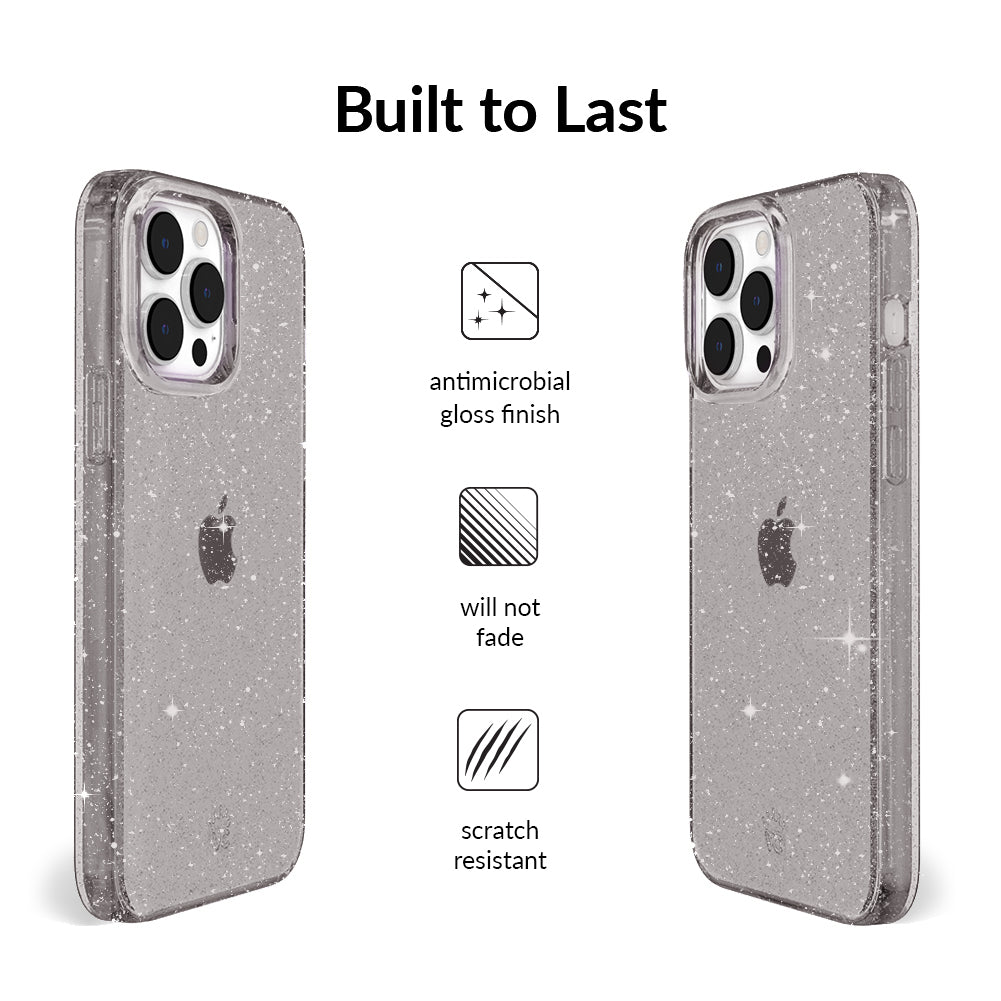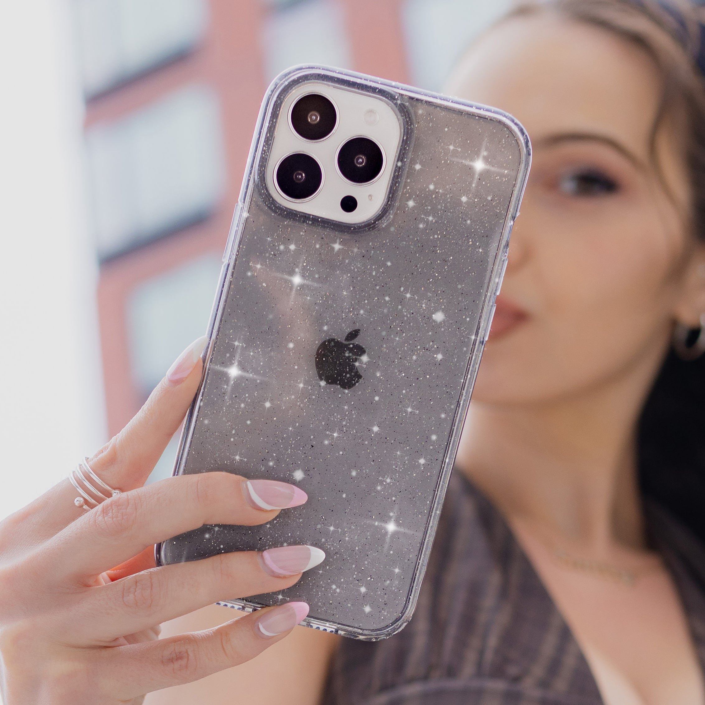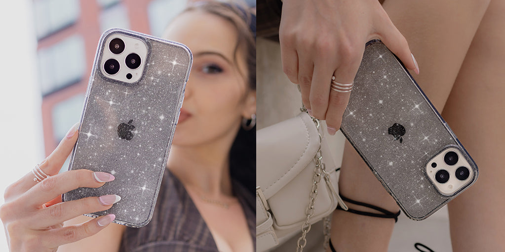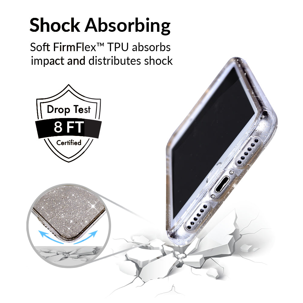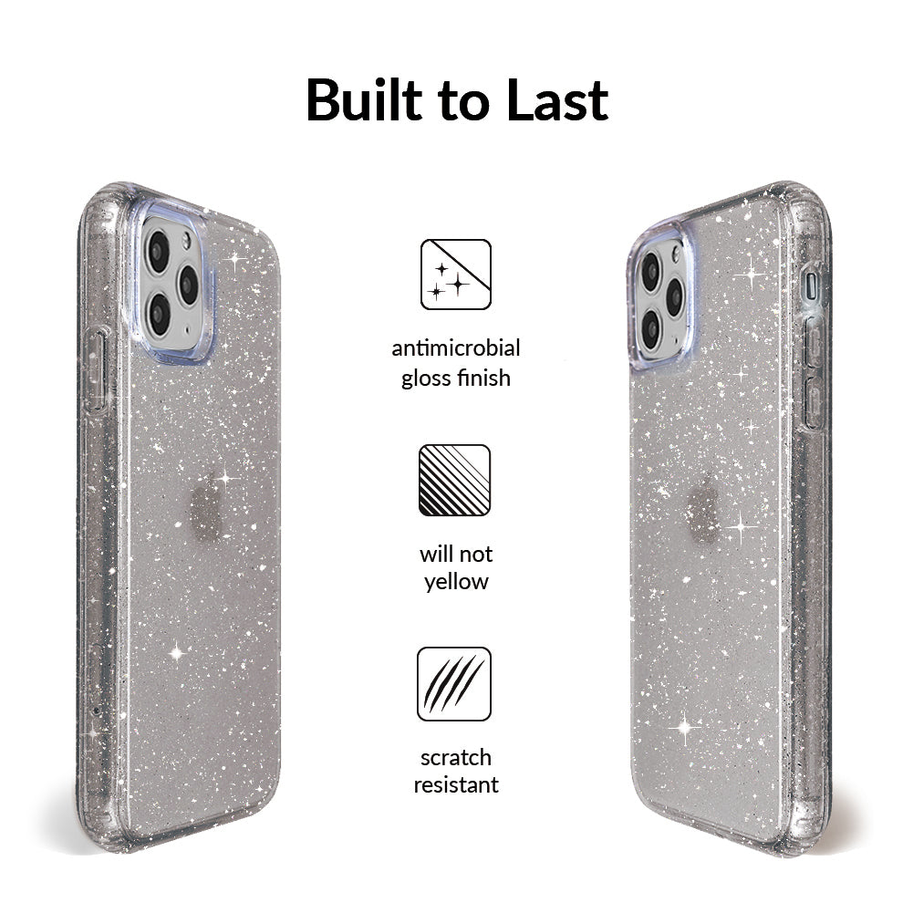 Baby you're a star! Featuring silver glitter sprinkled in a light grey clear case with a gloss finish. Completed with a clear bumper for added protection against drops. Also, matching grip ring available!