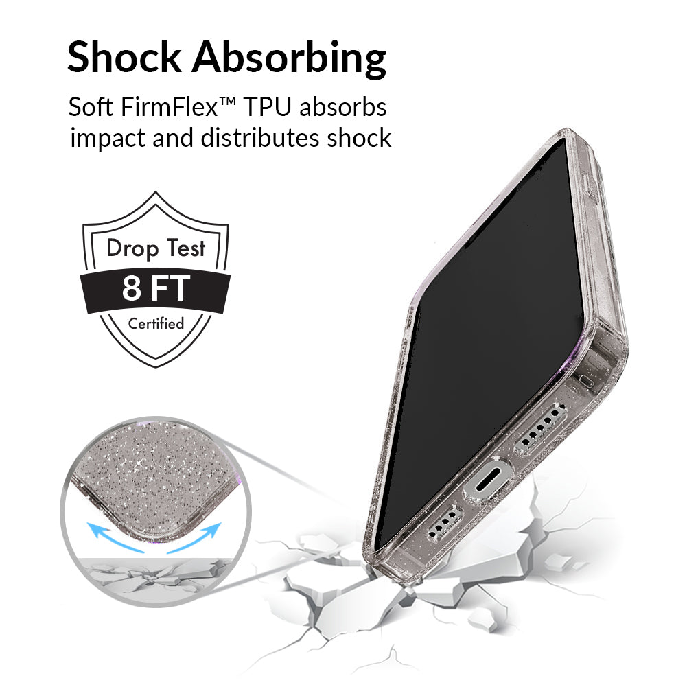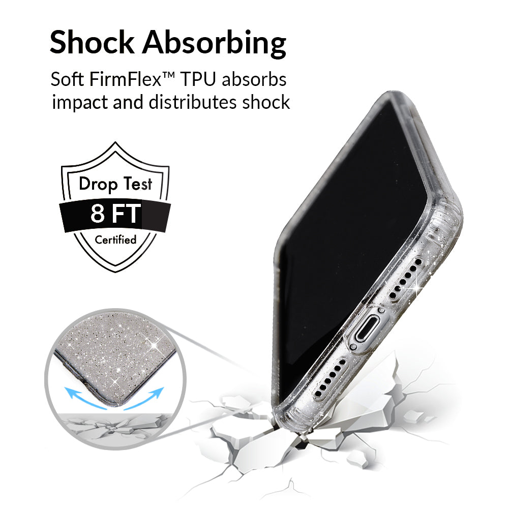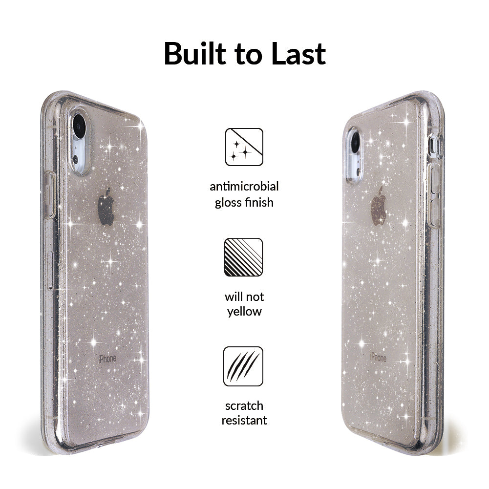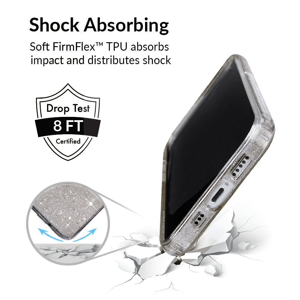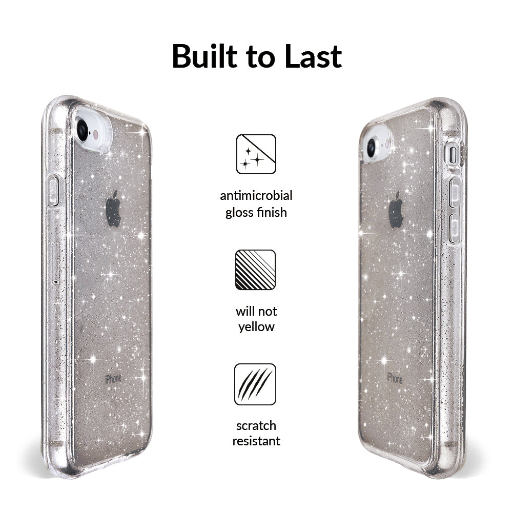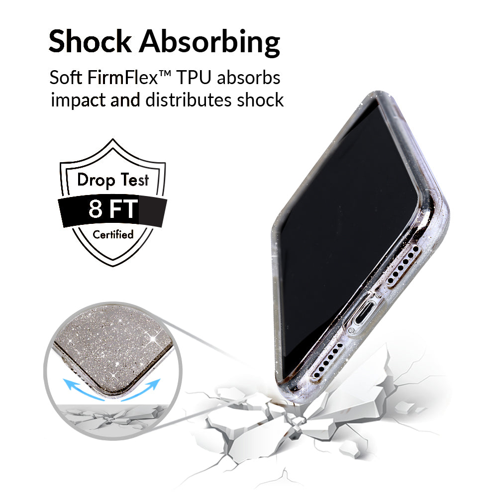 Baby you're a star! Featuring silver glitter sprinkled in a light grey clear case with a gloss finish. Completed with a clear bumper for added protection against drops. Also, matching grip ring available!