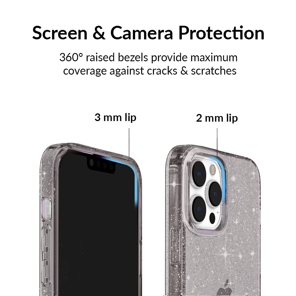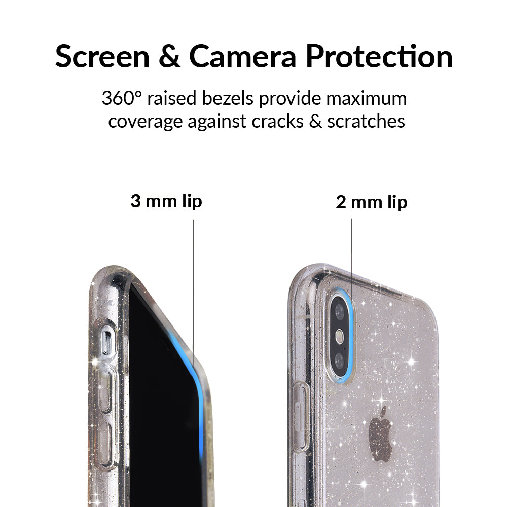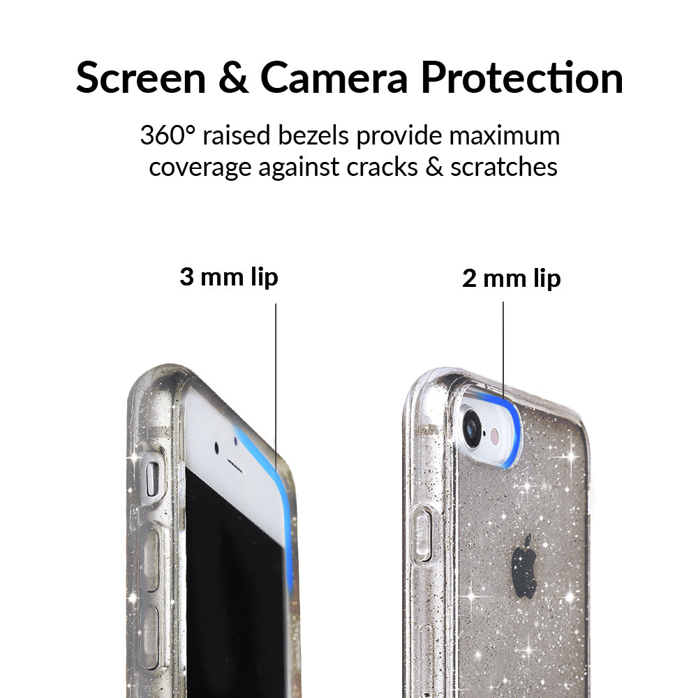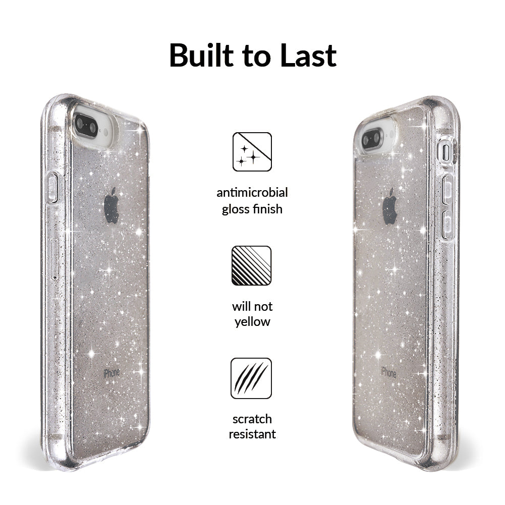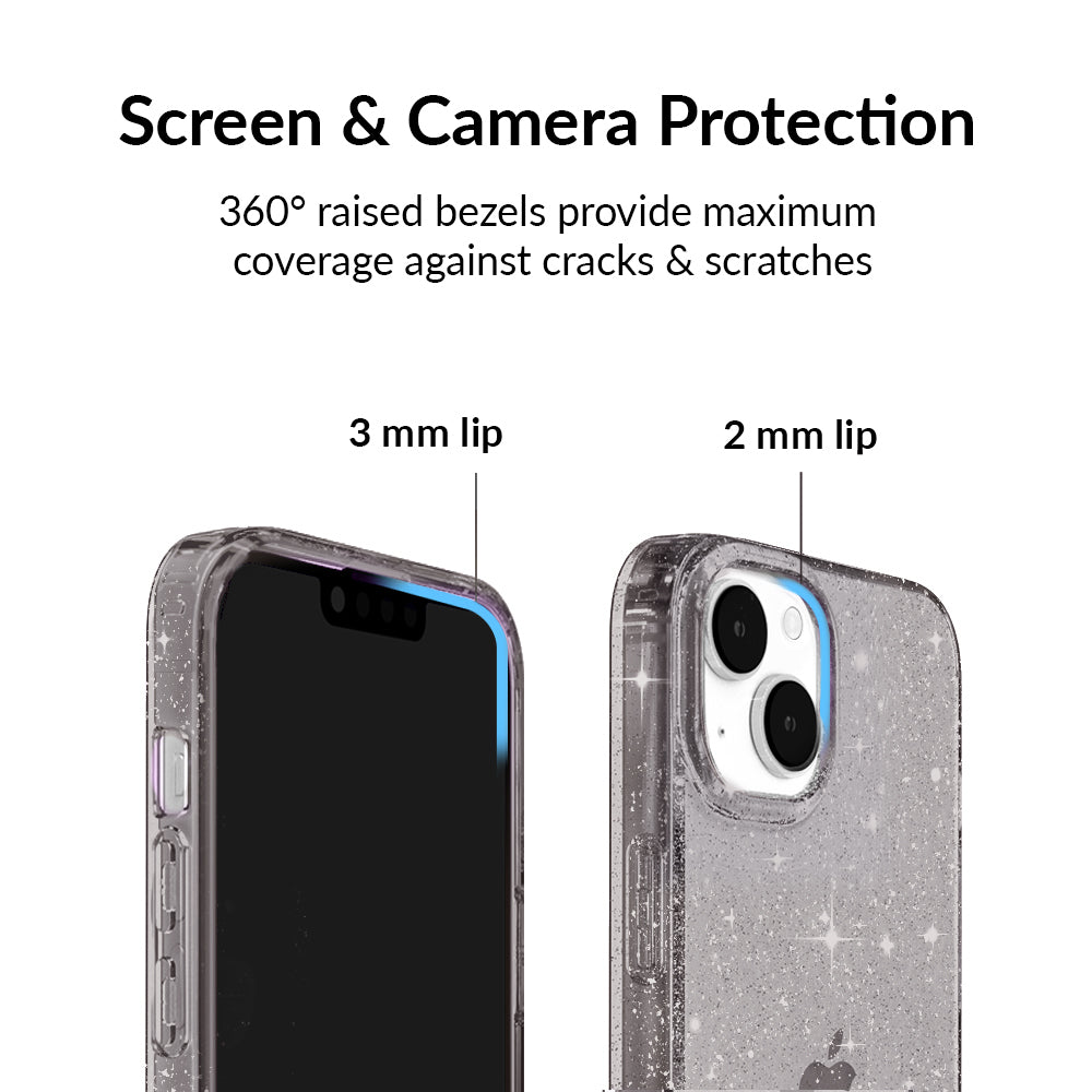 Baby you're a star! Featuring silver glitter sprinkled in a light grey clear case with a gloss finish. Completed with a clear bumper for added protection against drops. Also, matching grip ring available!