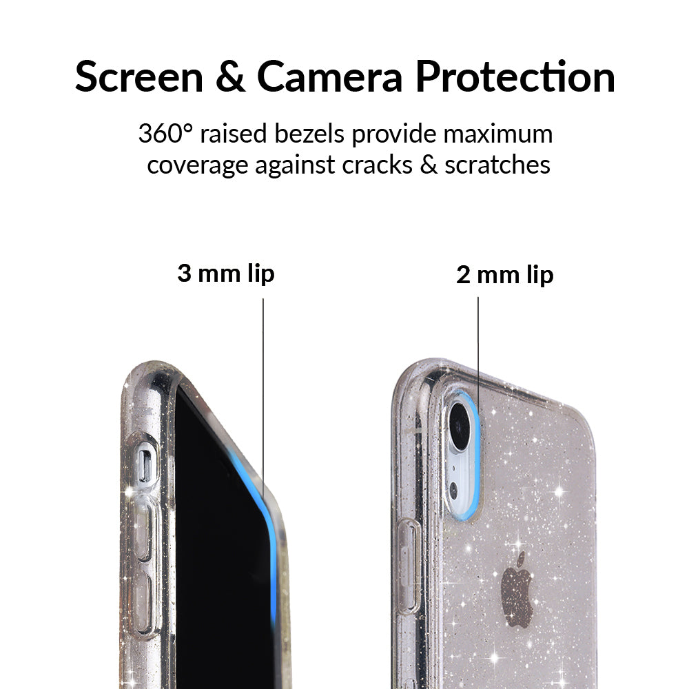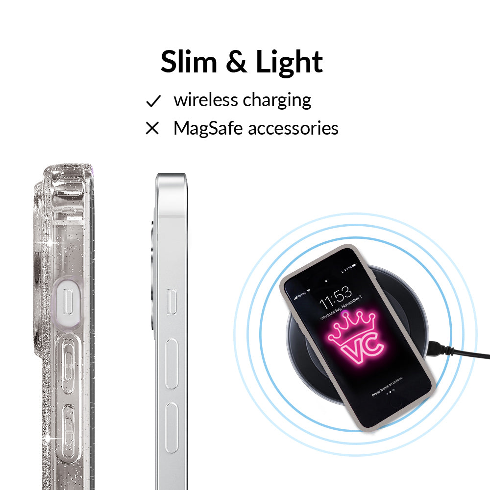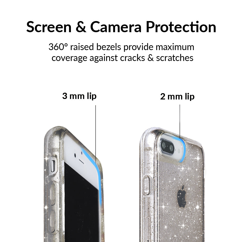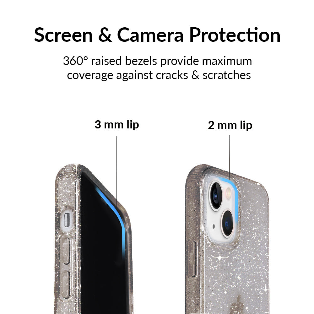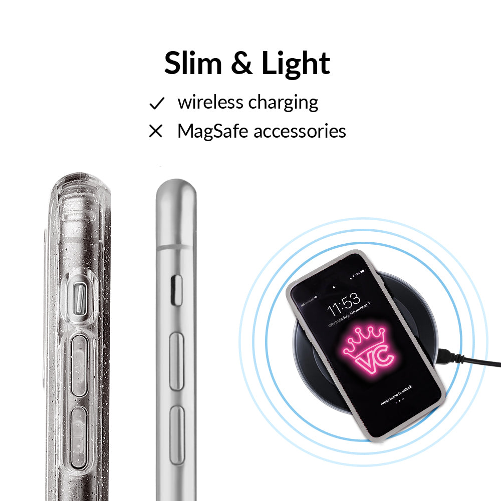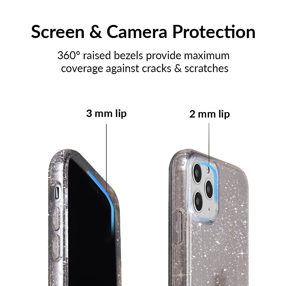 Baby you're a star! Featuring silver glitter sprinkled in a light grey clear case with a gloss finish. Completed with a clear bumper for added protection against drops. Also, matching grip ring available!