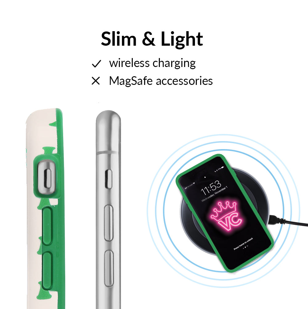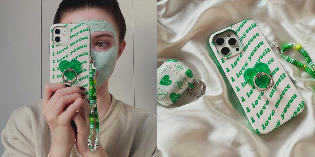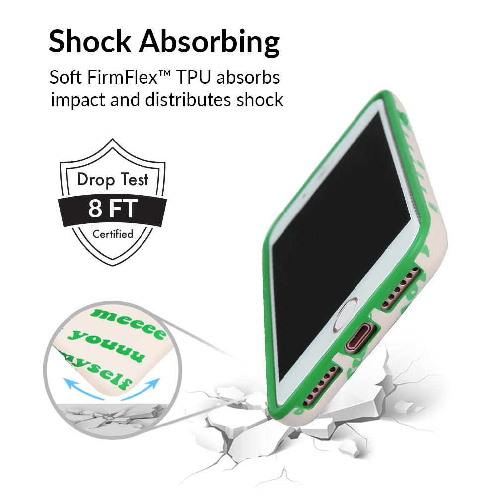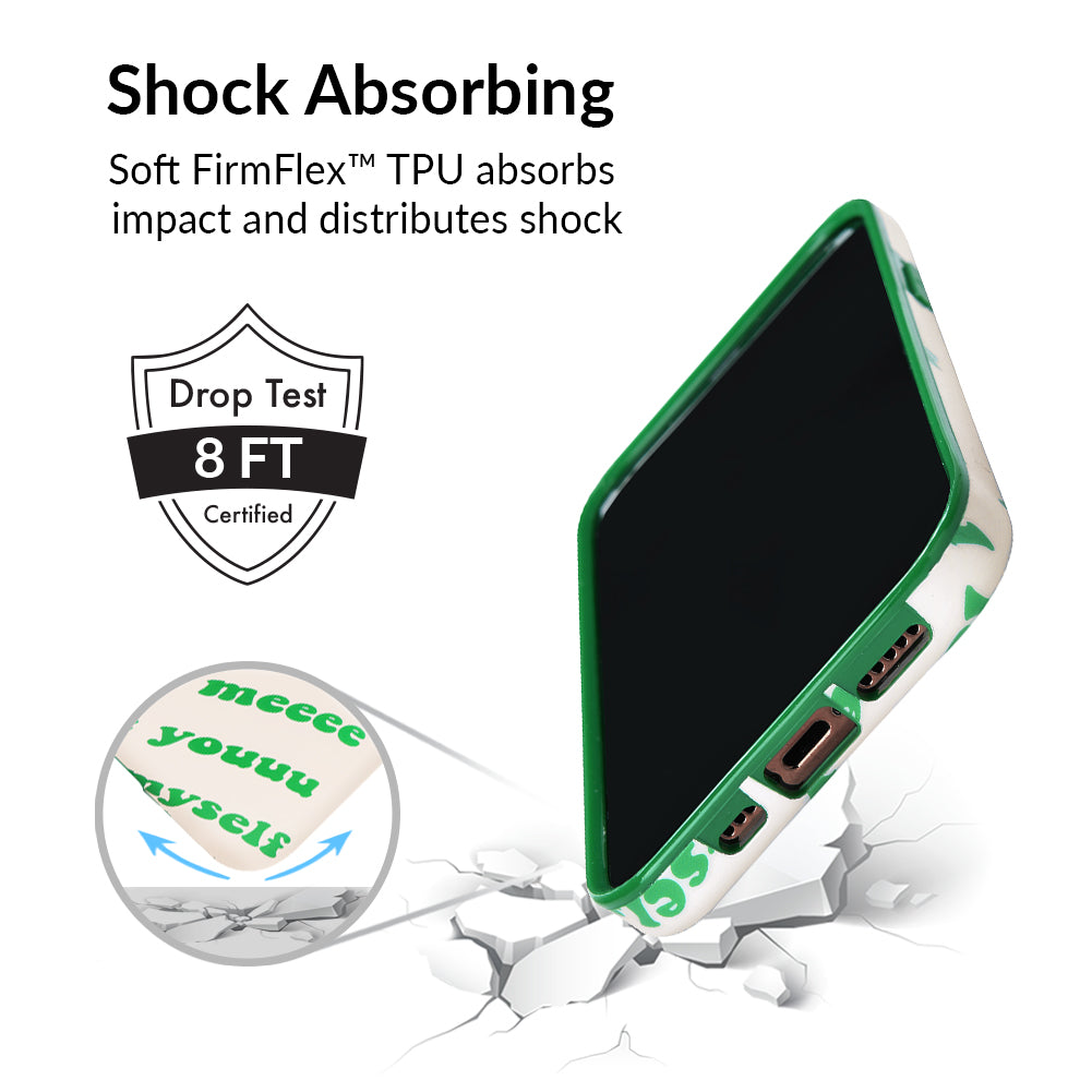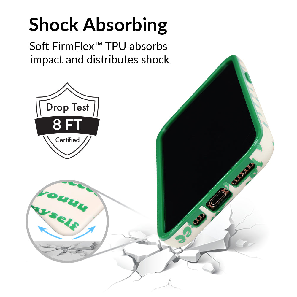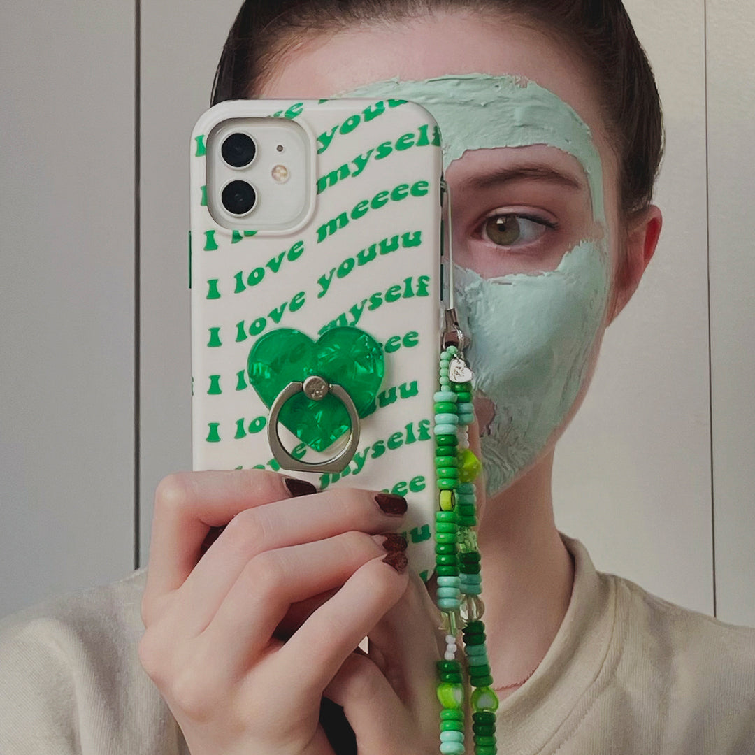 Self love is the best love! Radiate positive vibes & good energy. This protective opaque case features a glossy cream base with kelly green words of empowerment. Finished with a matching green bumper this case is a beautiful reminder to love yourself always.