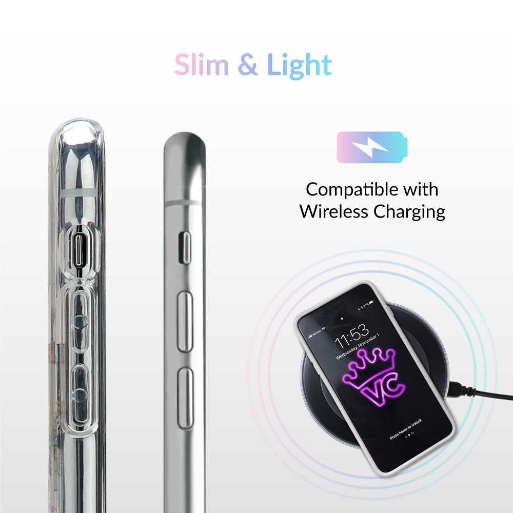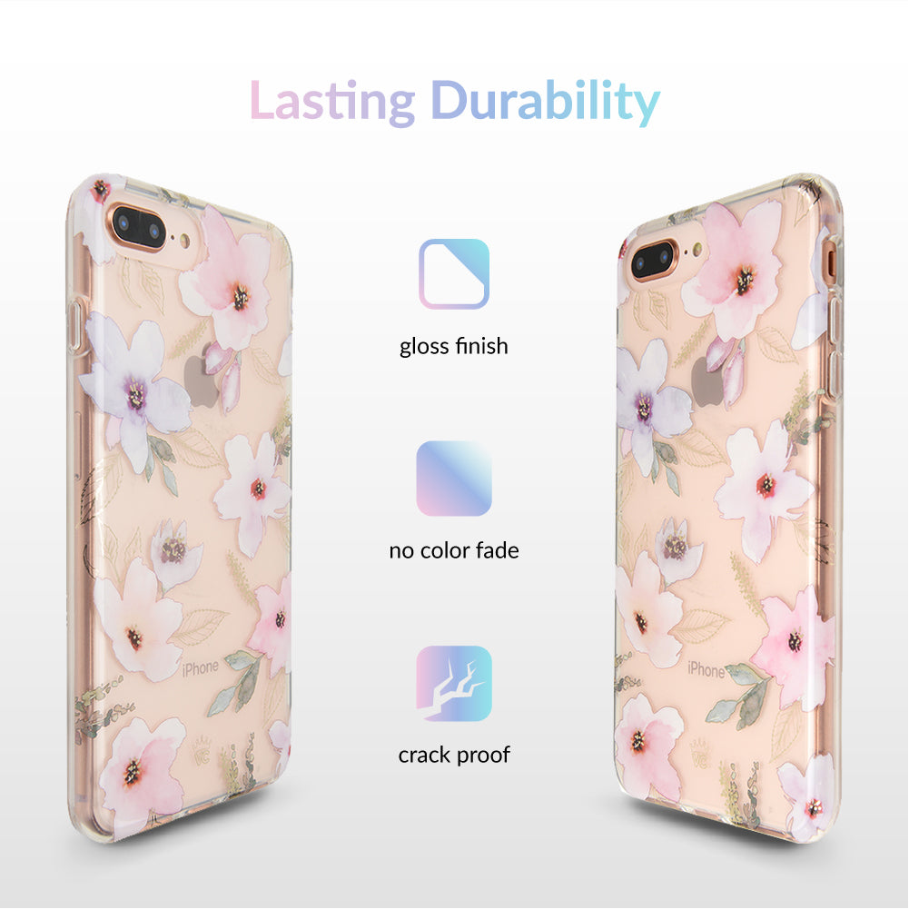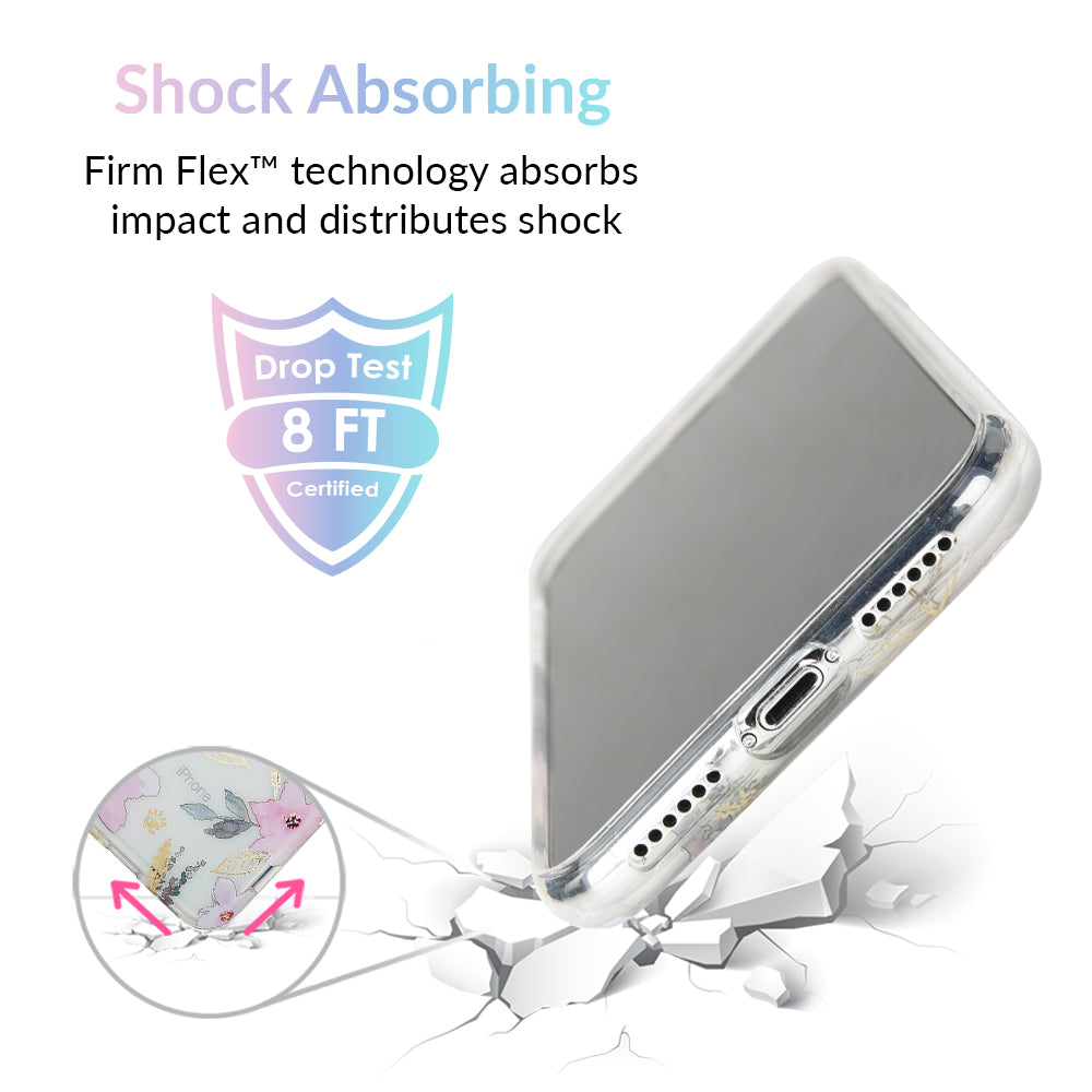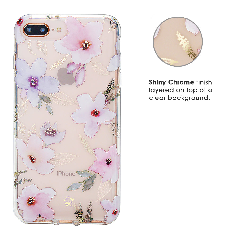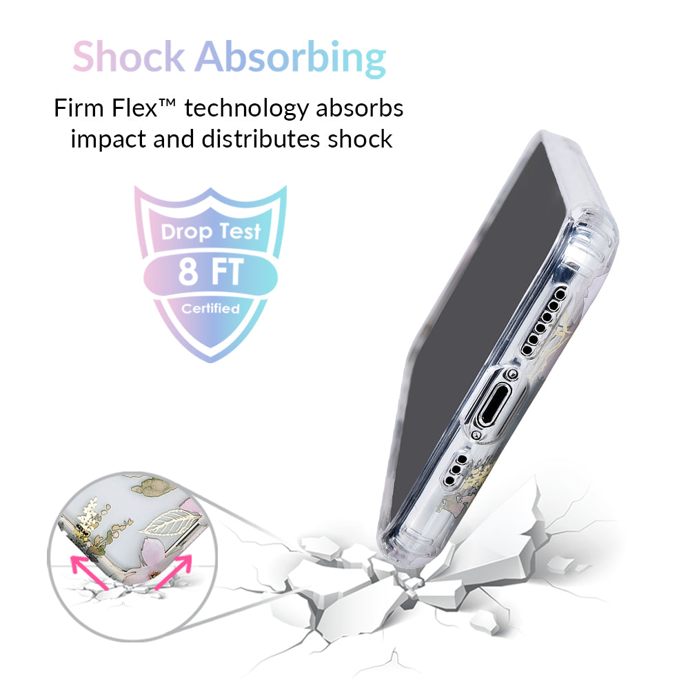 Inspired by the Magnolia flower's essence of Beauty, Endurance, and Health. This protective clear case is covered in beautiful, hand drawn magnolia flowers with delicate, metallic gold detailing.