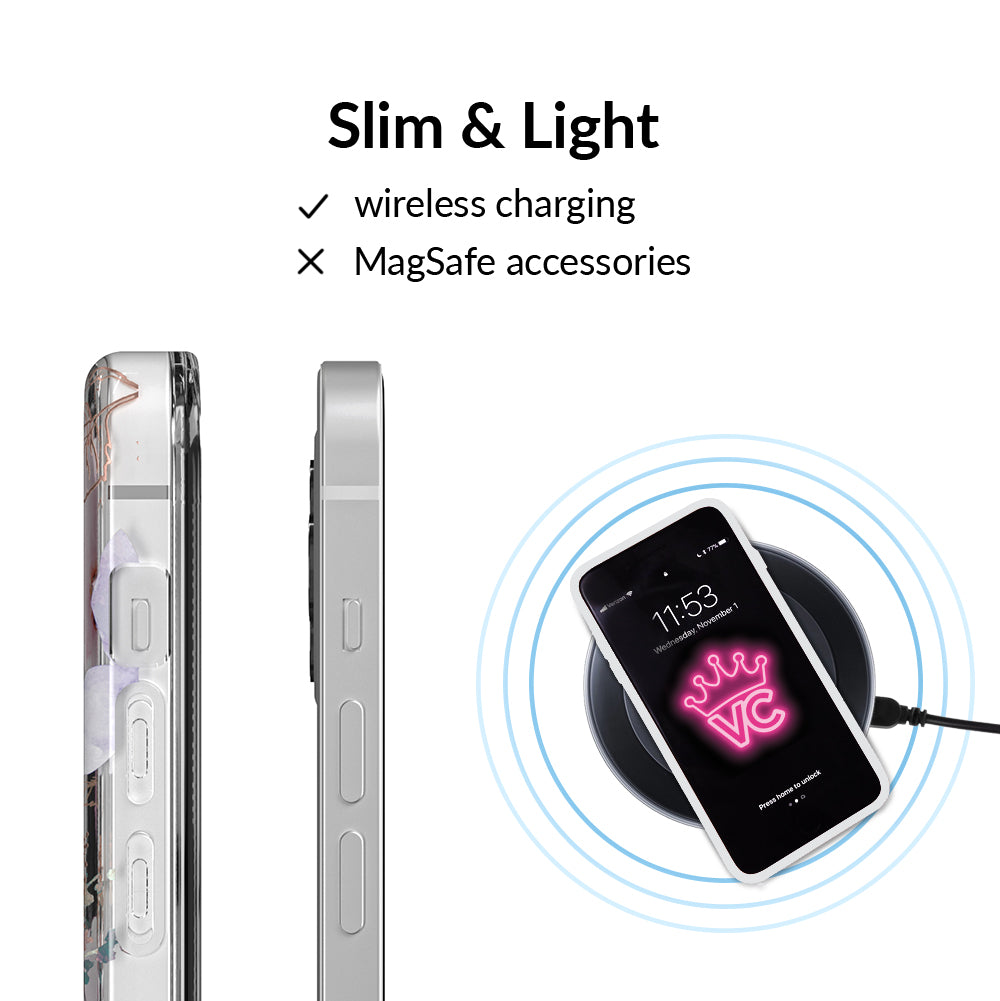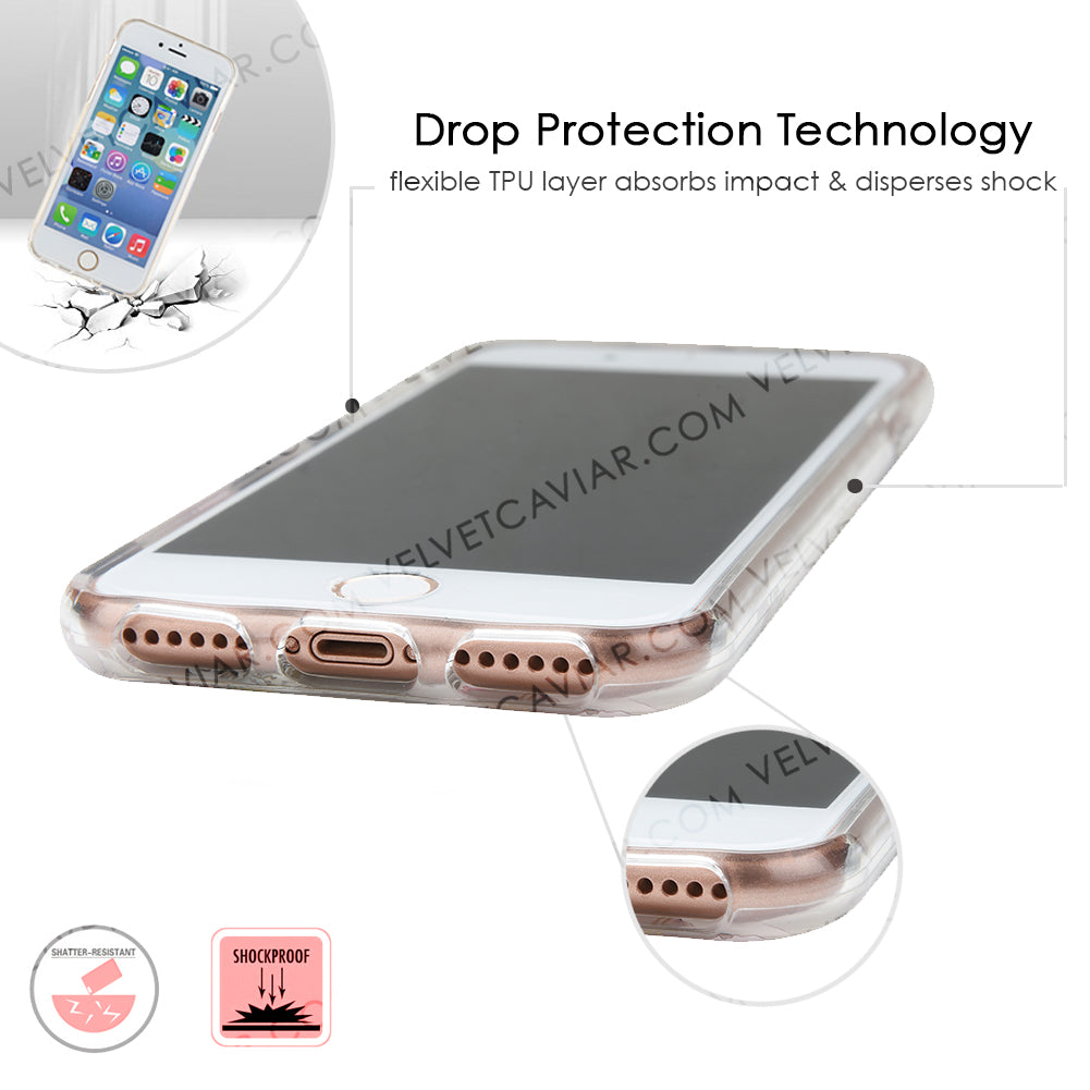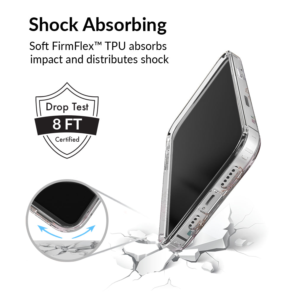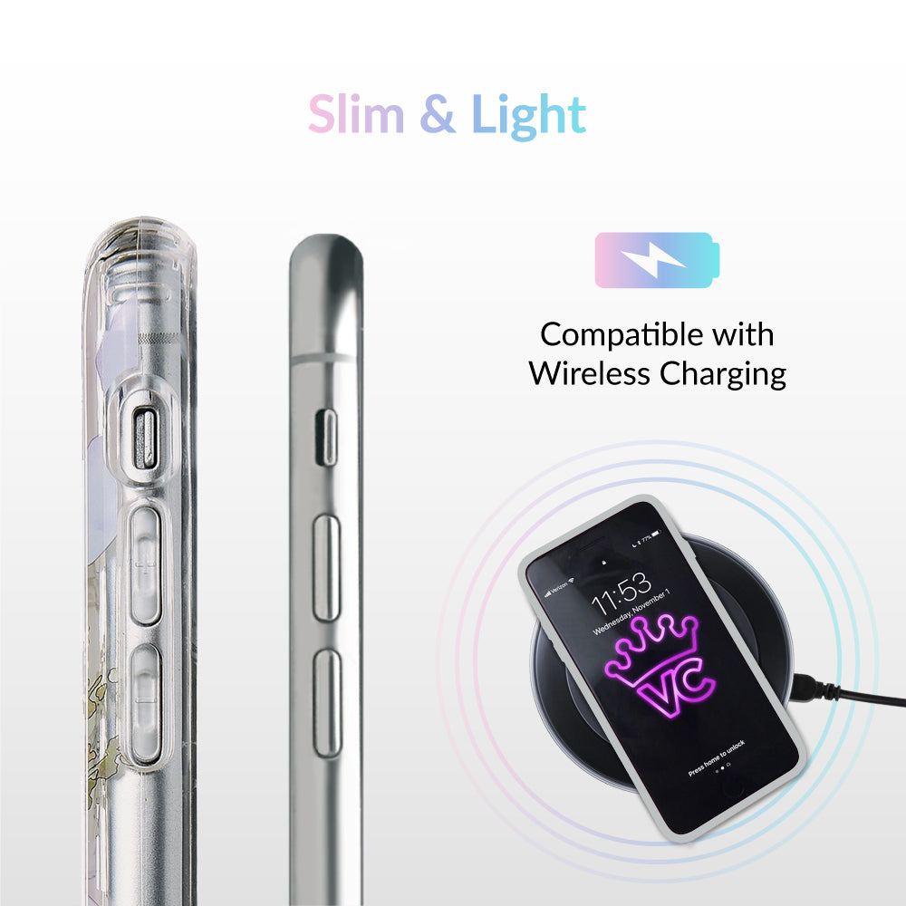 Inspired by the Magnolia flower's essence of Beauty, Endurance, and Health. This protective clear case is covered in beautiful, hand drawn magnolia flowers with delicate, metallic gold detailing.