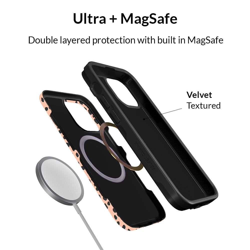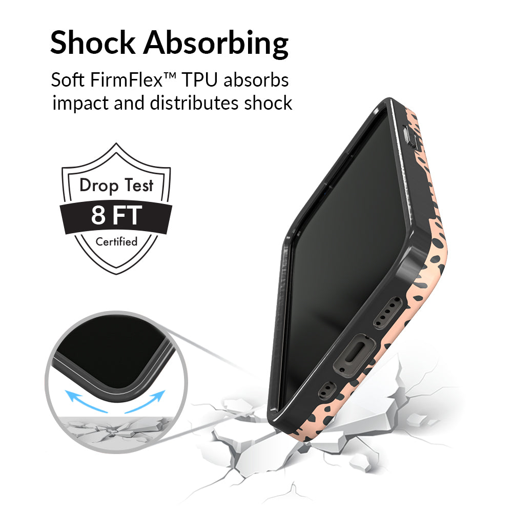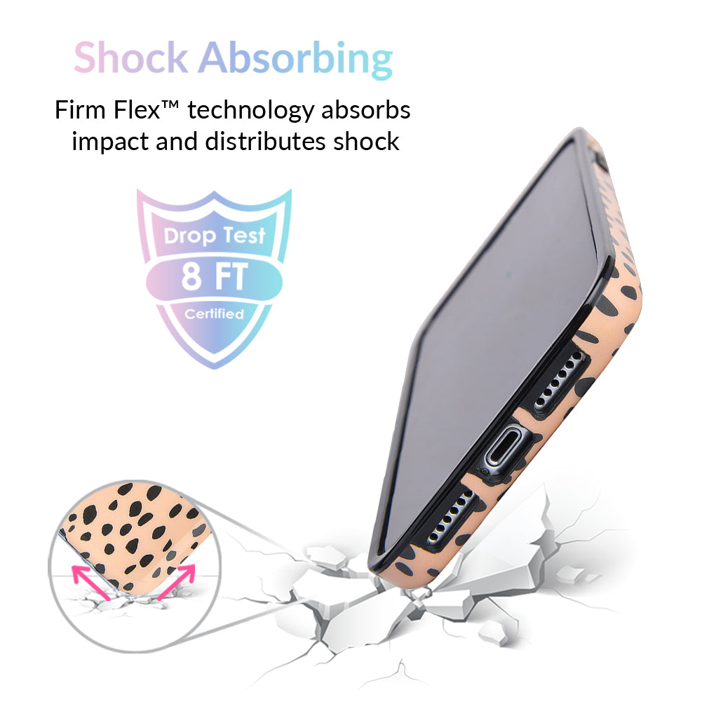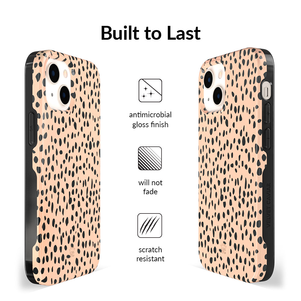 Let out your wild side with the Spotted Nude Cheetah case! Made in the concrete jungle of NY, this protective case features a subtle nude background with black cheetah print spots. It comes in a gloss finish with a matching black bumper for added protection against drops.