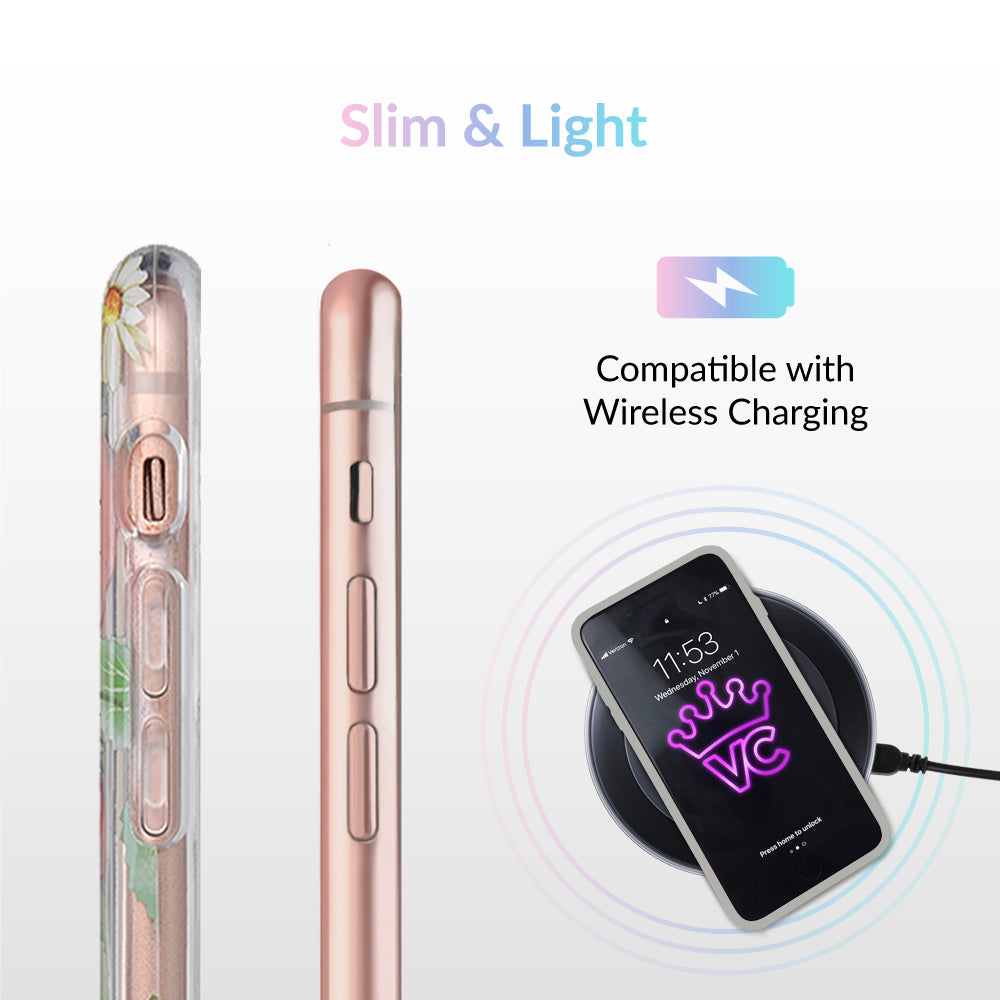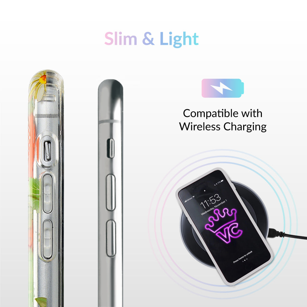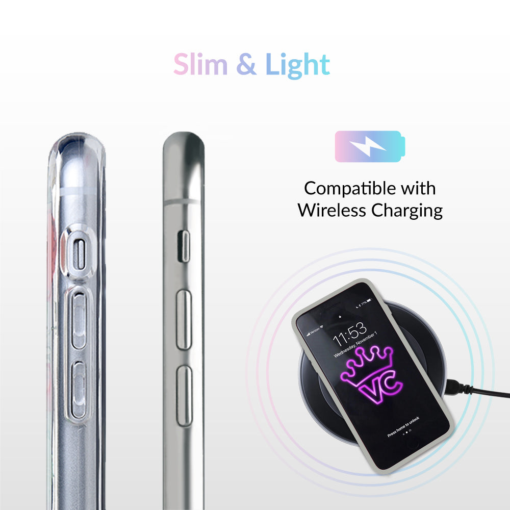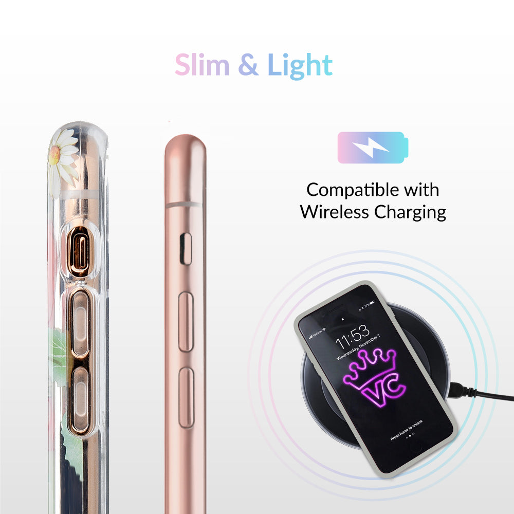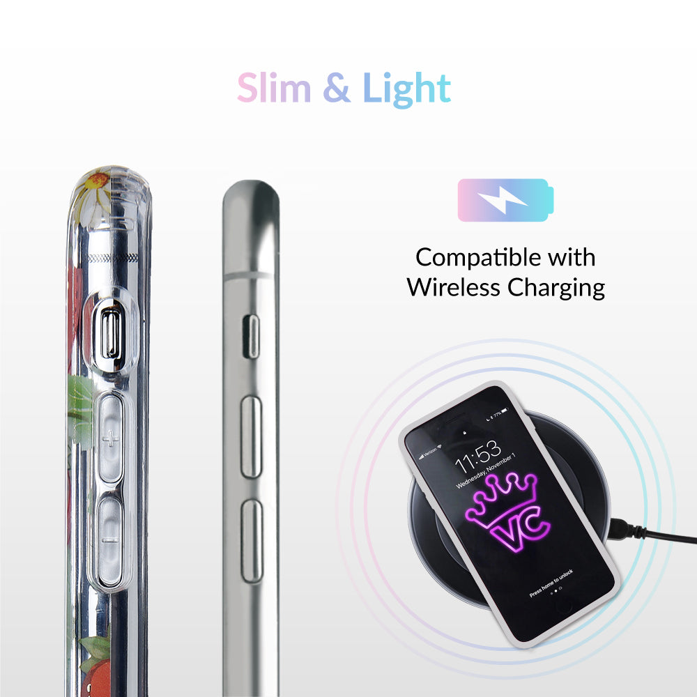 Taste summer with our sweet Strawberry Fields clear case! This protective case has a berry cute hand-drawn strawberry pattern with gold chrome outlines, and a matching clear front bumper for added protection against drops.