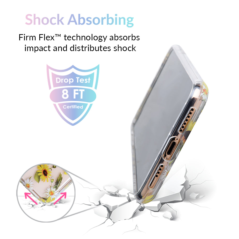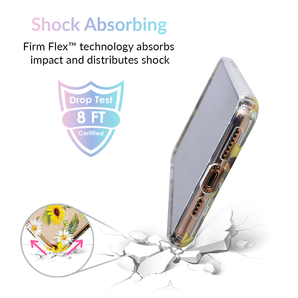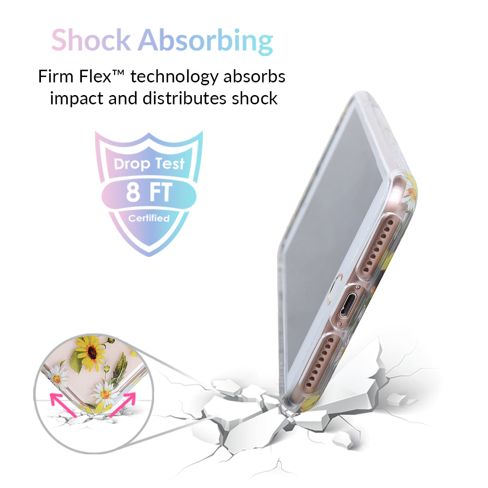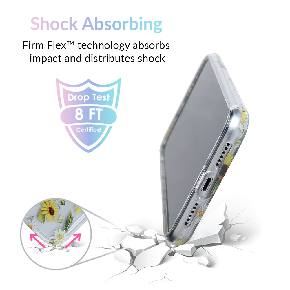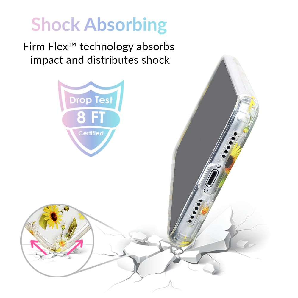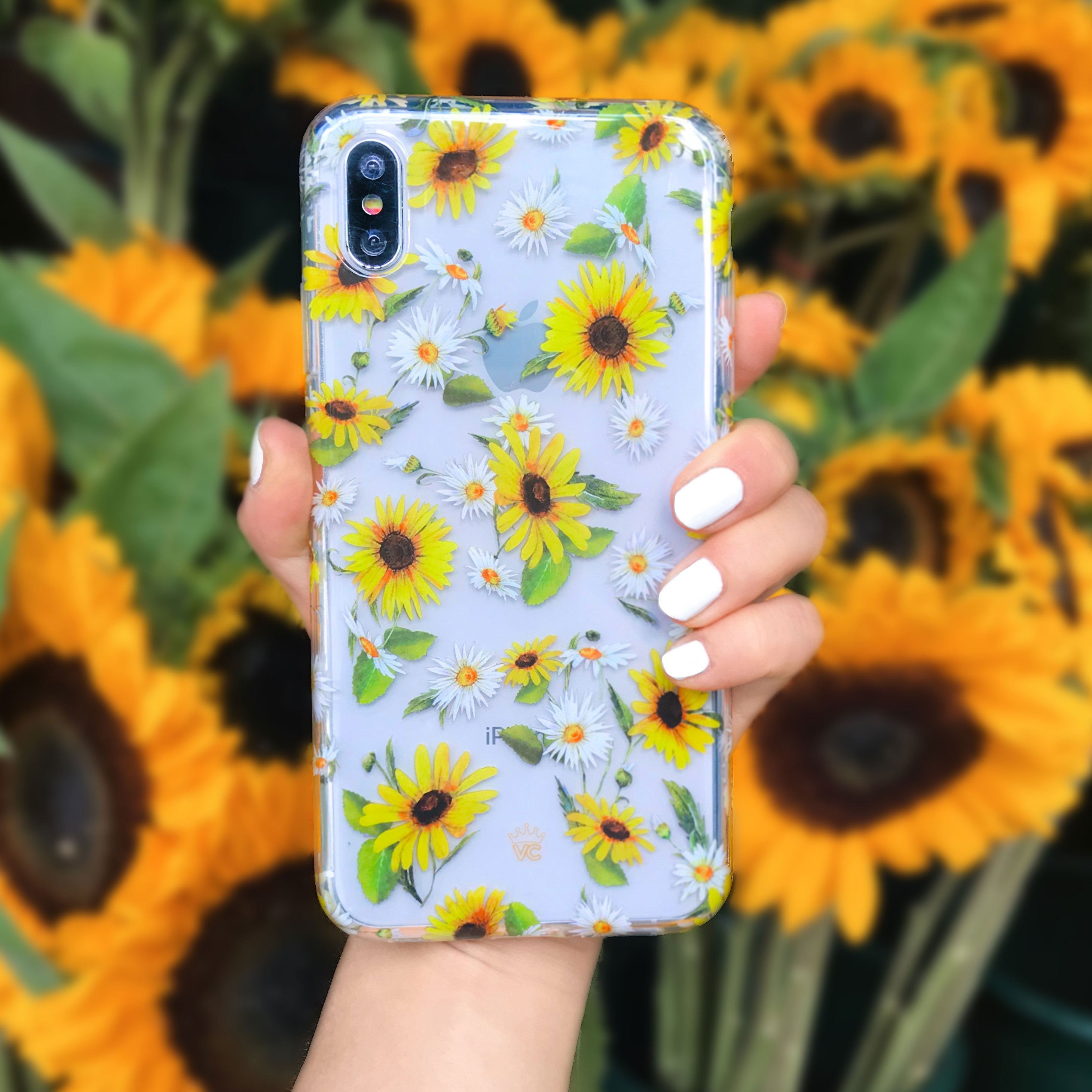 Smell the flowers with our Sunflower Daisy! This protective clear case has a gorgeous hand-drawn sunflower & daisy pattern with a matching clear front bumper for added protection against drops. Looks great on all phone colors!