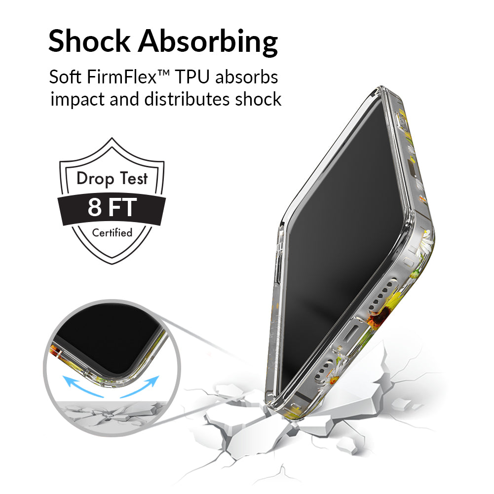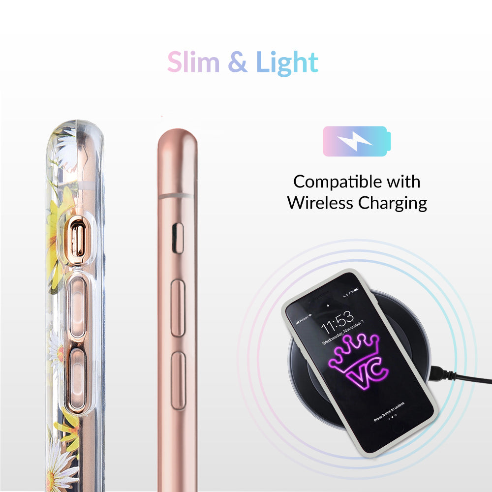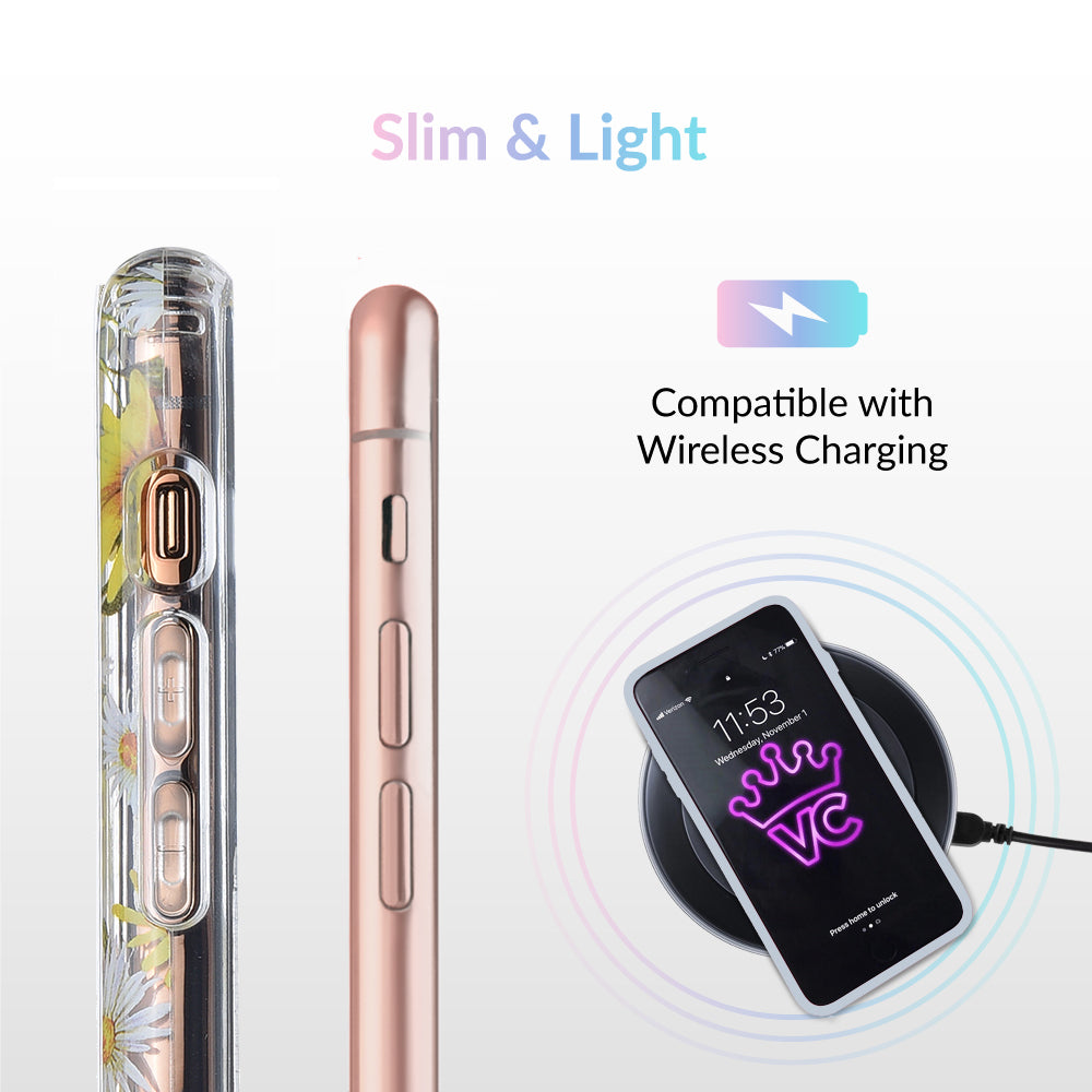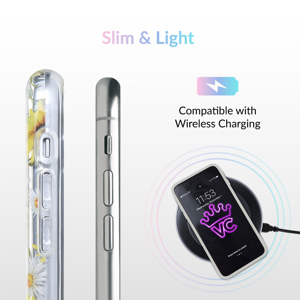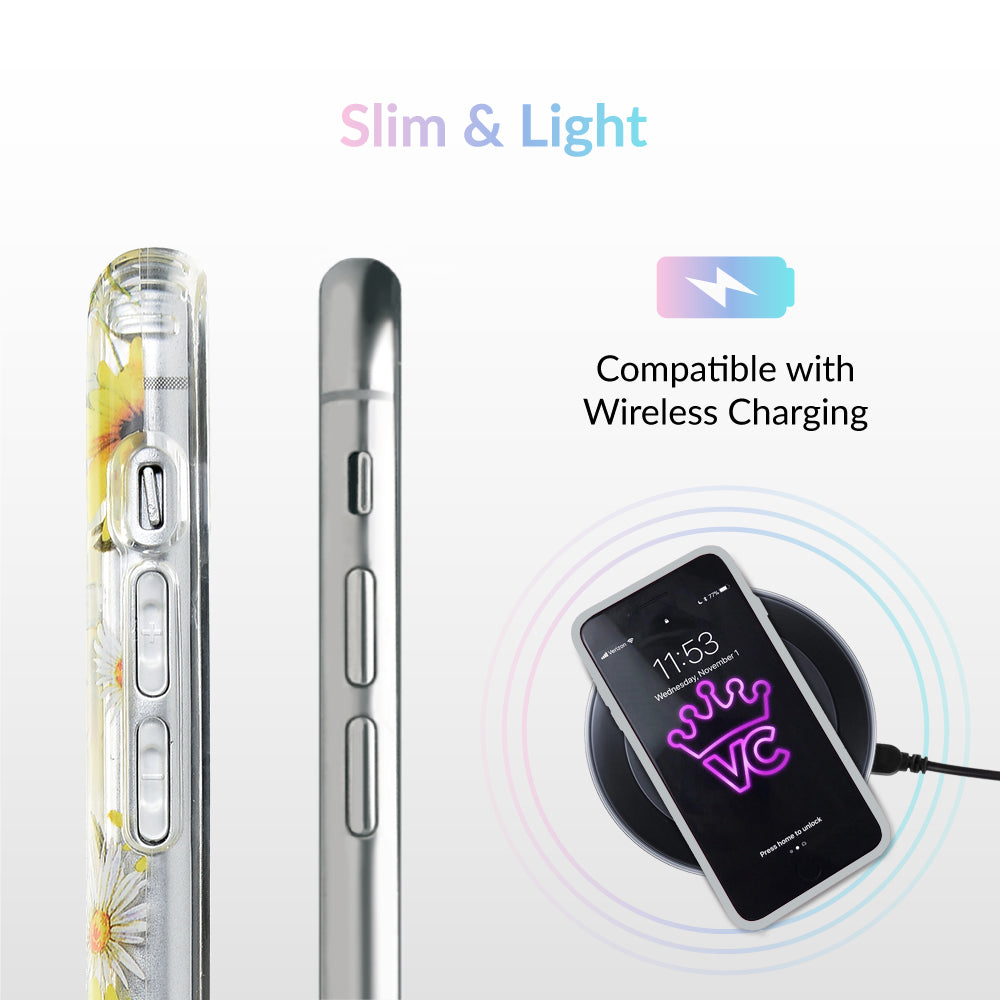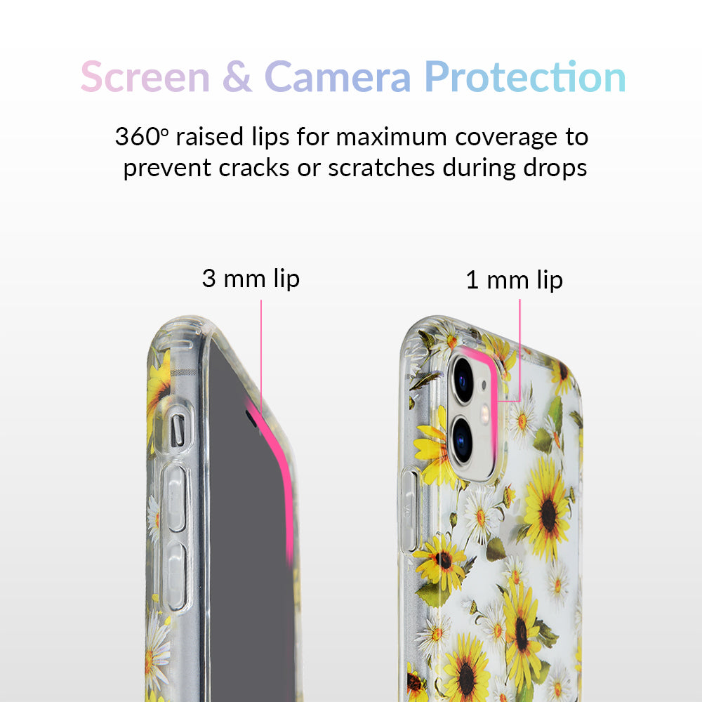 Smell the flowers with our Sunflower Daisy! This protective clear case has a gorgeous hand-drawn sunflower & daisy pattern with a matching clear front bumper for added protection against drops. Looks great on all phone colors!