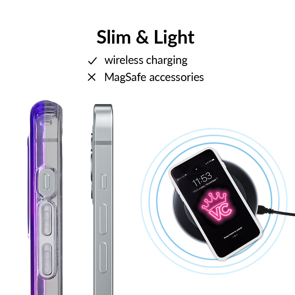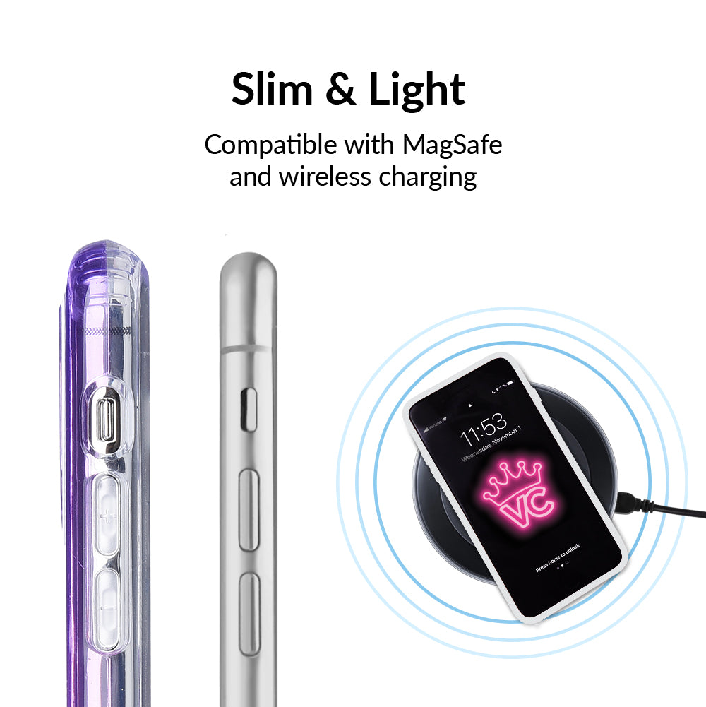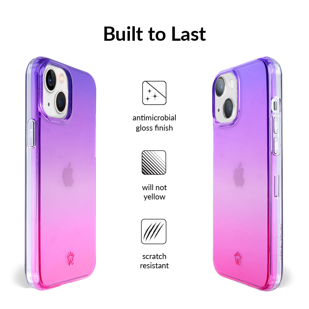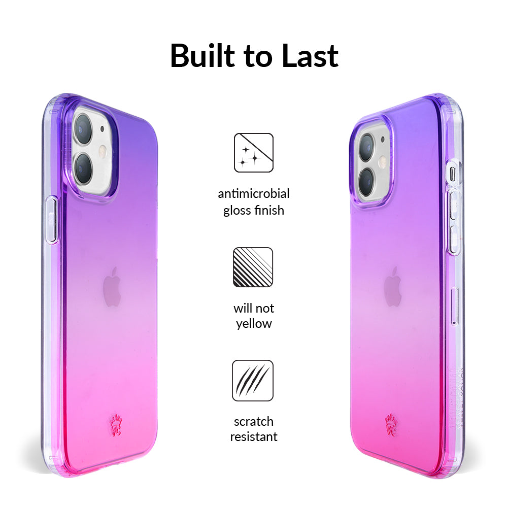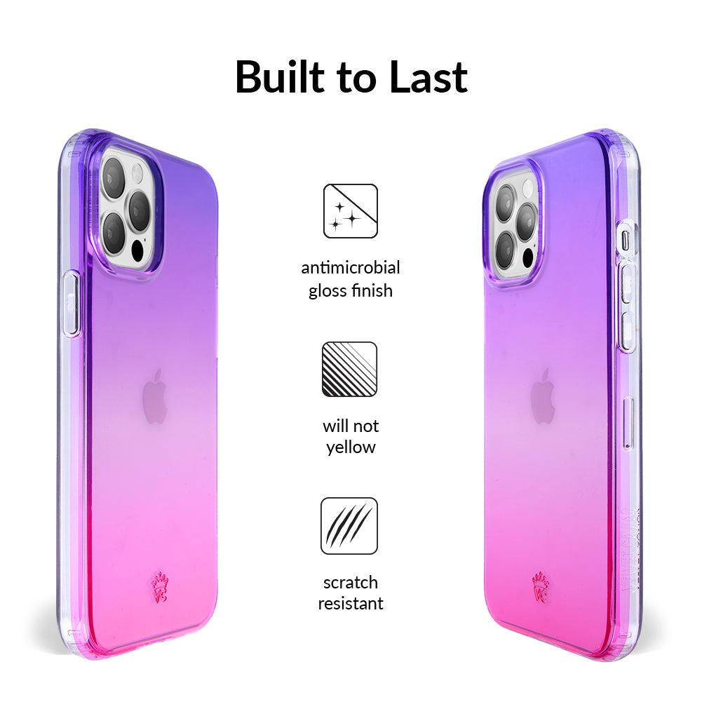 A case meant for the most magical ones out there! Featuring a stunning ombre of pink and purple this clear case is a sure fire way to bring attention. Completed with a clear bumper for added protection against drops. Also, matching grip ring available!