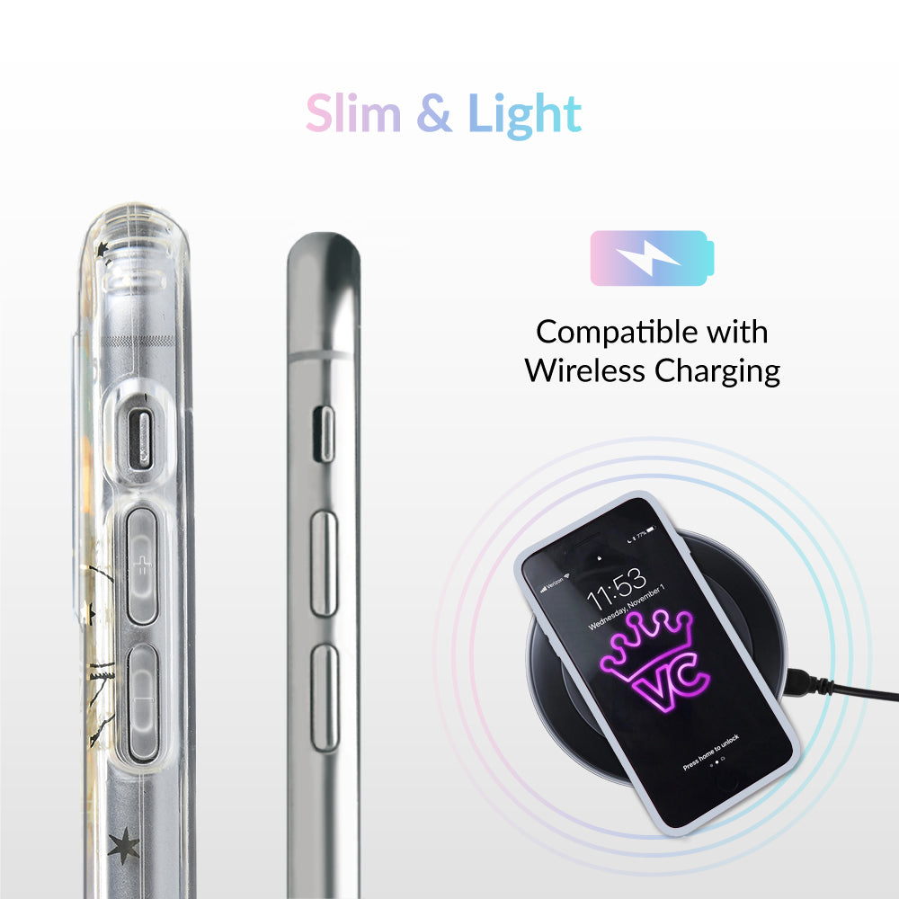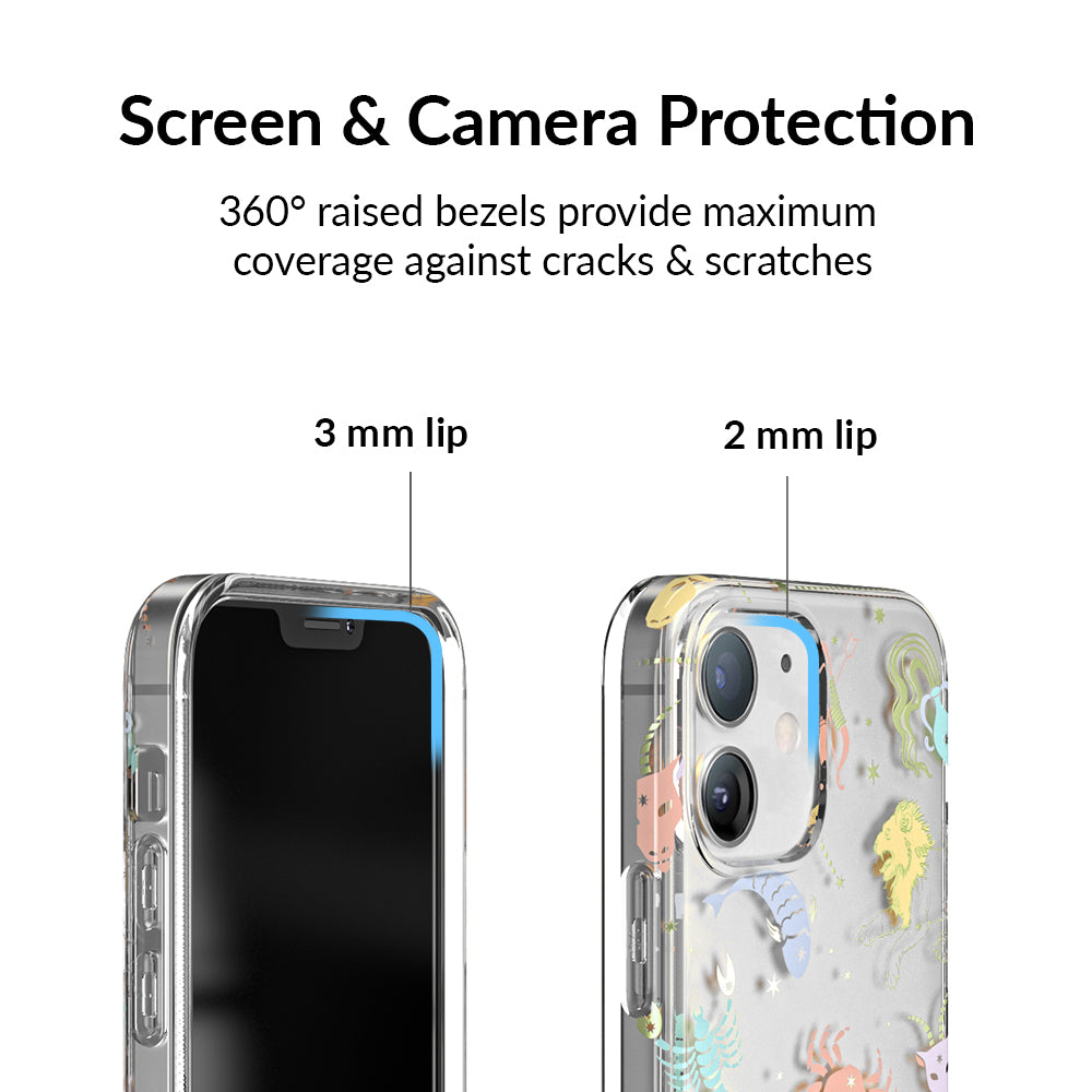 It's written in the stars - no matter your sign, this case has them all! Featuring a double-layered white gold chrome pattern outlining pastel zodiac signs with a matching clear bumper for added protection against drops. Plus, add the matching moon ring for the ultimate combo!