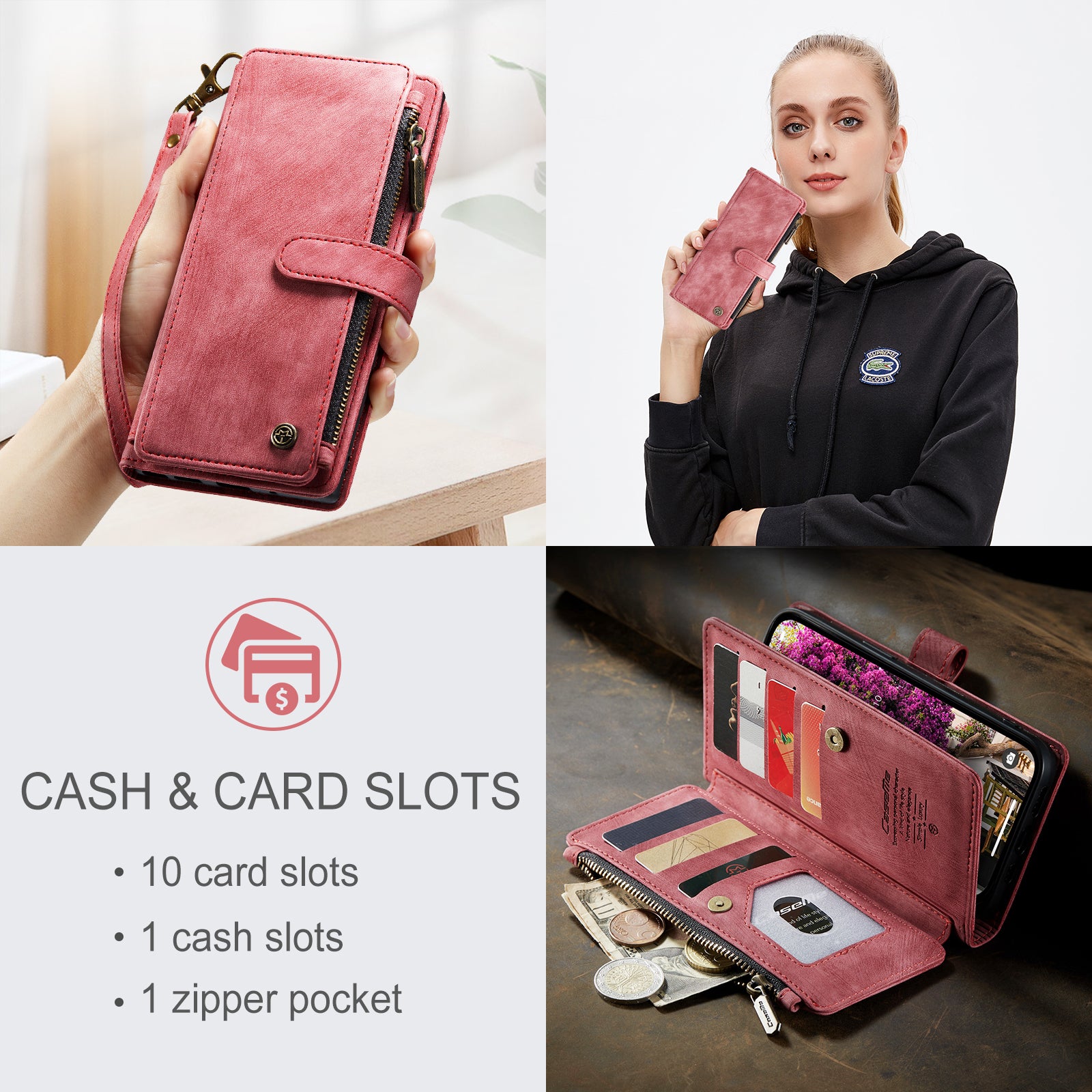 • CARD SLOTS AND VIEWING STAND:This wallet case includes 6 standard card slots + 1 ID card slot + 1 cash slot + 1 zipper wallet pocket (highly smooth zipper). You can carry your ID/ credit or debit cards/driver's license/ some cash and small notes without taking your bulky wallet. The hands-free viewing stand design allows your phone to stand independently and is perfect for video-chatting and movie-watching