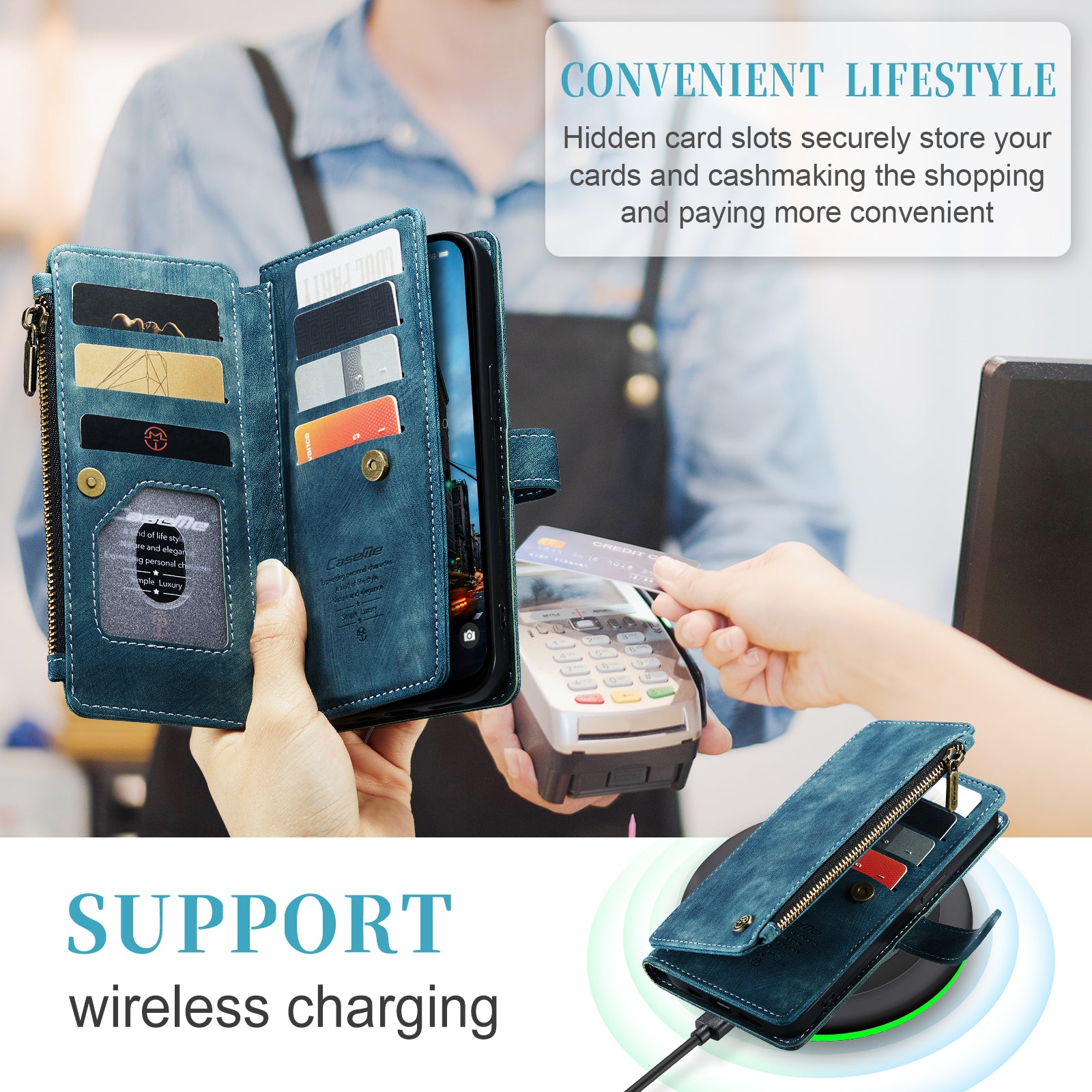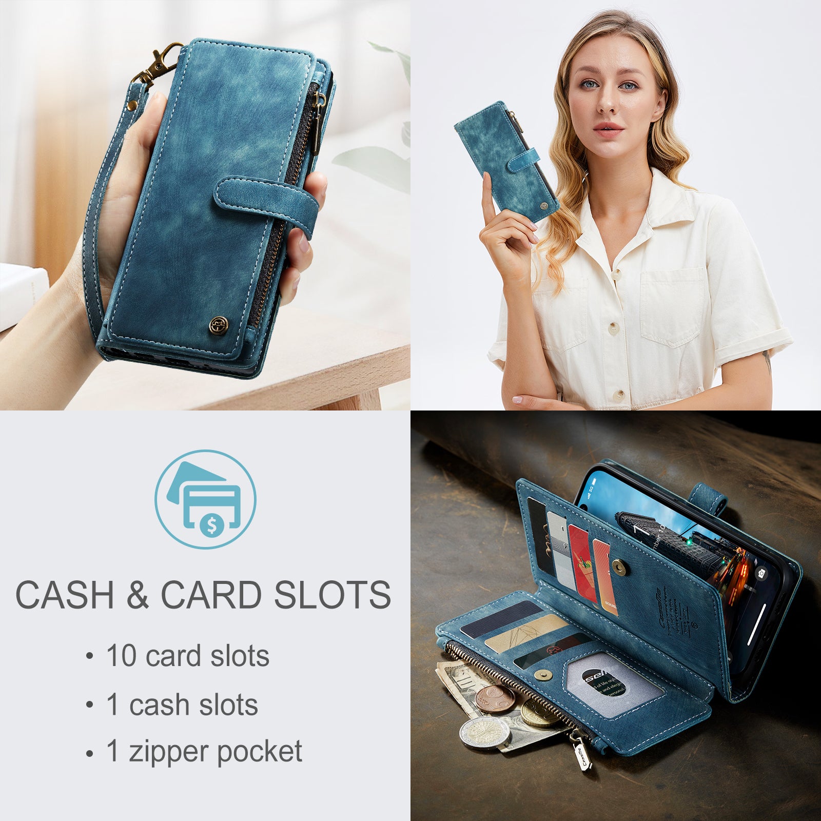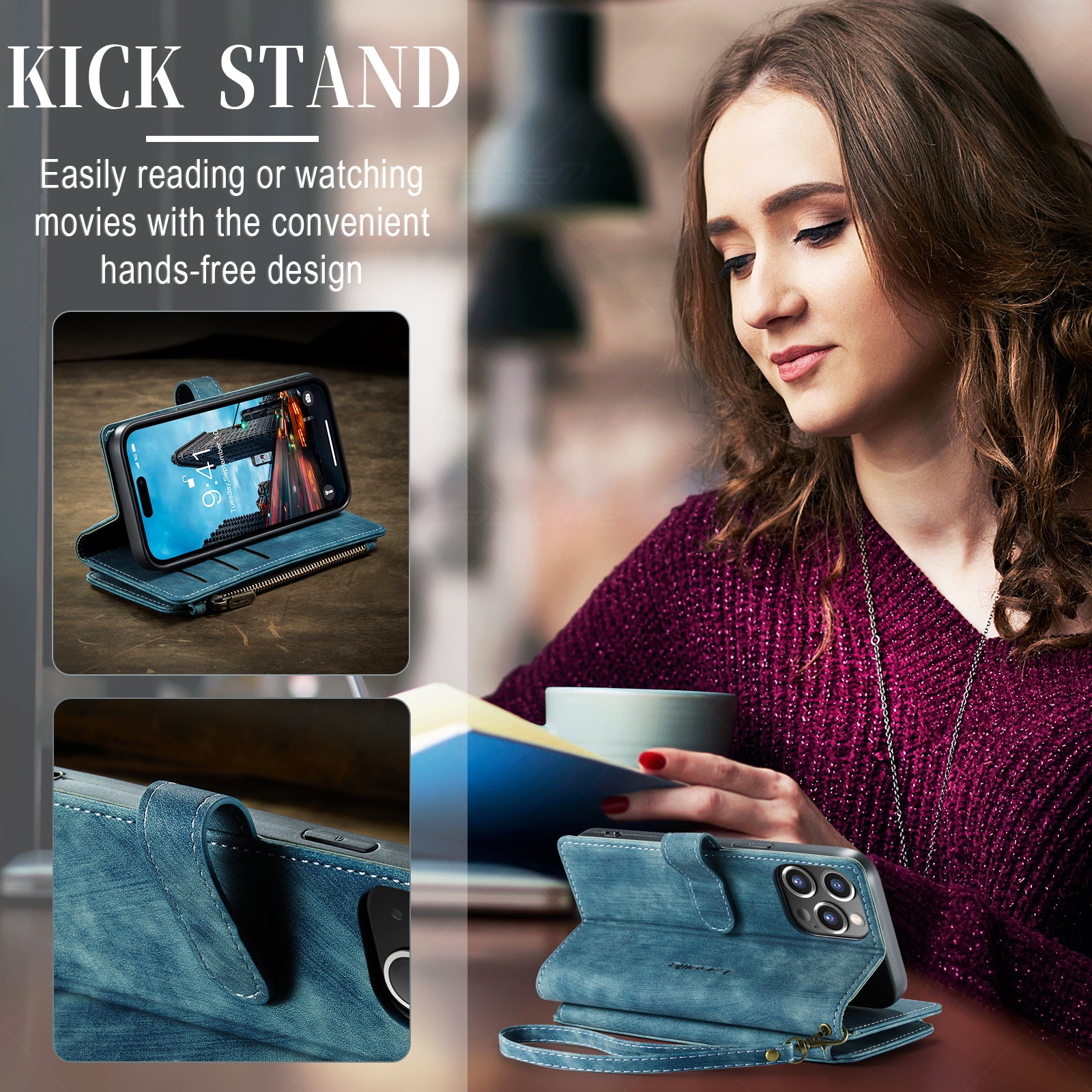 - CARD SLOTS AND VIEWING STAND:This wallet case includes 6 standard card slots + 1 ID card slot + 1 cash slot + 1 zipper wallet pocket (highly smooth zipper). You can carry your ID/ credit or debit cards/driver's license/ some cash and small notes without taking your bulky wallet. The hands-free viewing stand design allows your phone to stand independently and is perfect for video-chatting and movie-watching