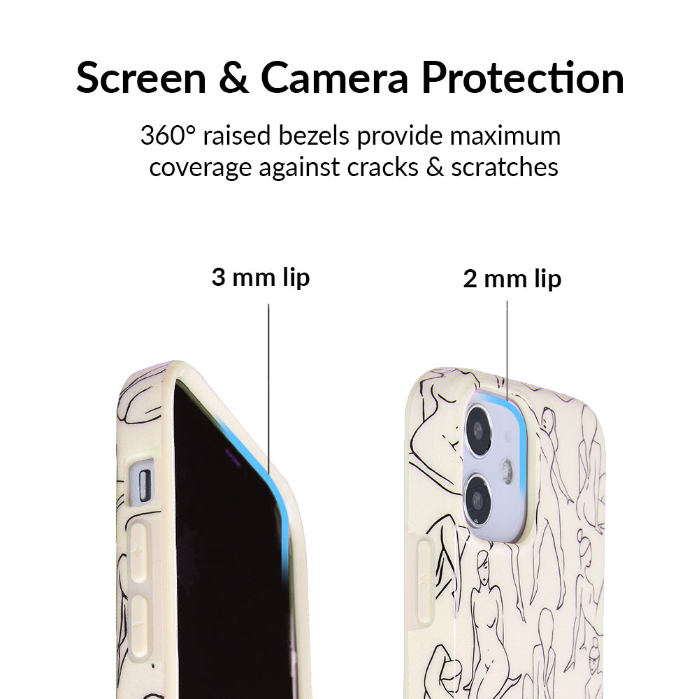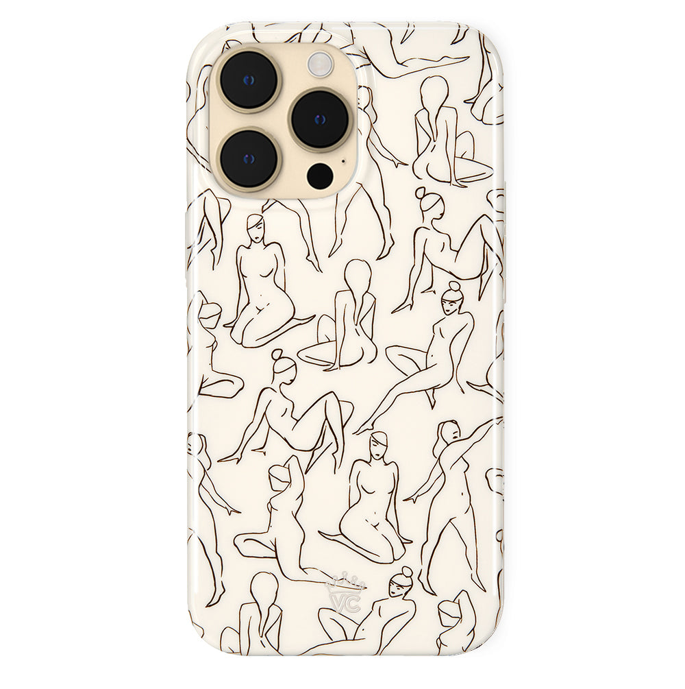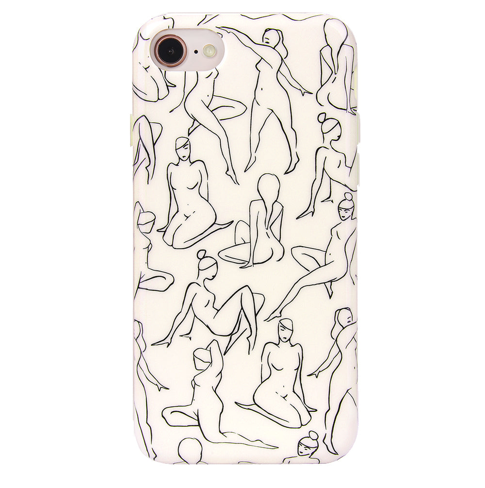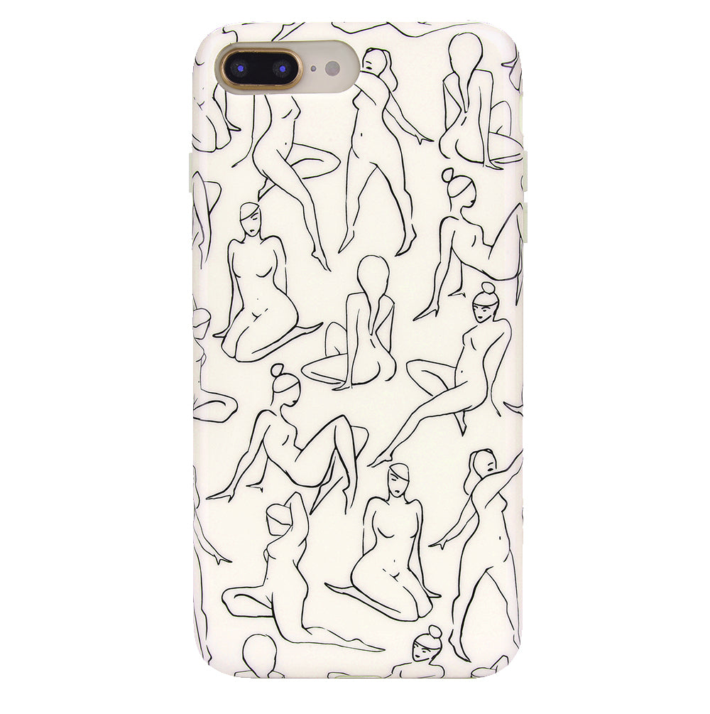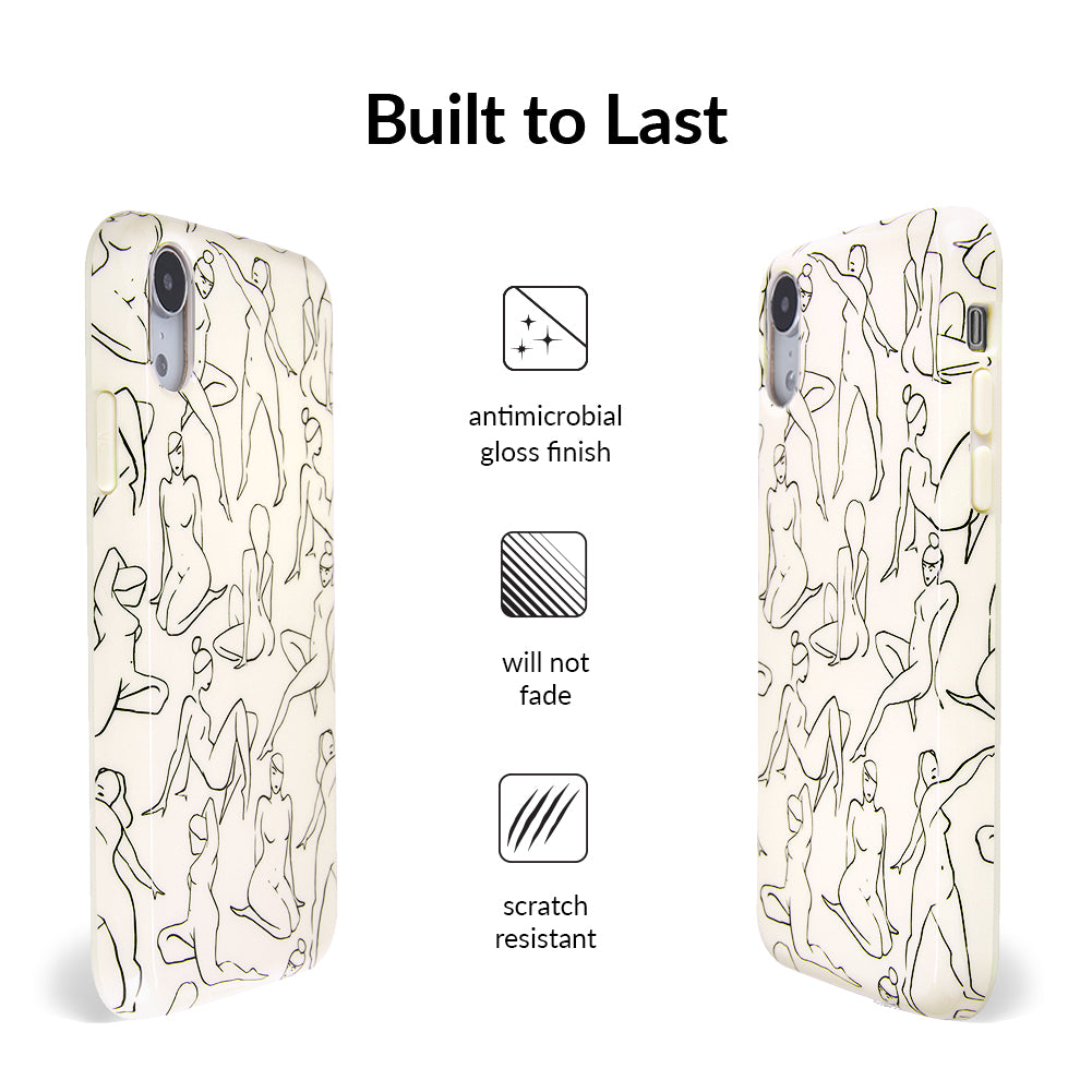 Project positivity! This protective case features a cream base with stunning line drawings of the female figure. It also has a matching bumper for added protection against drops!