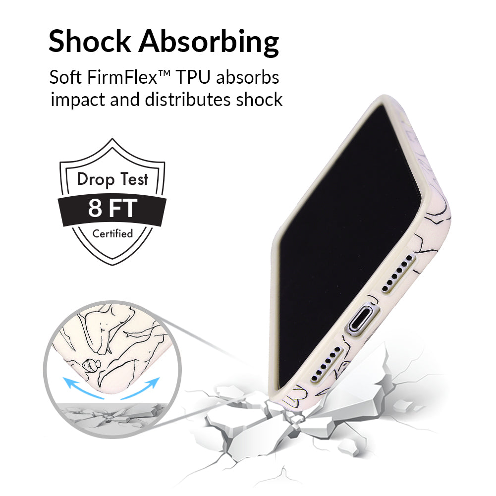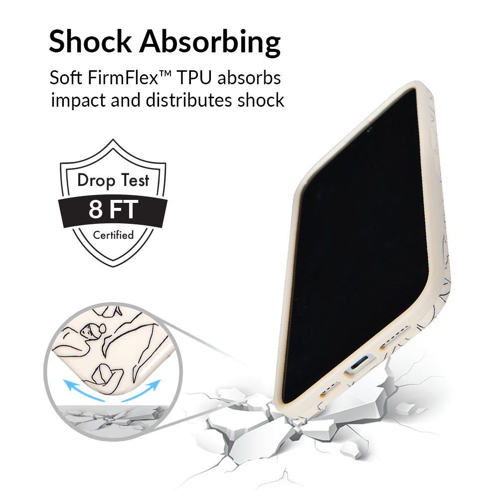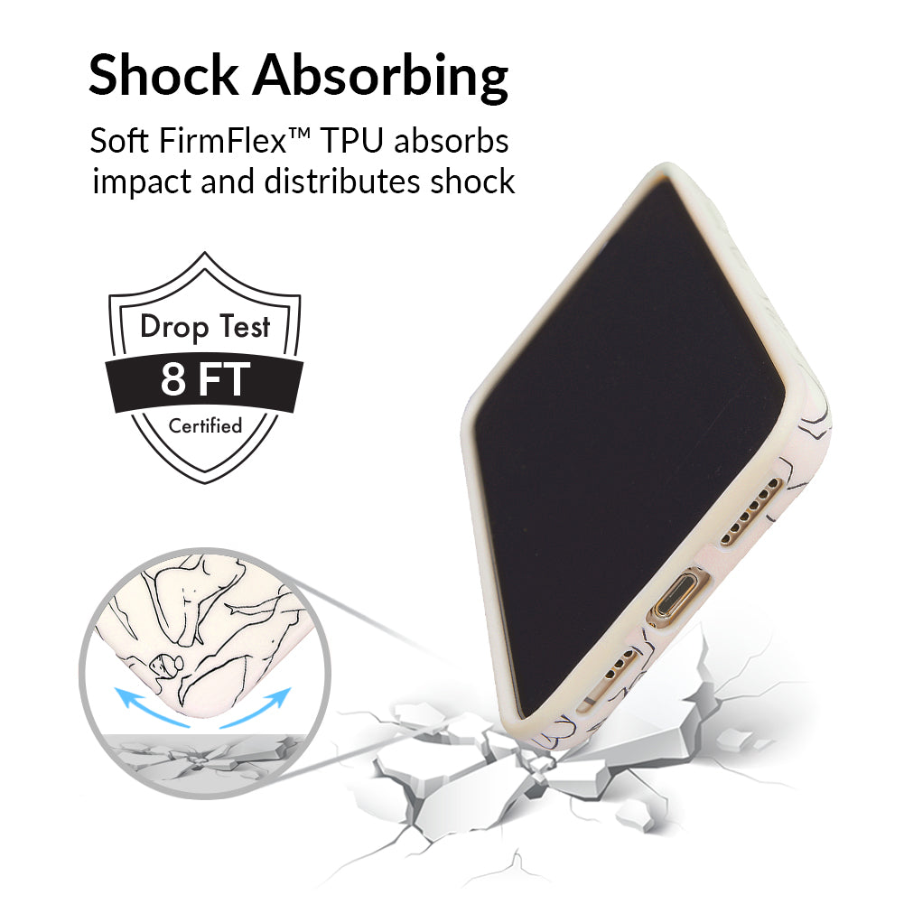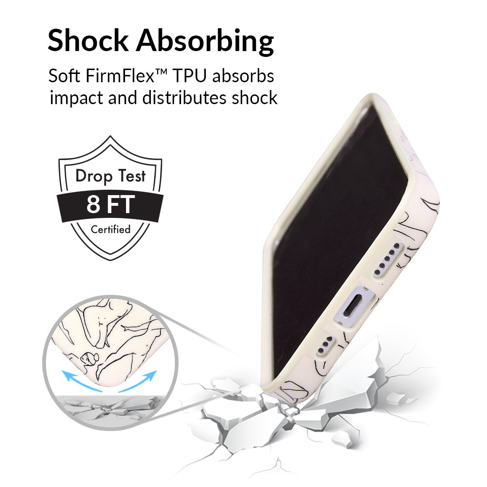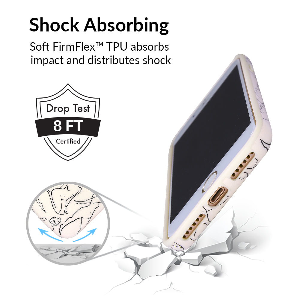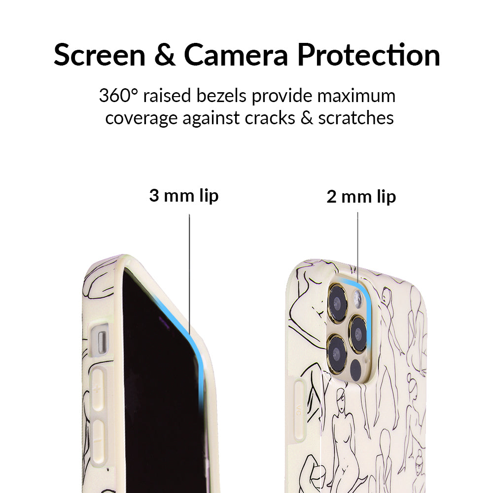 Project positivity! This protective case features a cream base with stunning line drawings of the female figure. It also has a matching bumper for added protection against drops!