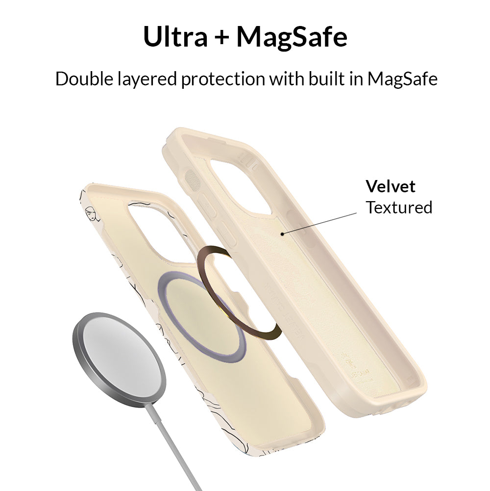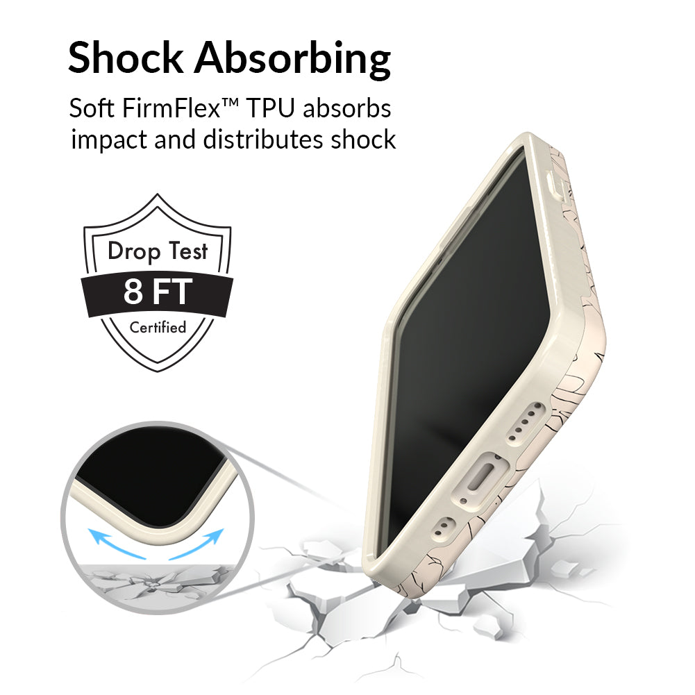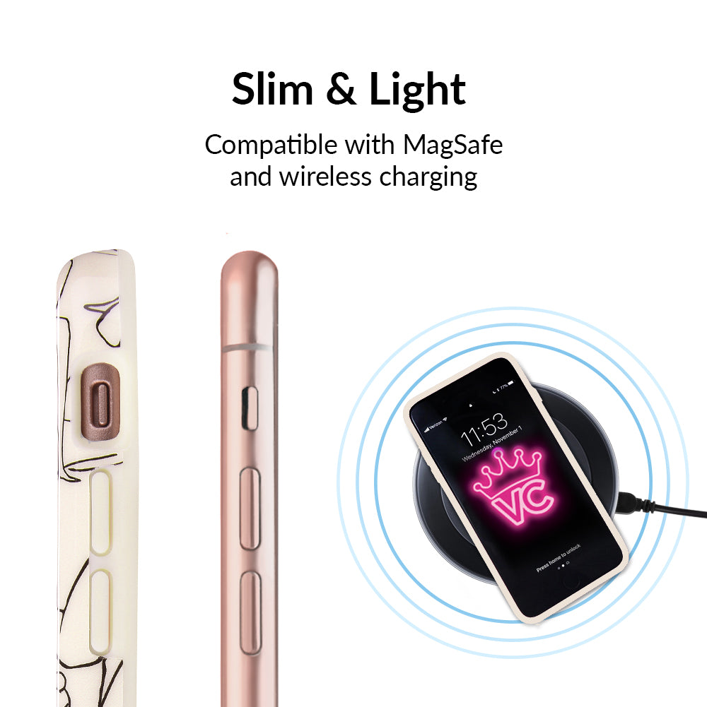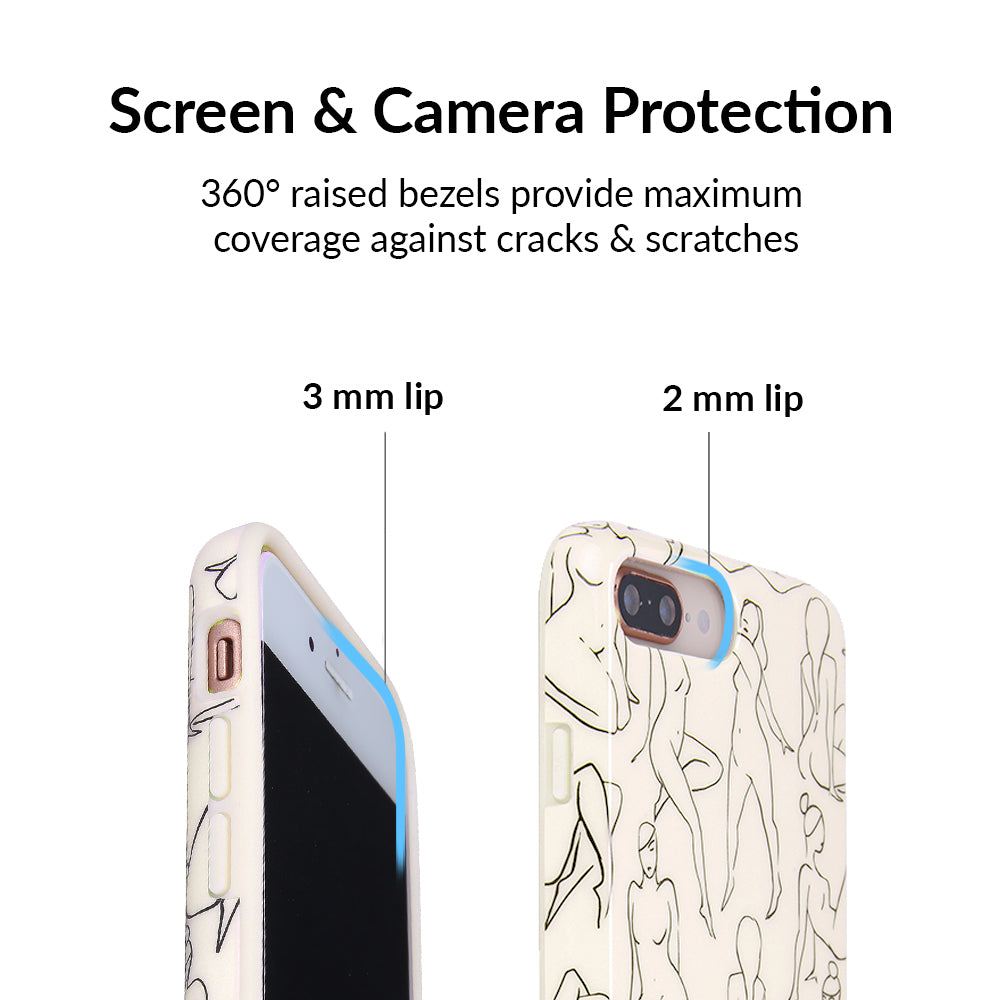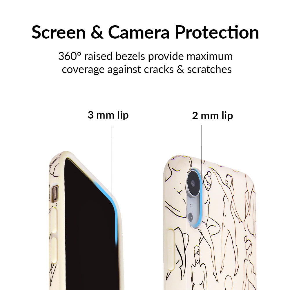 Project positivity! This protective case features a cream base with stunning line drawings of the female figure. It also has a matching bumper for added protection against drops!