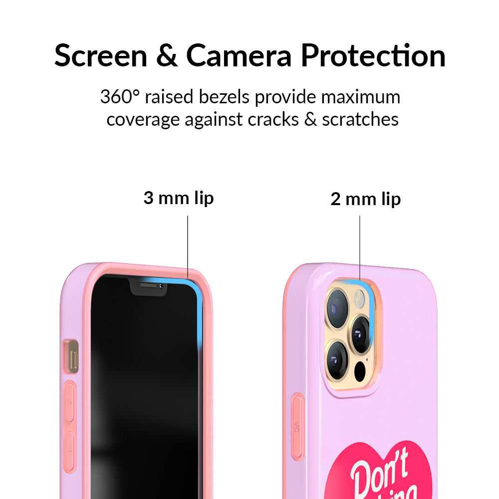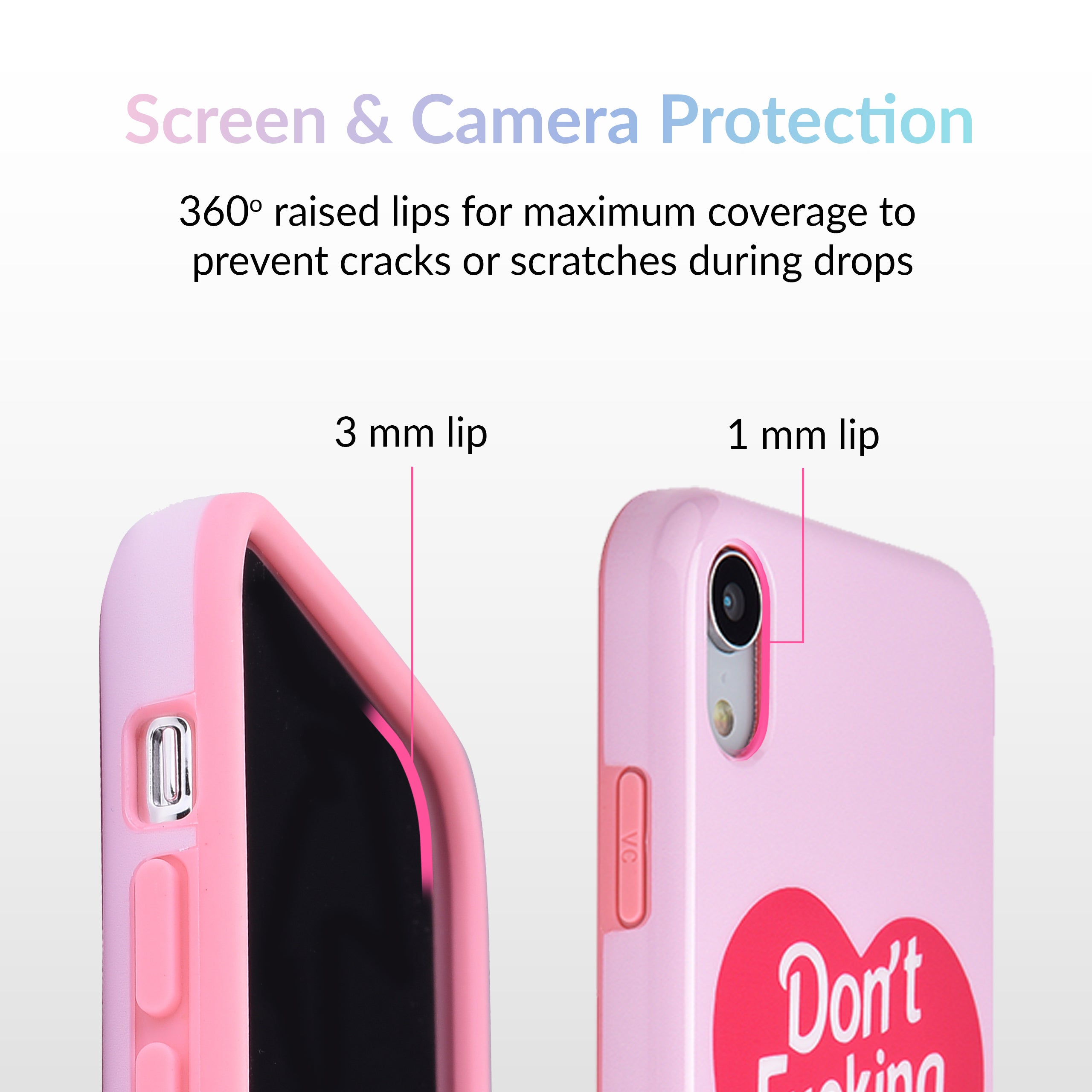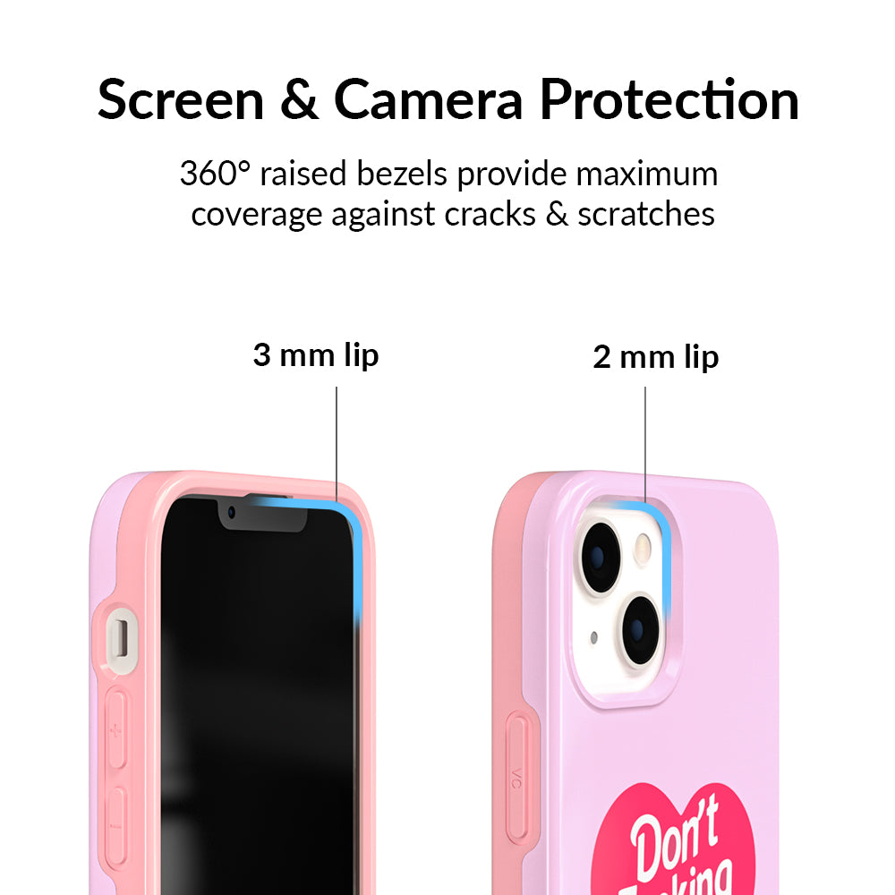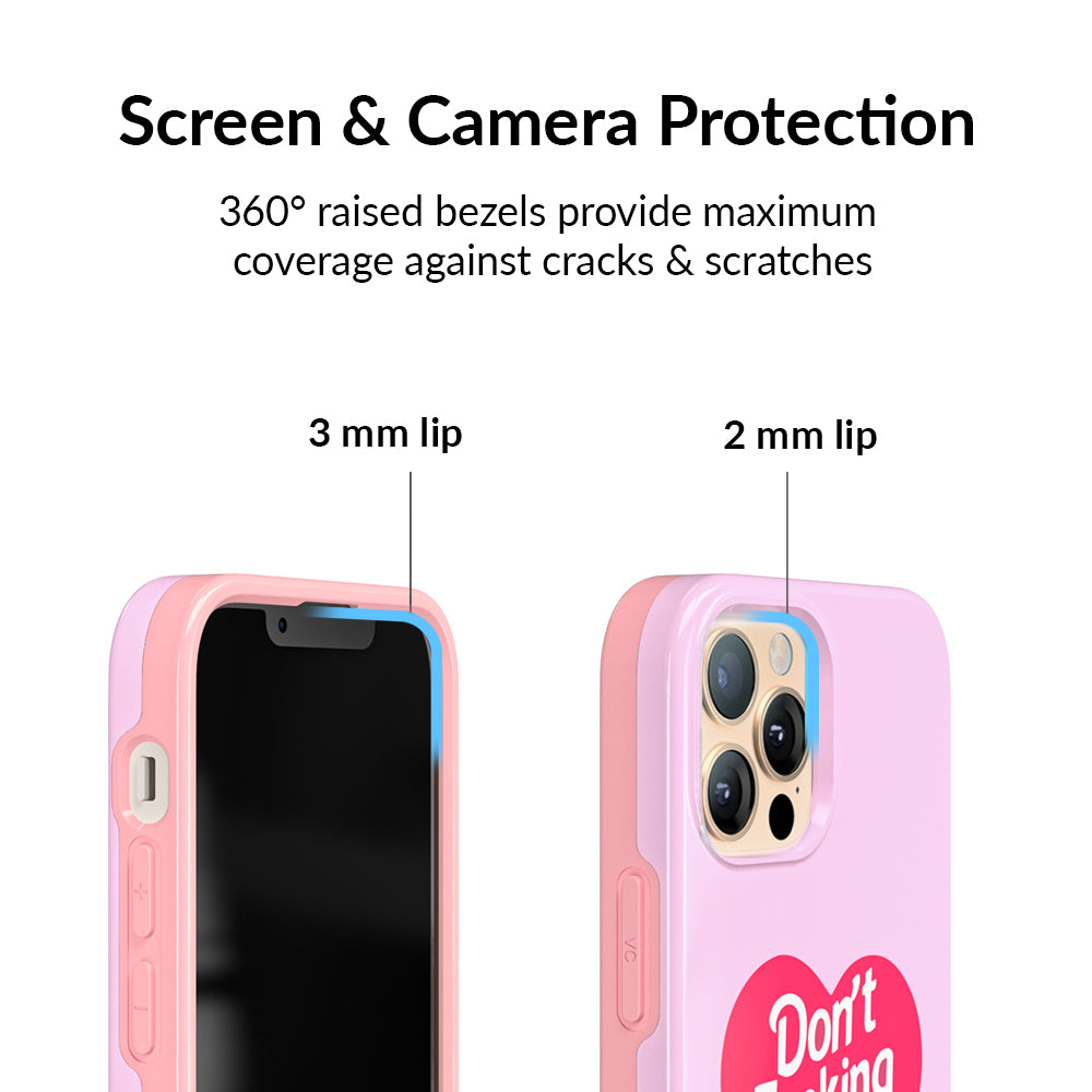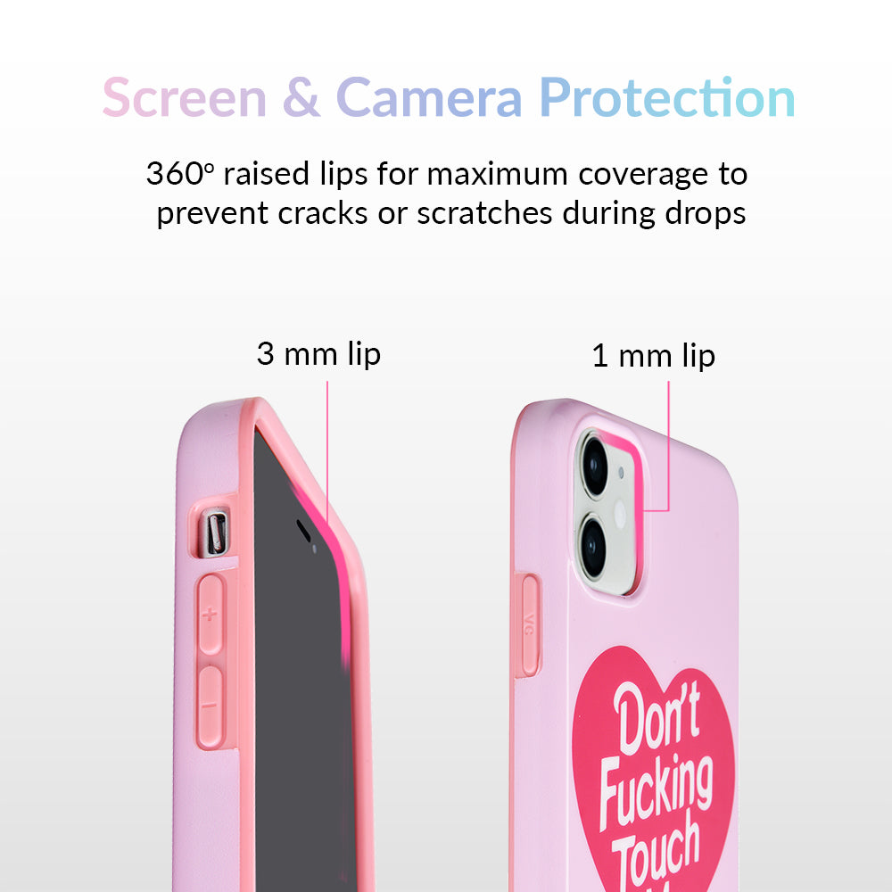 For every time your mood was "Don't Fucking Touch Me." This sassy but protective case features a pink background with a hot pink heart and white text. It comes in a gloss finish with matching pink bumper to protect against drops!