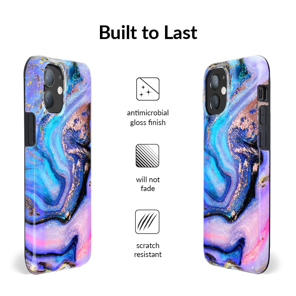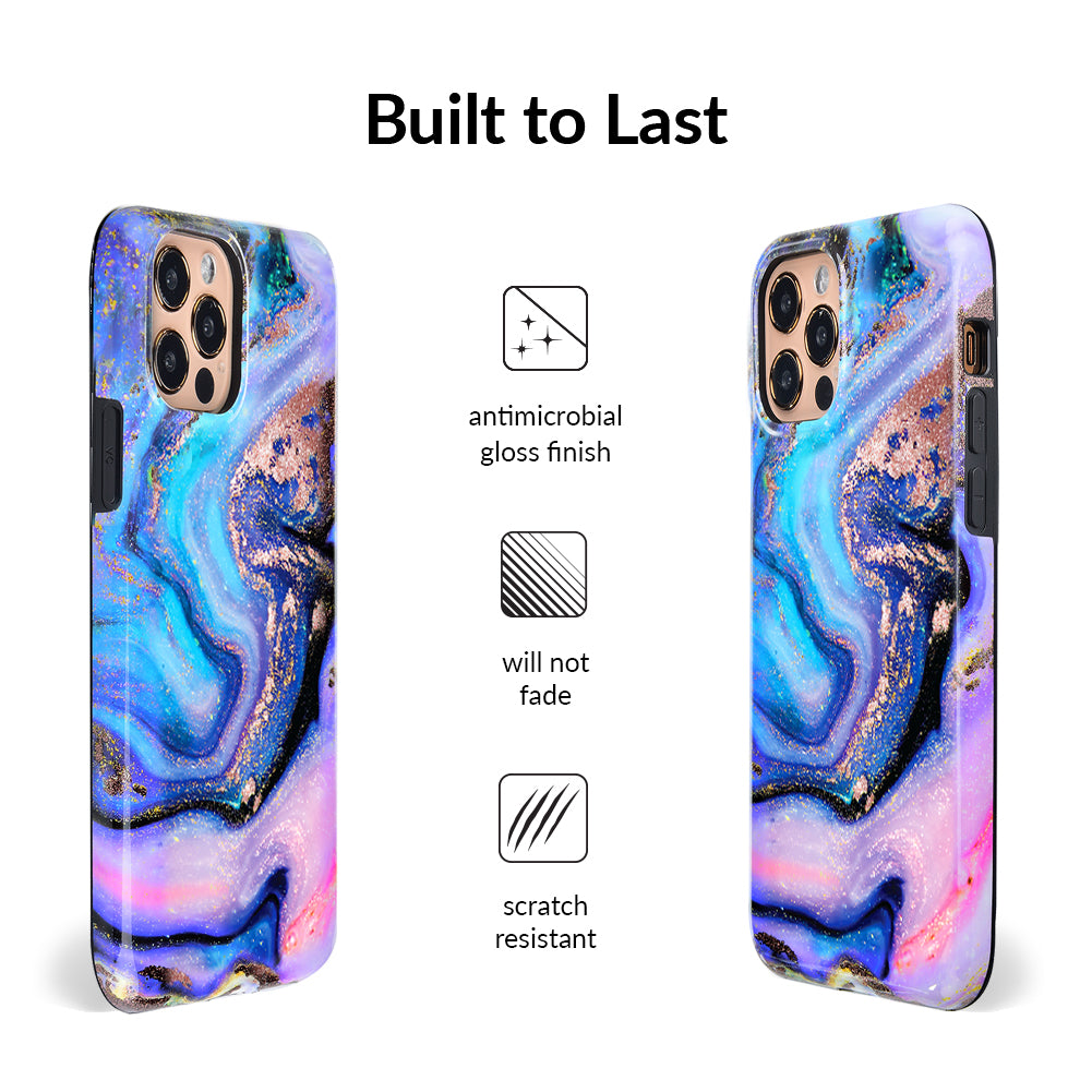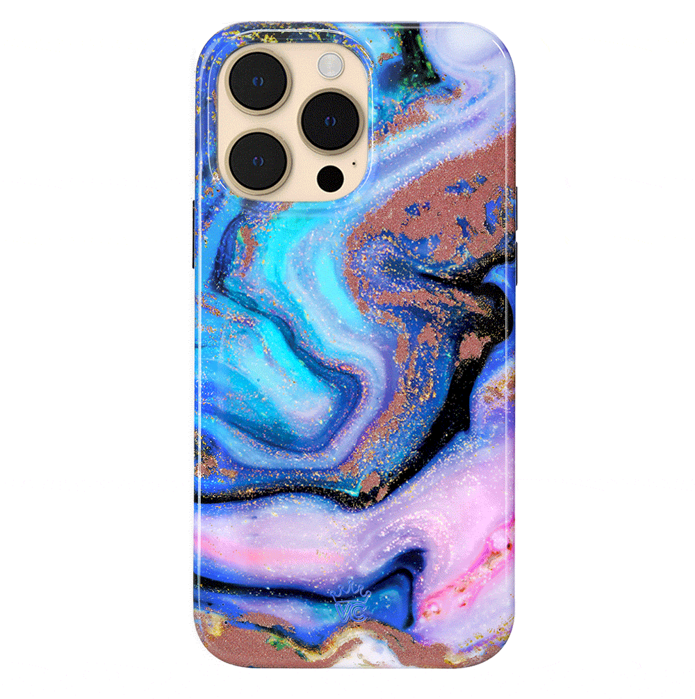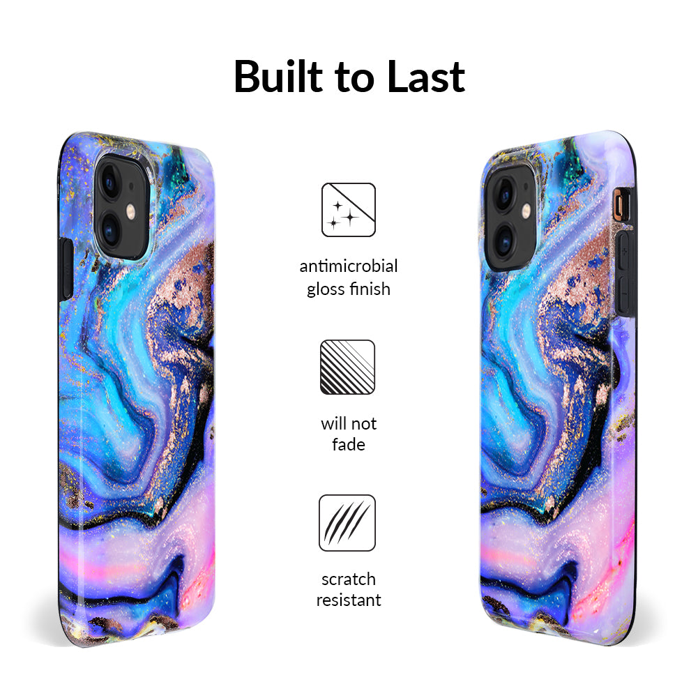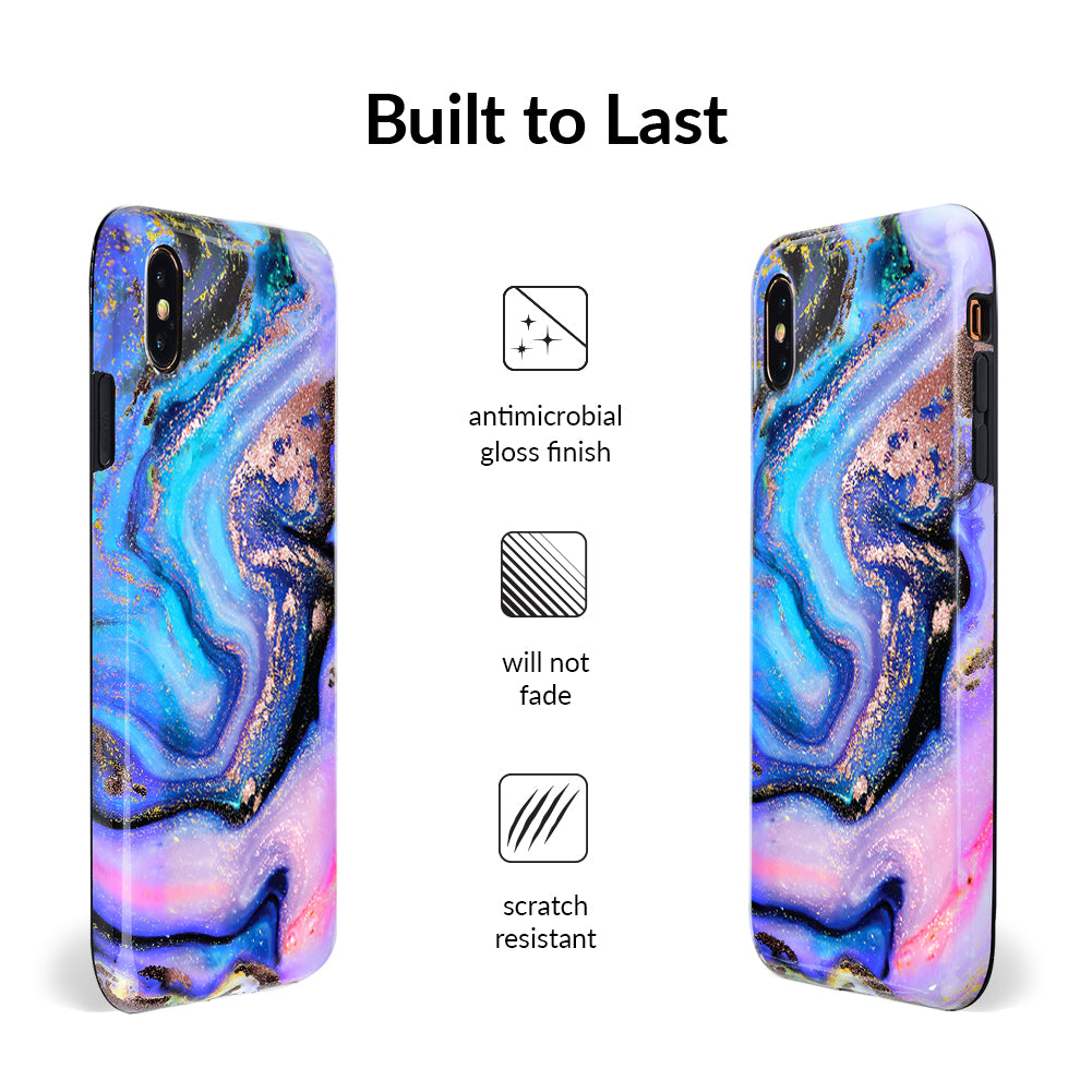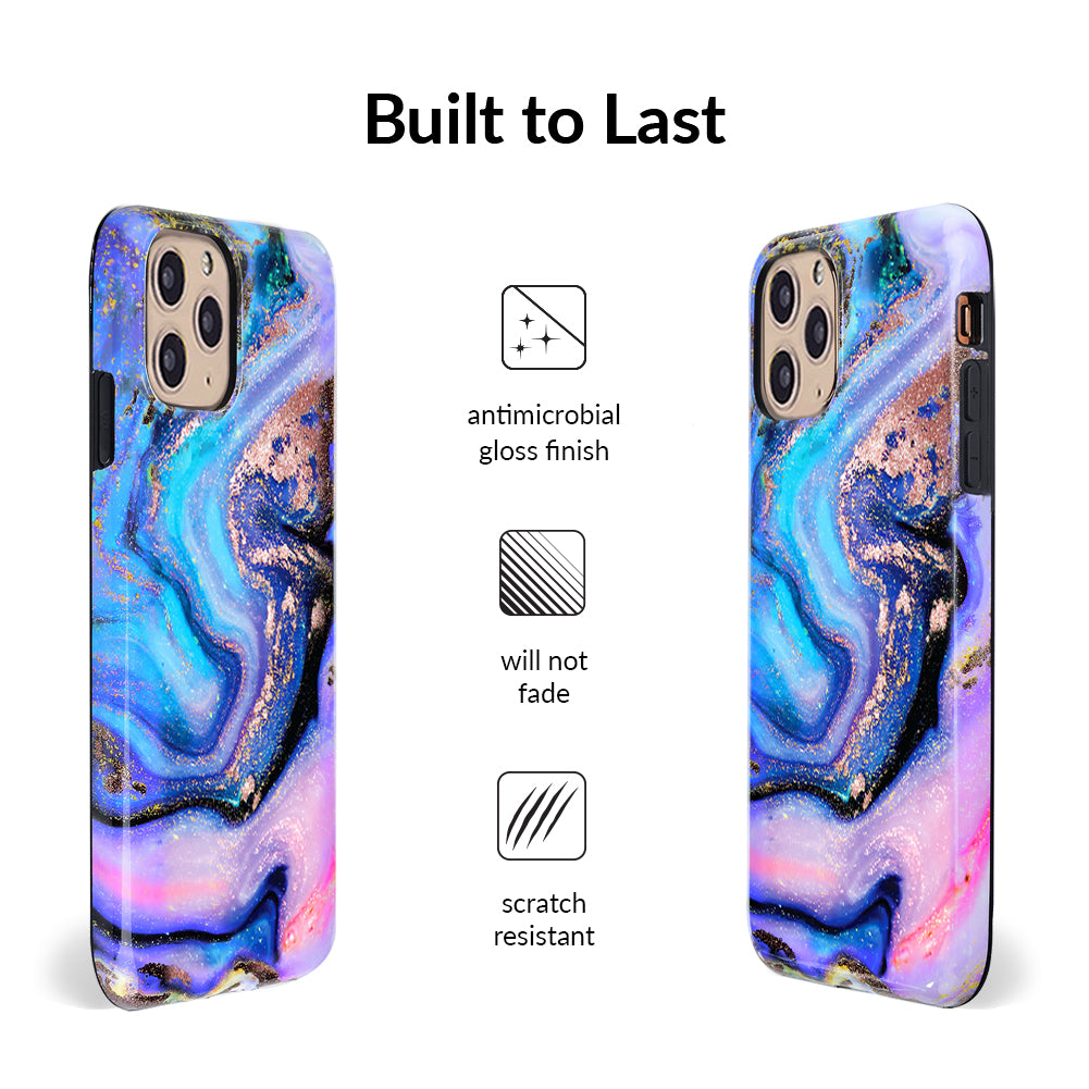 A case that's out of this world! Featuring a whole galaxy of colors, from blue to pink, with gold glitter filled cracks. As always, paired with a matching front bumper for added protection against drops!