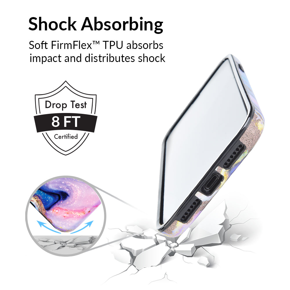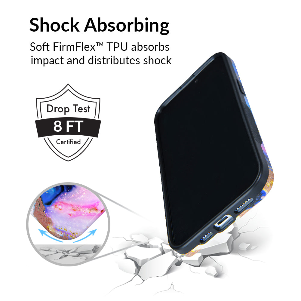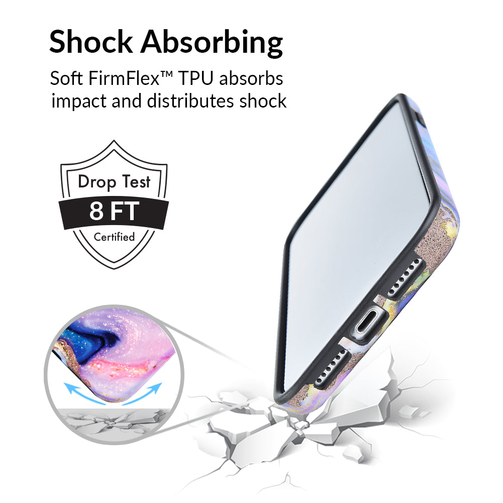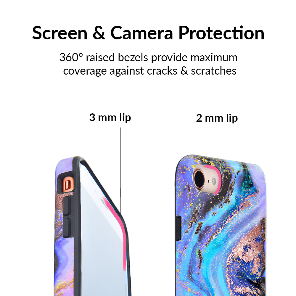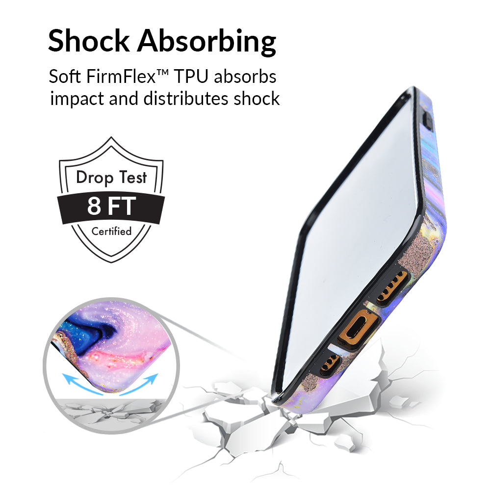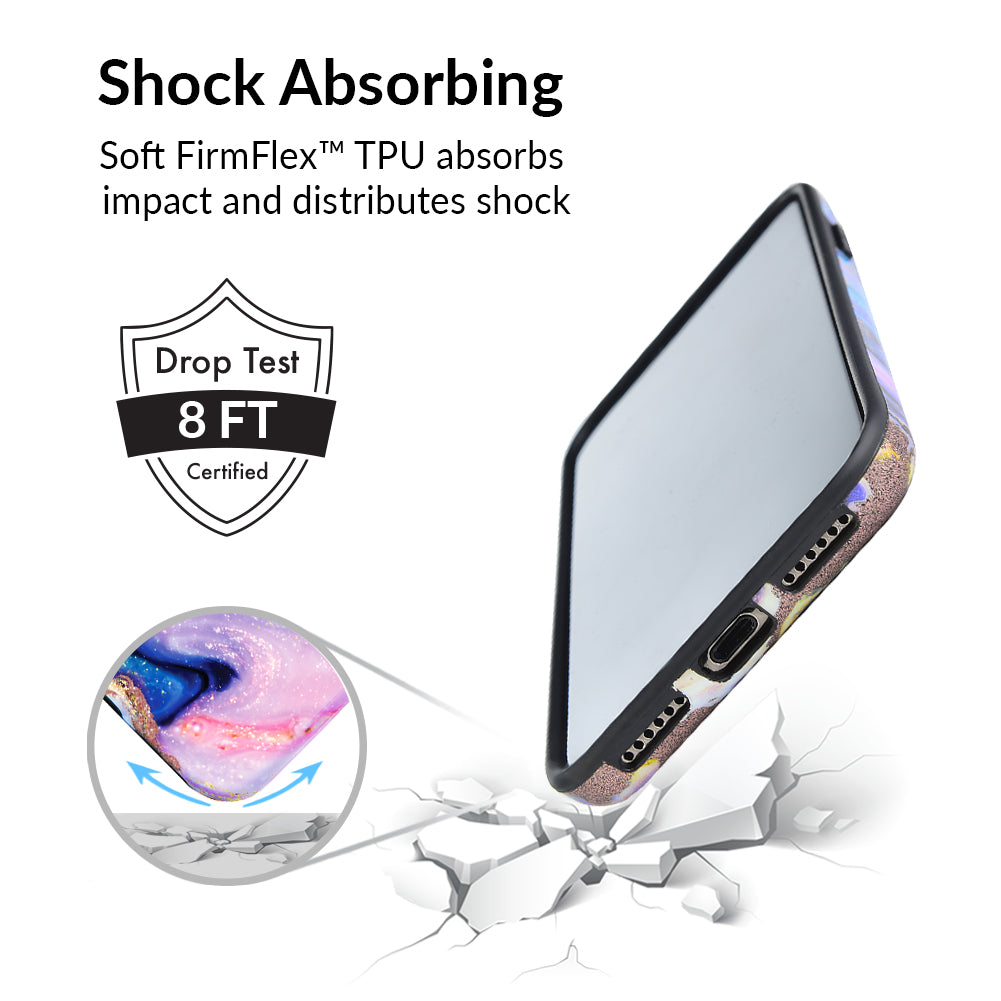 A case that's out of this world! Featuring a whole galaxy of colors, from blue to pink, with gold glitter filled cracks. As always, paired with a matching front bumper for added protection against drops!