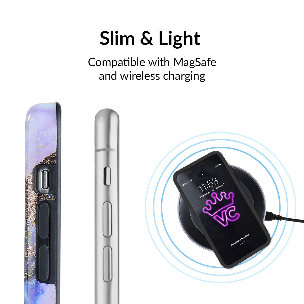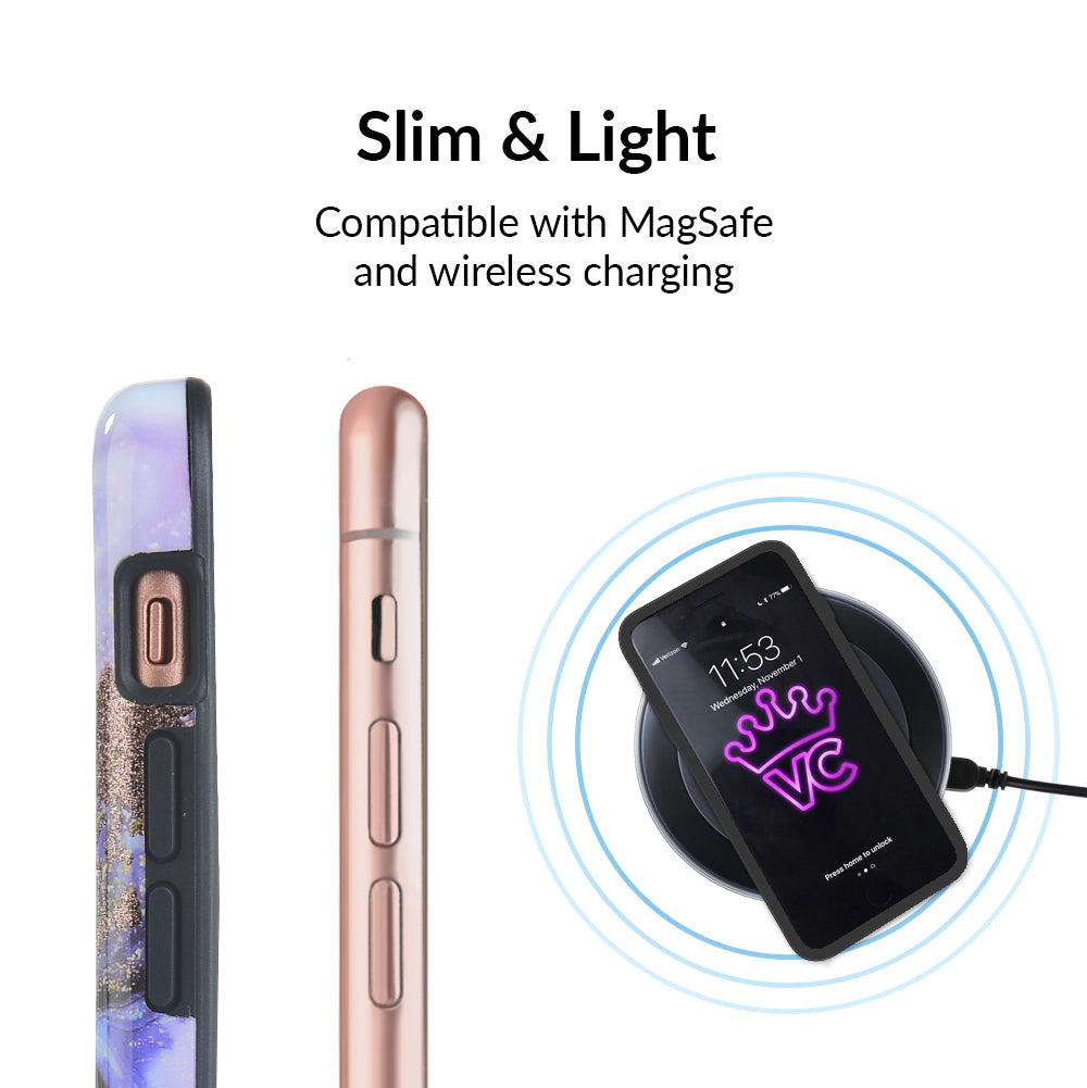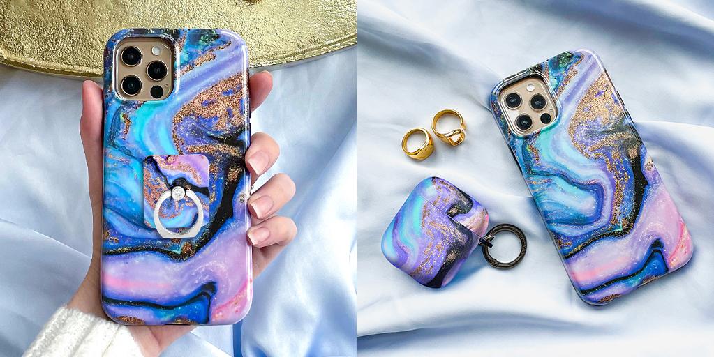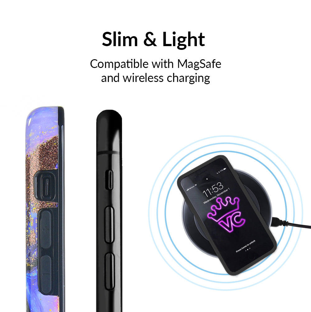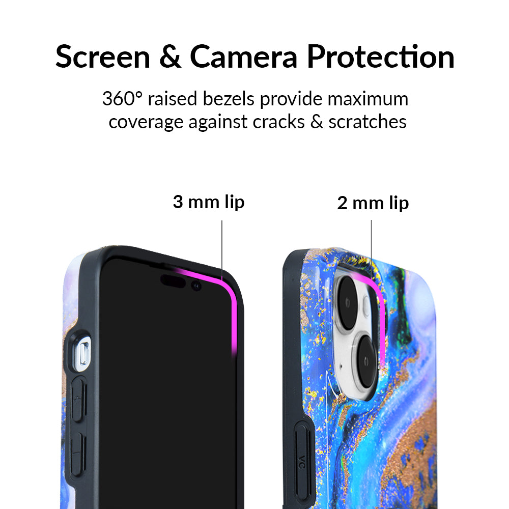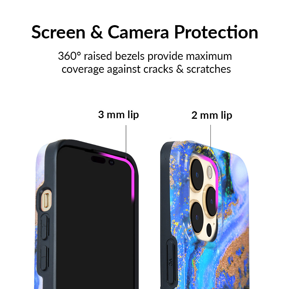 A case that's out of this world! Featuring a whole galaxy of colors, from blue to pink, with gold glitter filled cracks. As always, paired with a matching front bumper for added protection against drops!