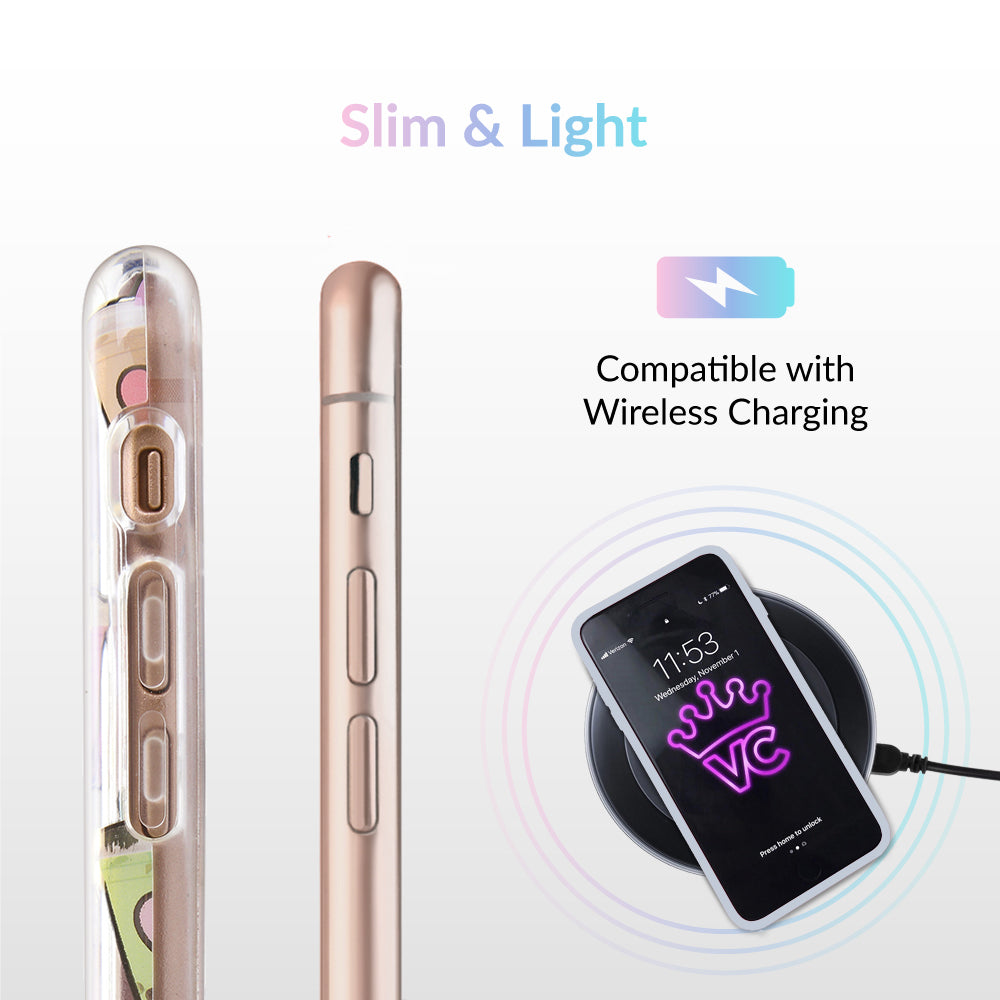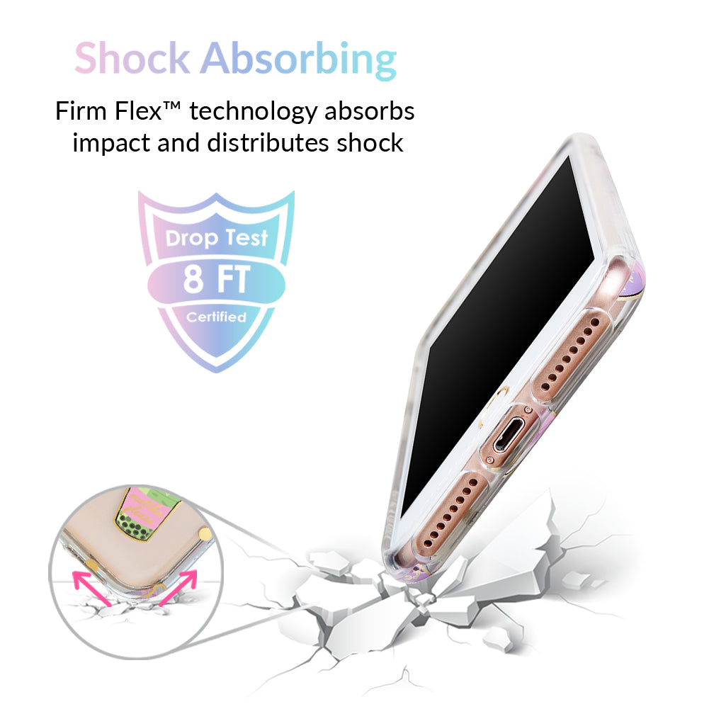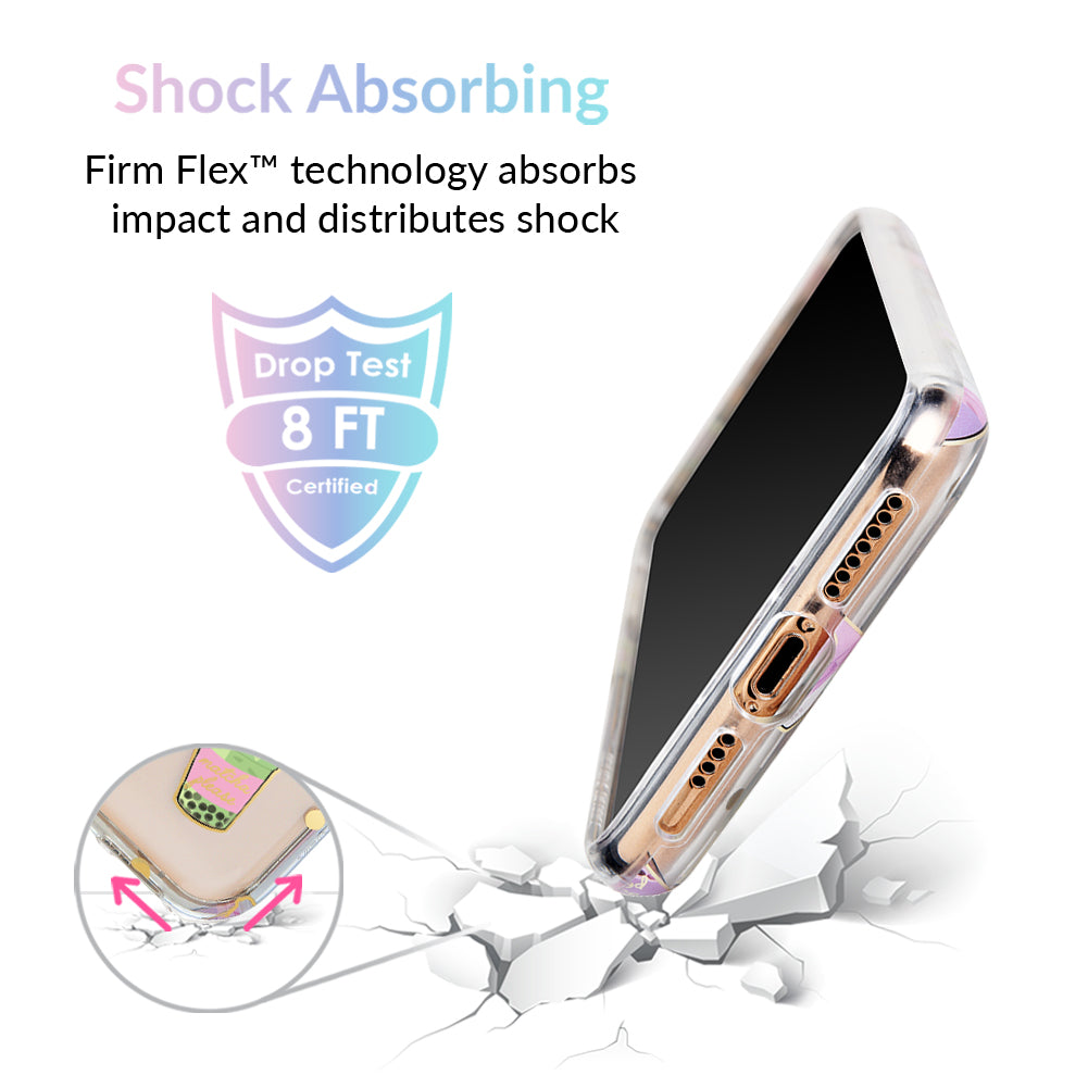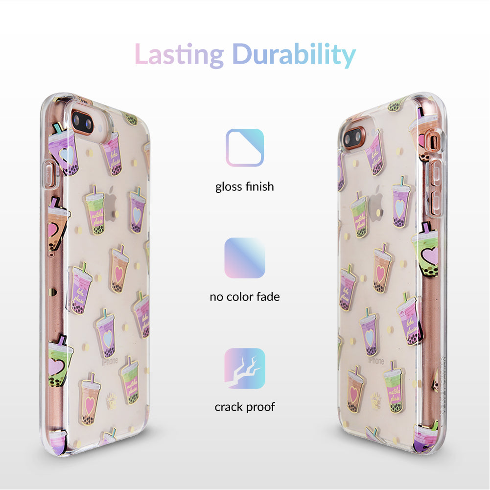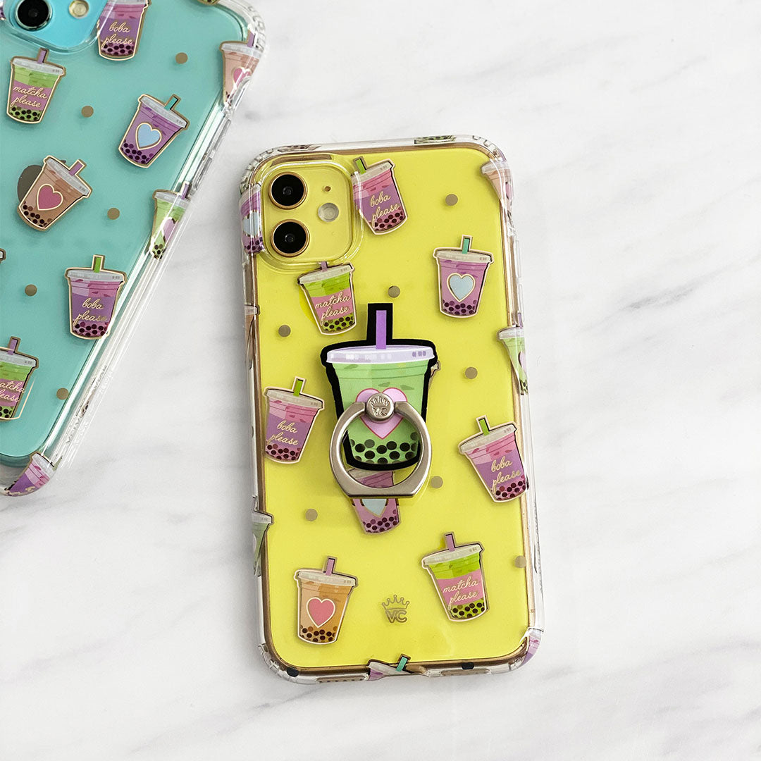 Nothing can bring you down when you’ve got cups of iced Matcha! This protective, clear case has a super cute Matcha pattern featuring iced Matcha, to-go cups, and boba pearls! It comes in a gloss finish, gold chrome outlines, and a matching clear bumper for added protection against drops.