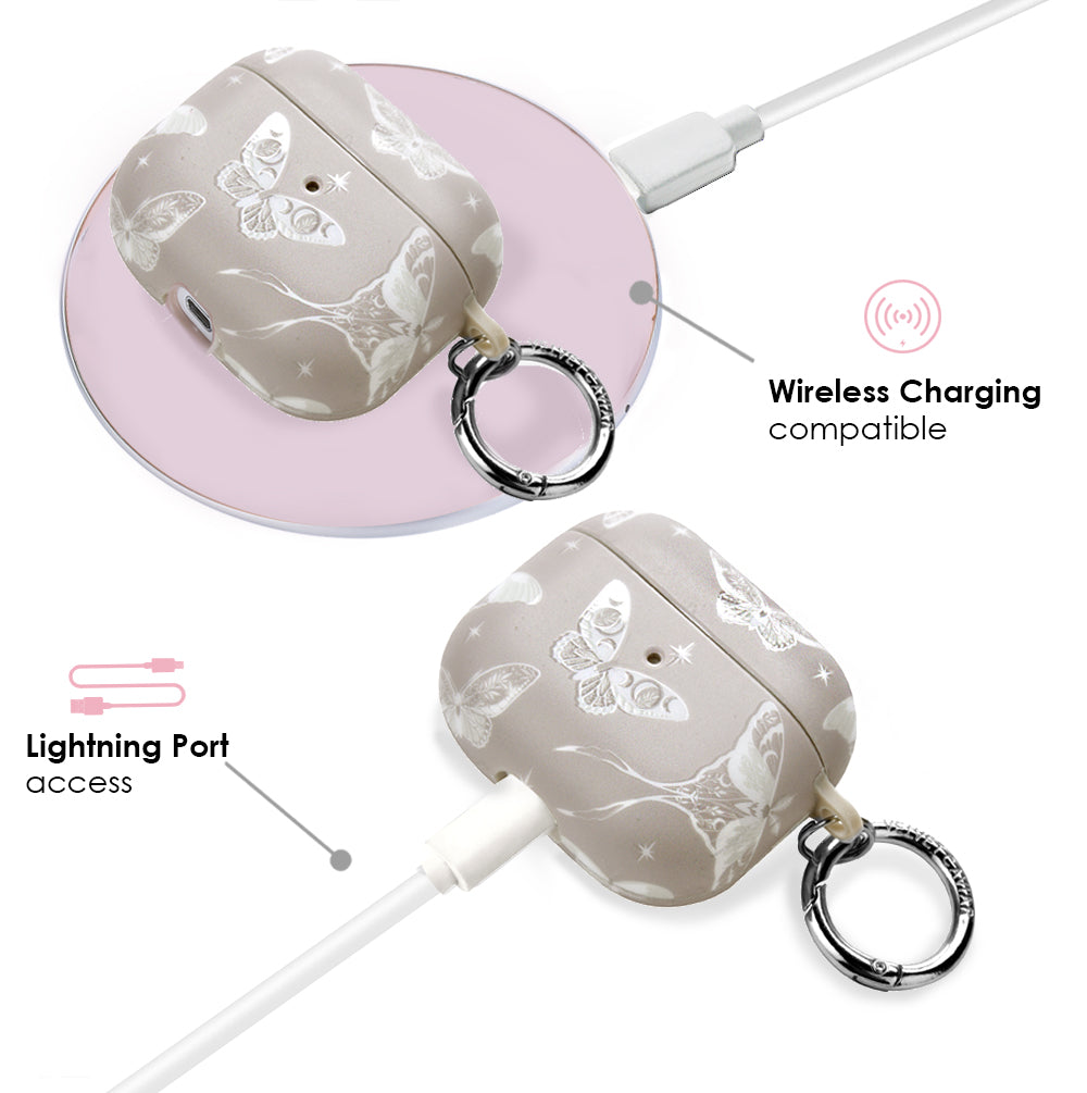 This 2 piece, hard case is created with premium materials which won't fade in color, scratch easily, and or crack. Compatible with wireless charging, AirPods not included.