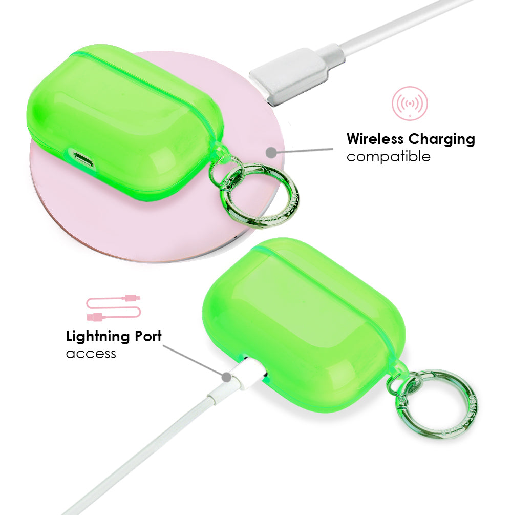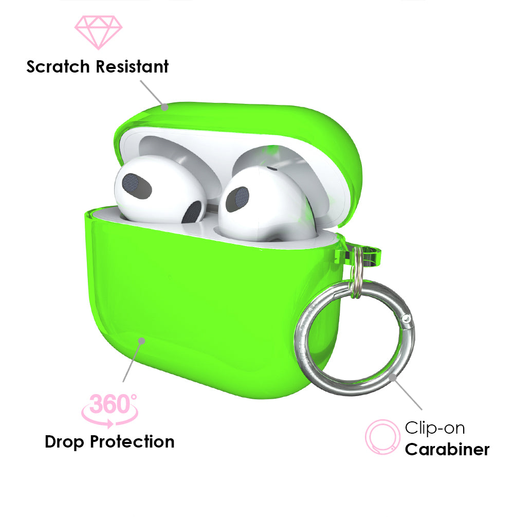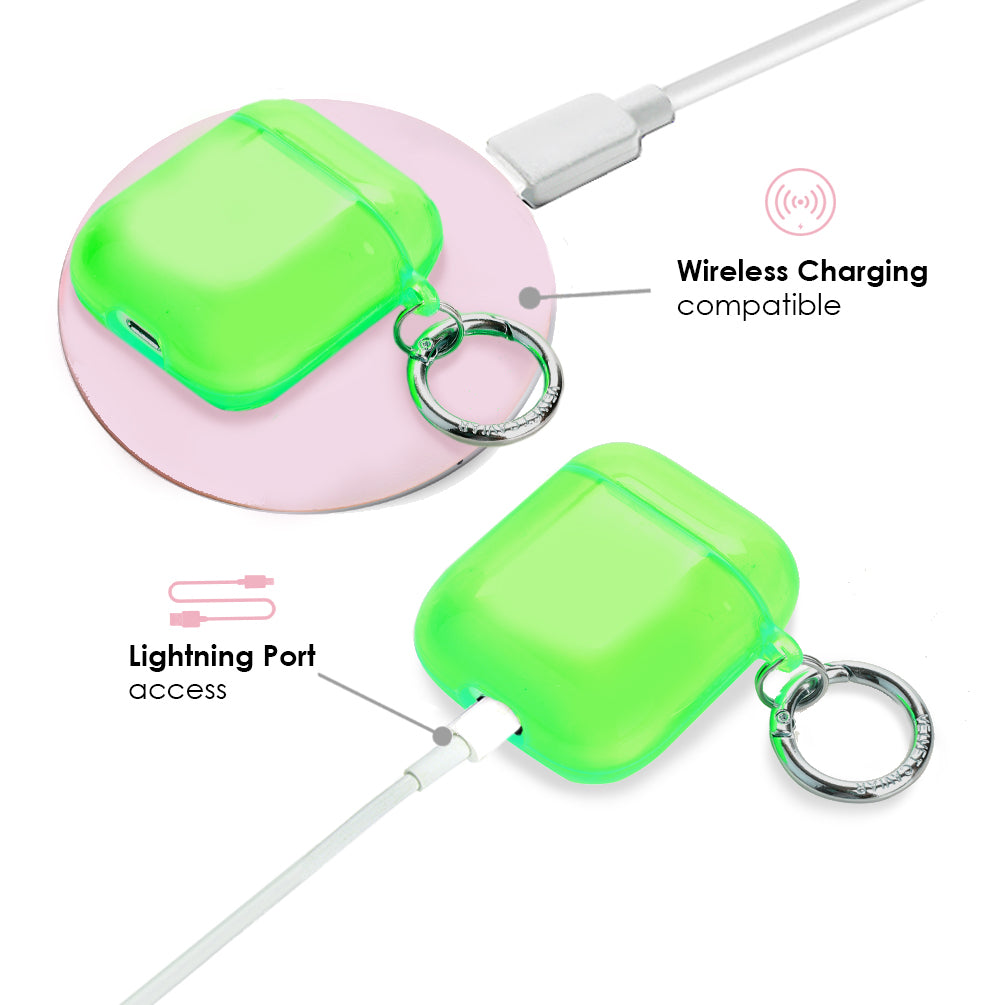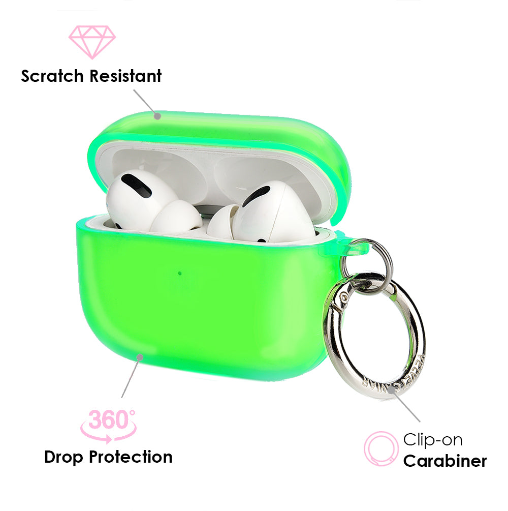 Make your AirPods stand out with a stylish neon, protective case! Paired with a metal carabiner which you can clip it to your keys, bag, or pants for easier access and less misplacing!