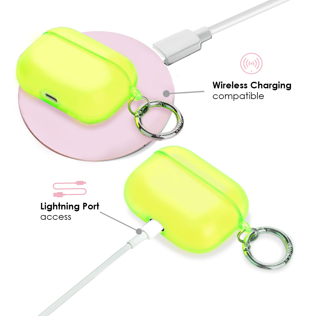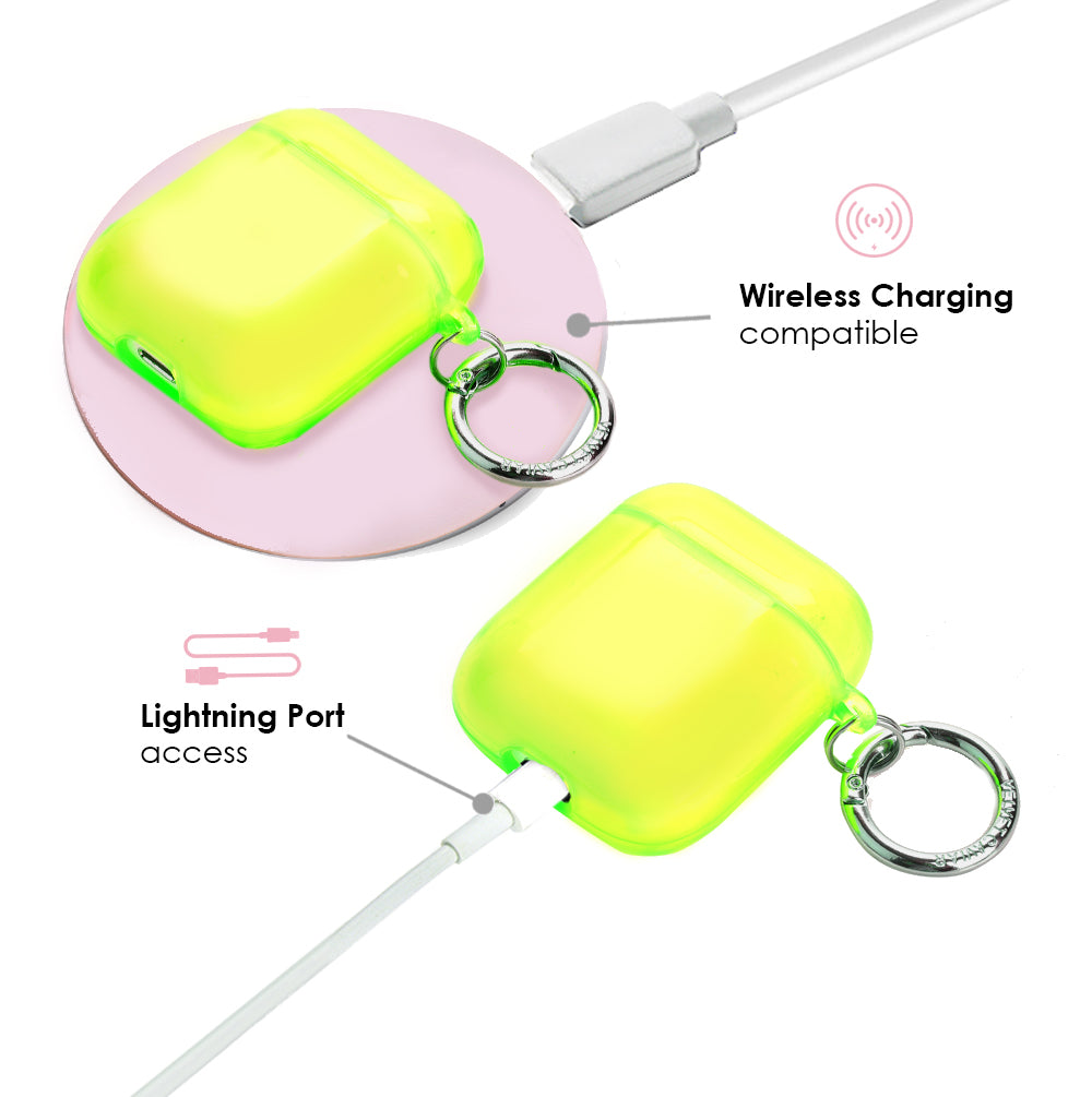 Make your AirPods stand out with a stylish neon, protective case! Paired with a metal carabiner which you can clip it to your keys, bag, or pants for easier access and less misplacing!