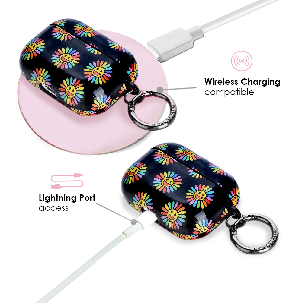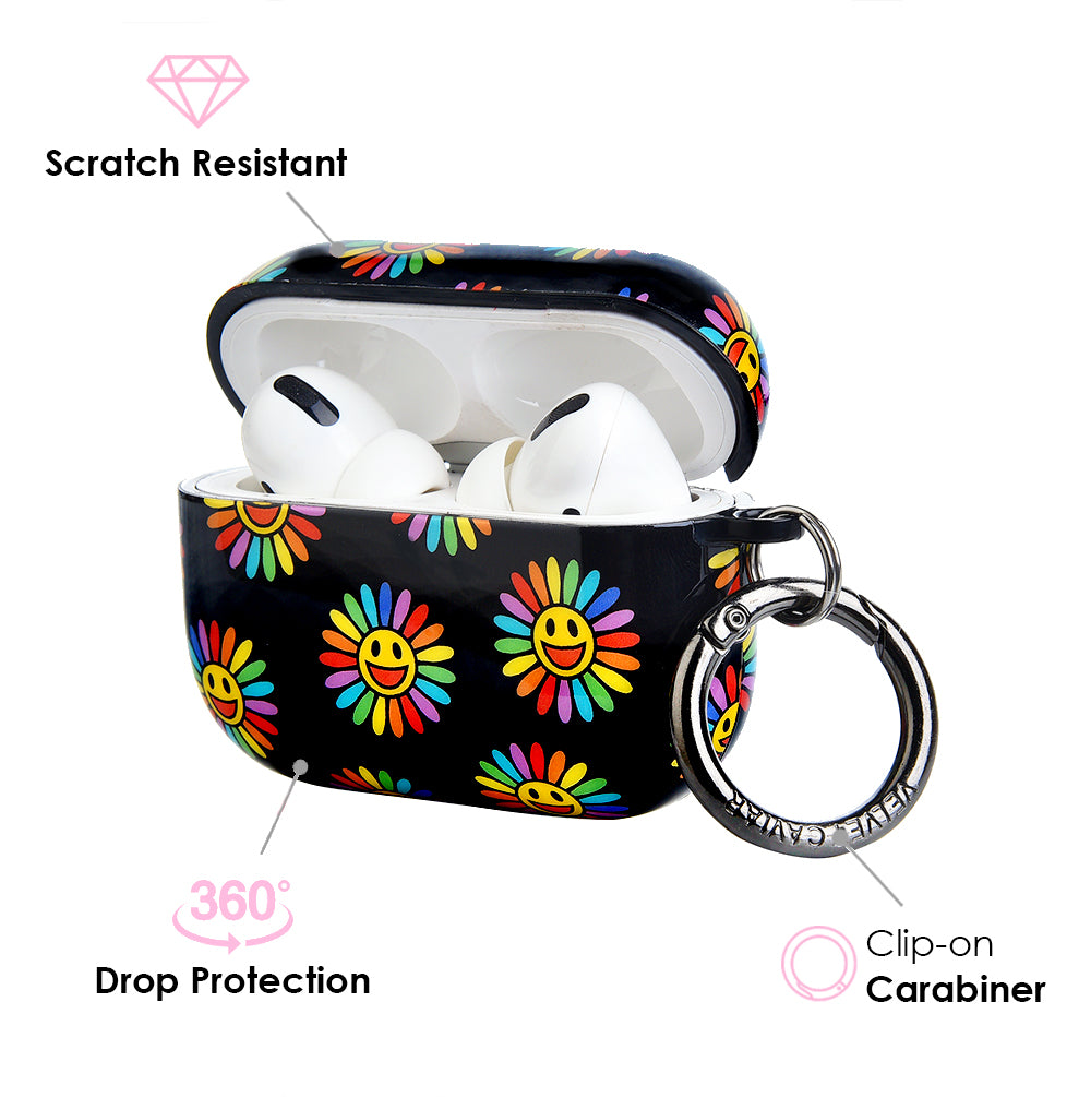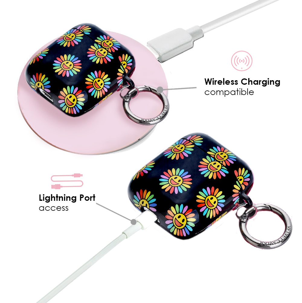 Make your AirPods stand out with a retro rainbow smiley, protective case! Paired with a metal carabiner which you can clip it to your keys, bag, or pants for easier access and less misplacing!