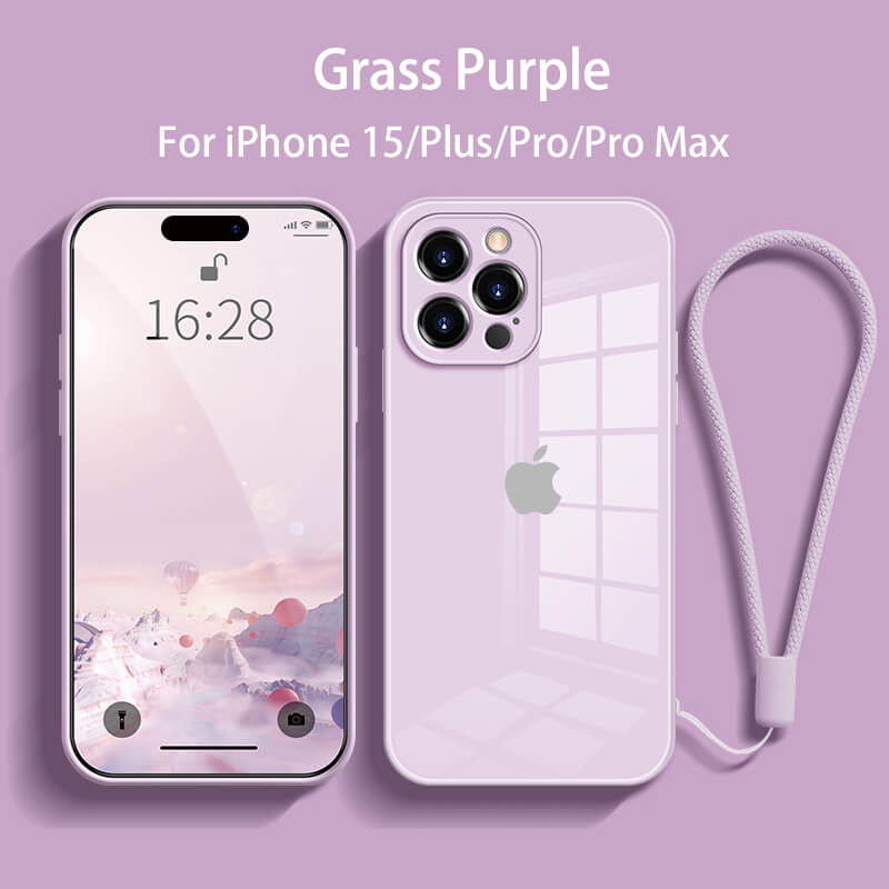 • Straight Edge Tempered Glass Phone Case For iPhone 15 Series