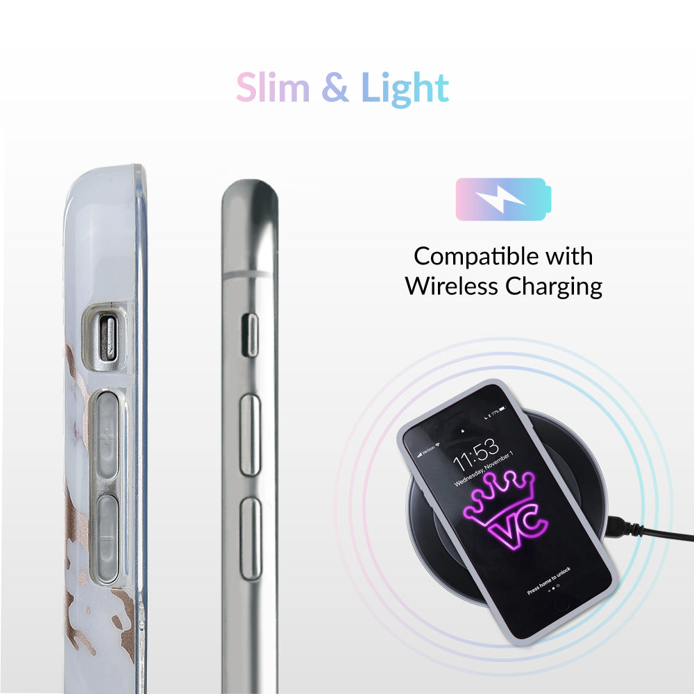 Inspired by our original WMRG, this updated 2.0 version features an enhanced white marble pattern with sleeker rose gold chrome cracks, completed in a smooth gloss finish with a clear front lip!