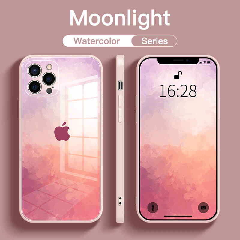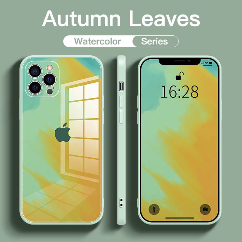 【HOT】Colorful watercolor tempered glass phone case for iPhone 12 series