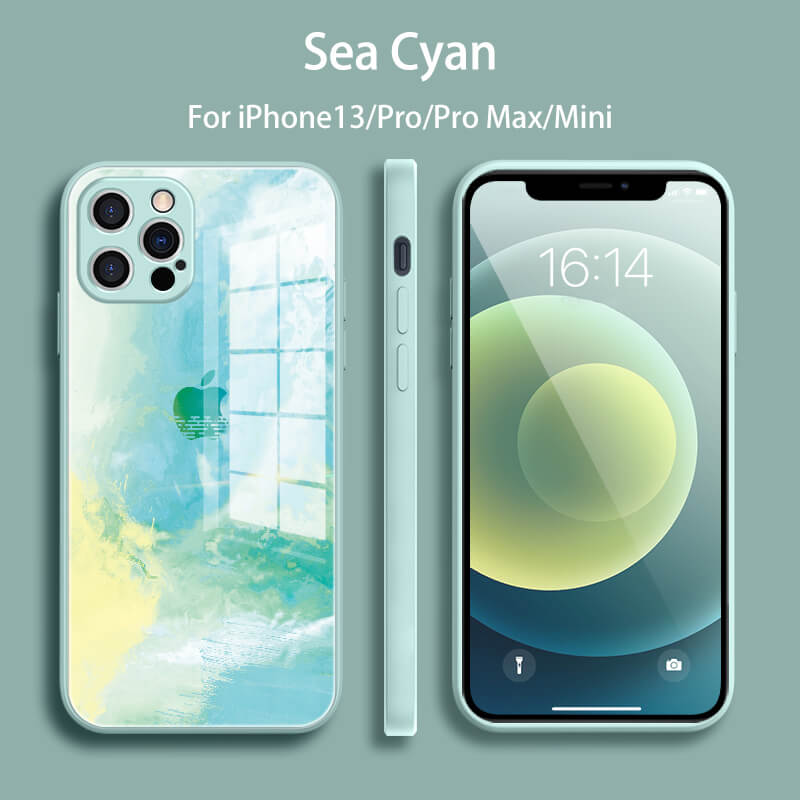Colorful watercolor tempered glass phone case for iPhone 13 series